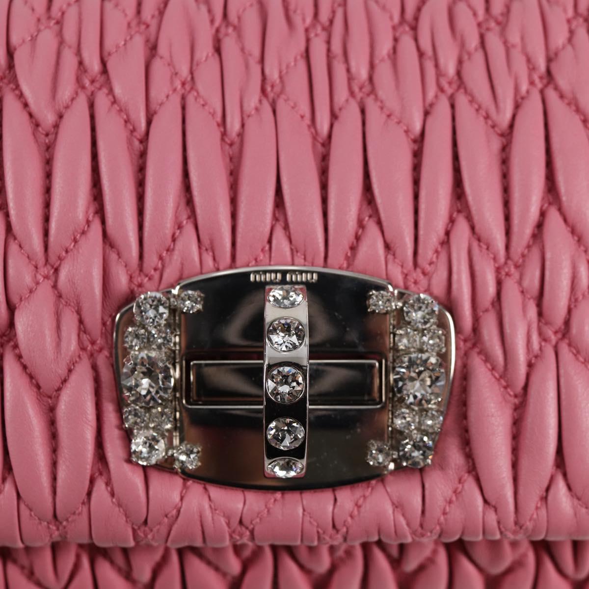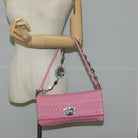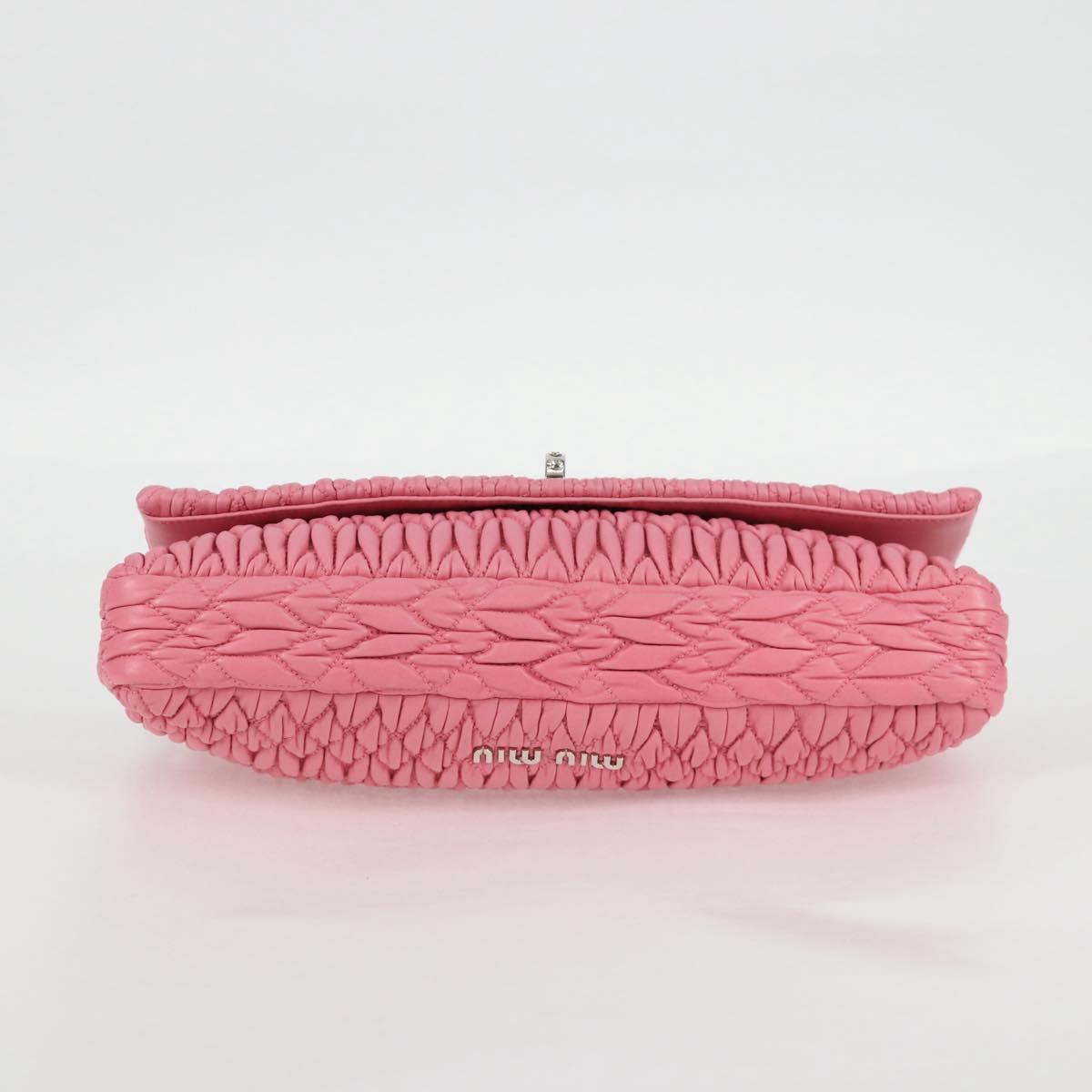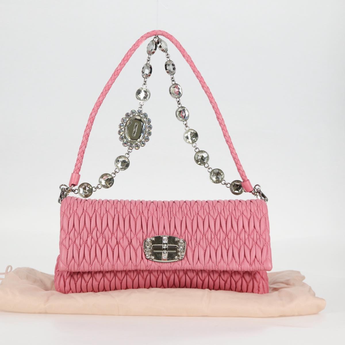Miu Miu Matelasse Hand Bag Leather Pink Silver Auth PP611V