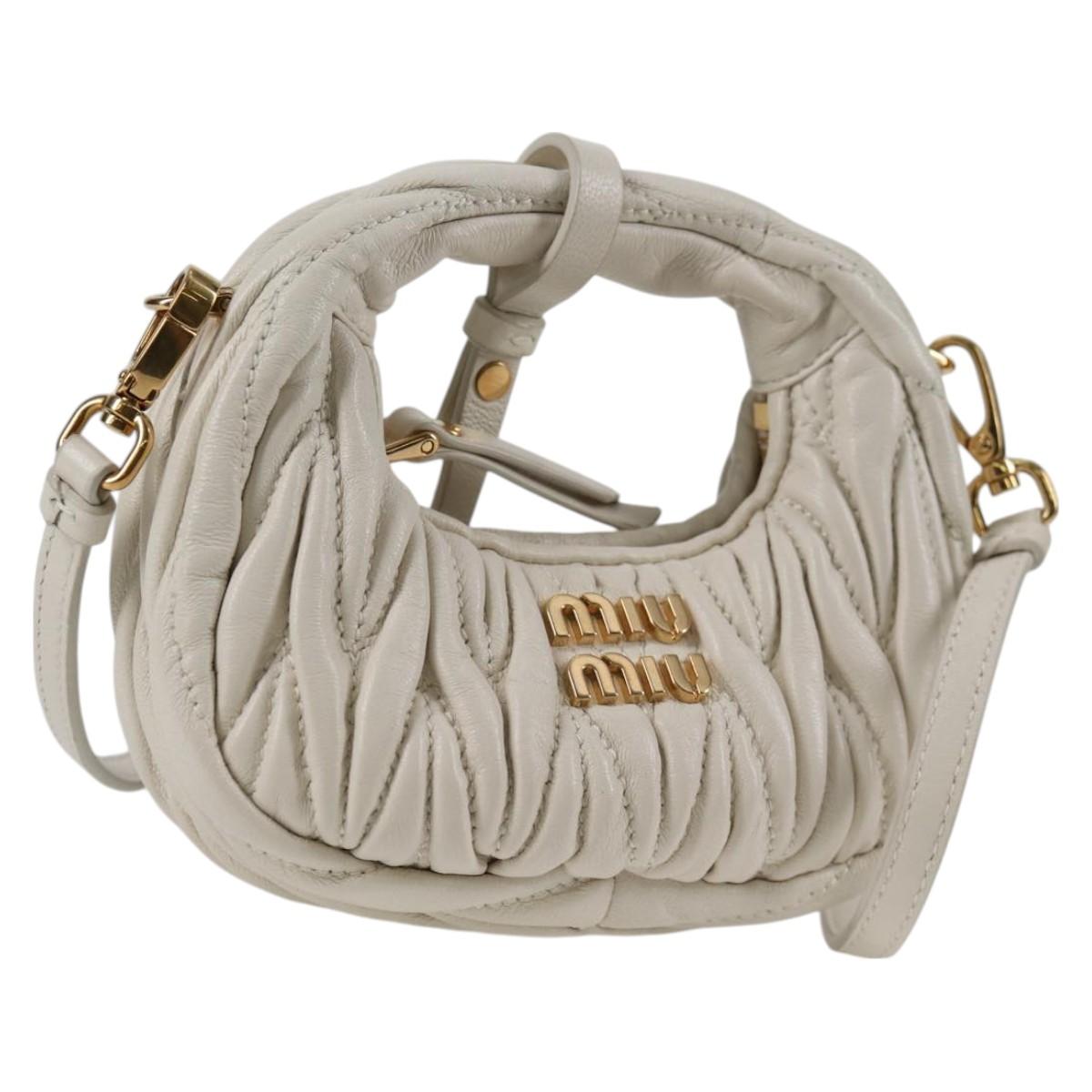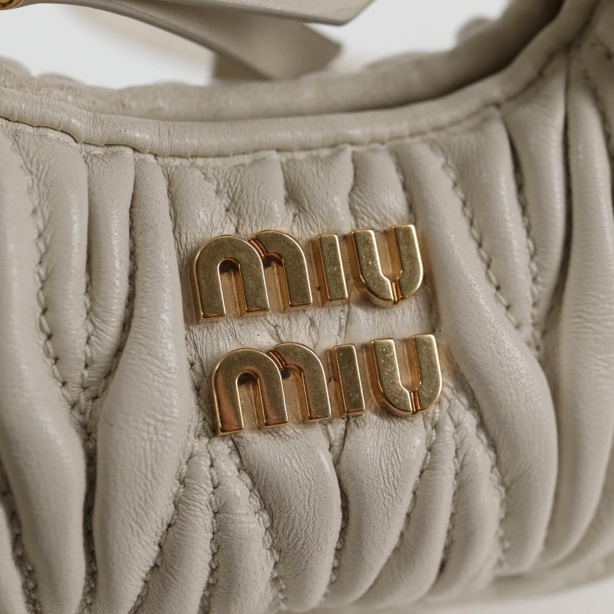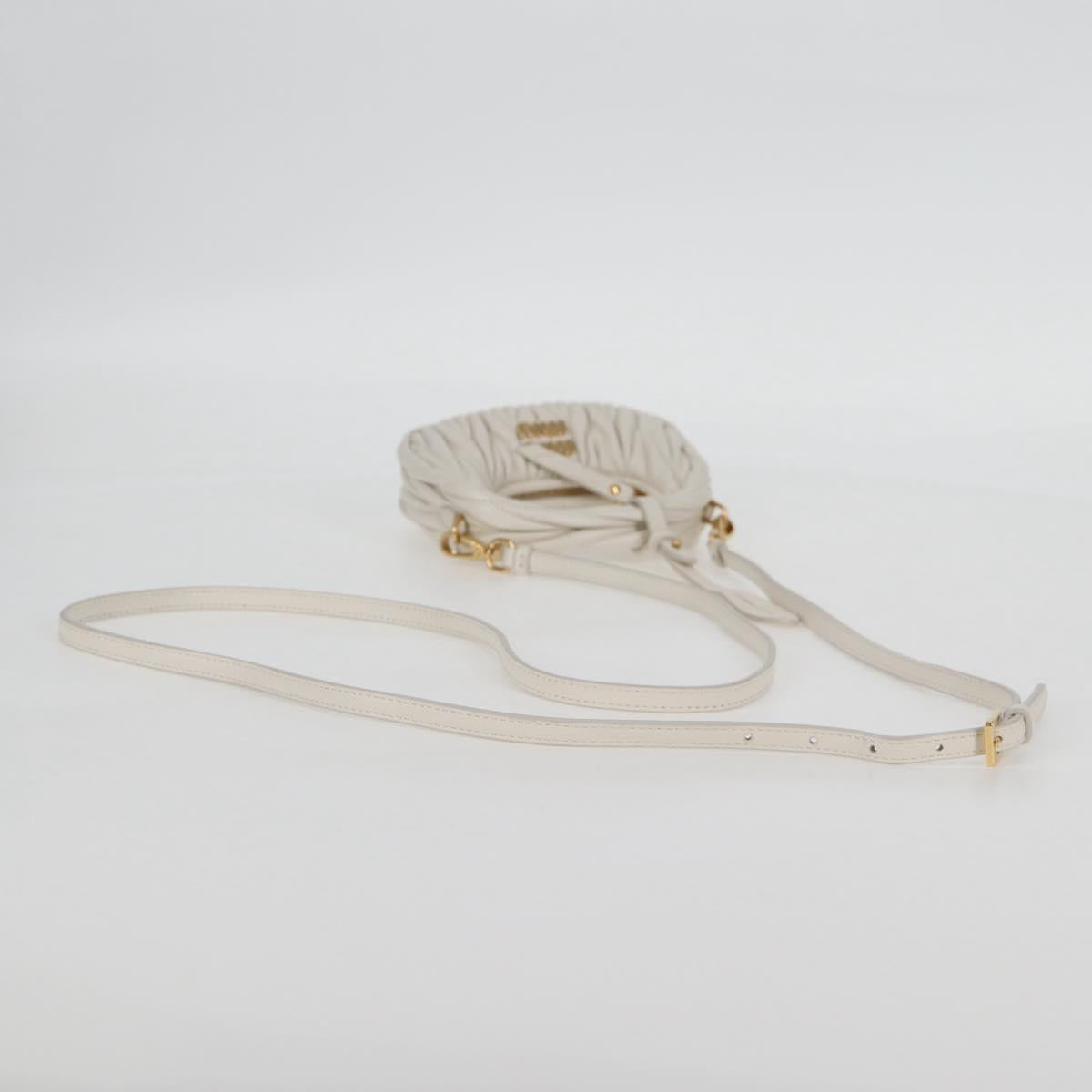 Miu Miu Matelasse Mini Shoulder Bag Leather White Gold Auth 115234SM