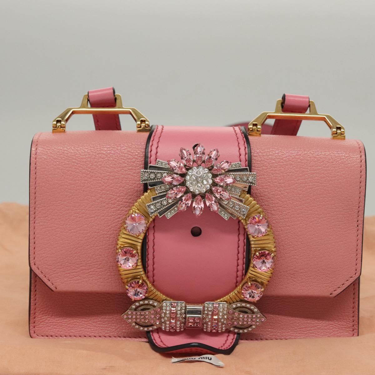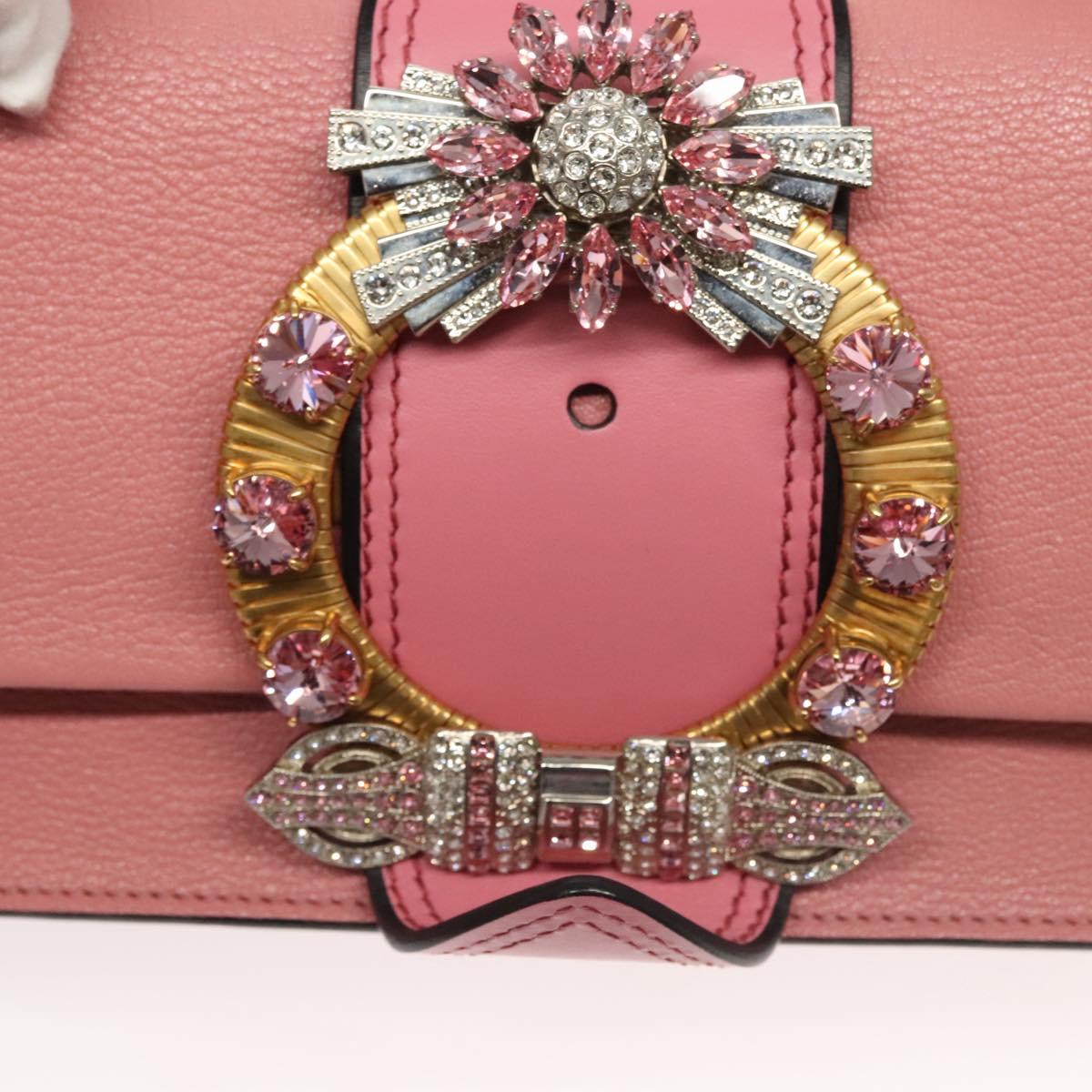 Miu Miu Shoulder Bag Leather Pink Gold Auth BD1584AM