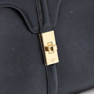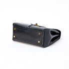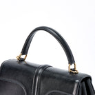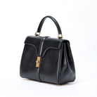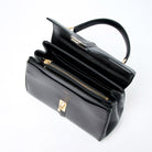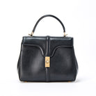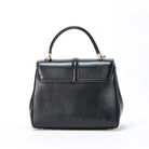 CELINE Small Hand Bag Black Gold Satin Calf Skin Auth