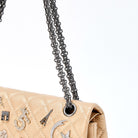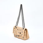 CHANEL 2.55 Embroidered Double Flap Double Chain 23 Shoulder Bag circa 2015 Gold Silver Metallic Calf Auth