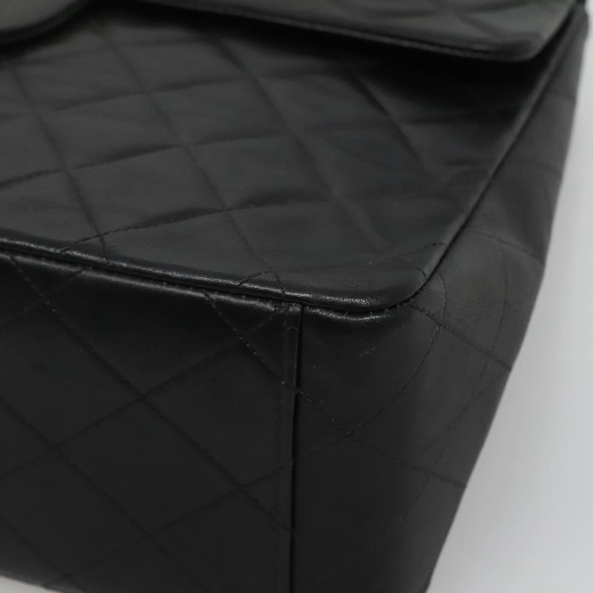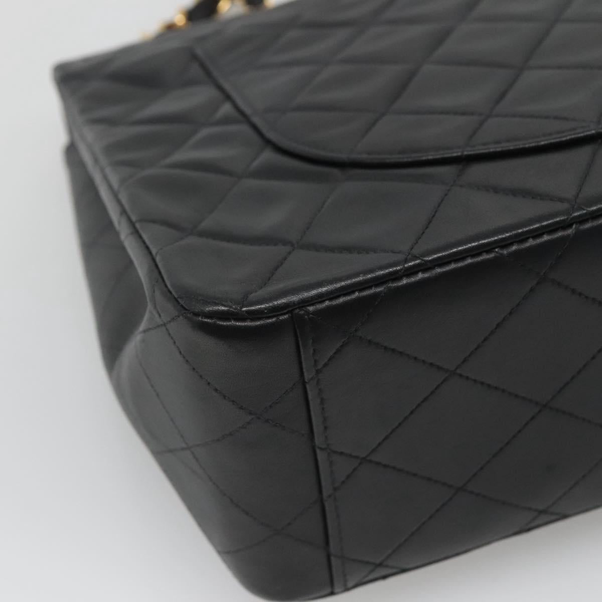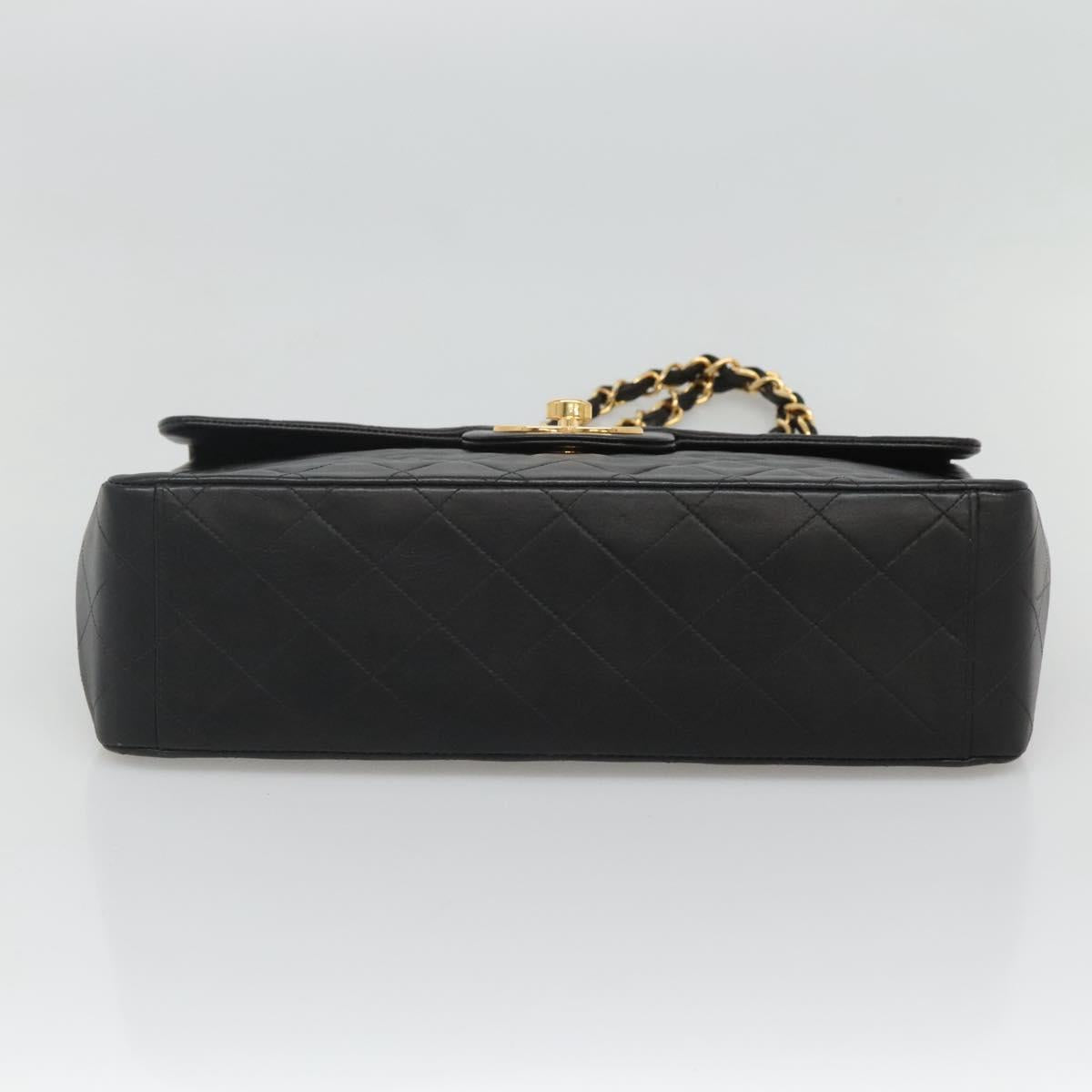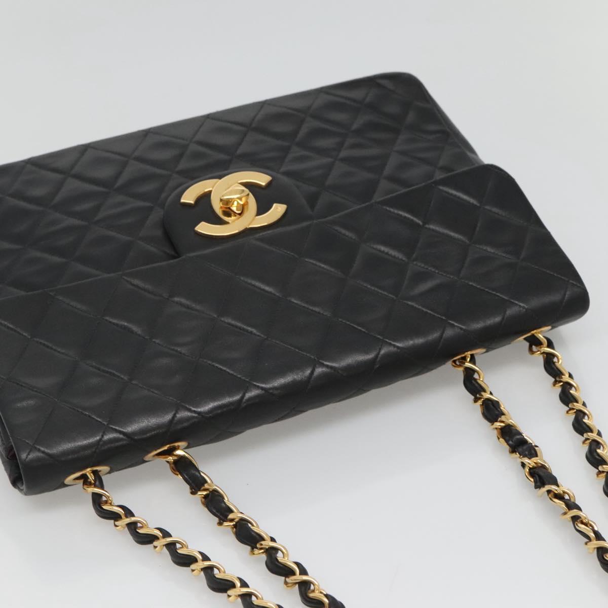 CHANEL Big Matelasse 34 Single Flap Chain Bag Lamb Skin Black CC Auth nb349AM