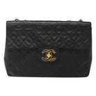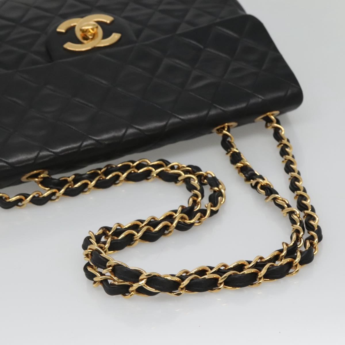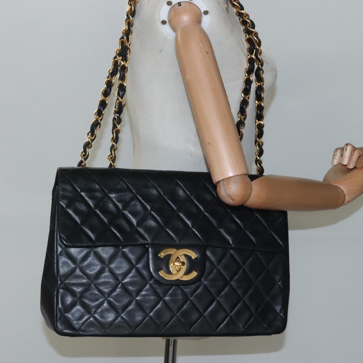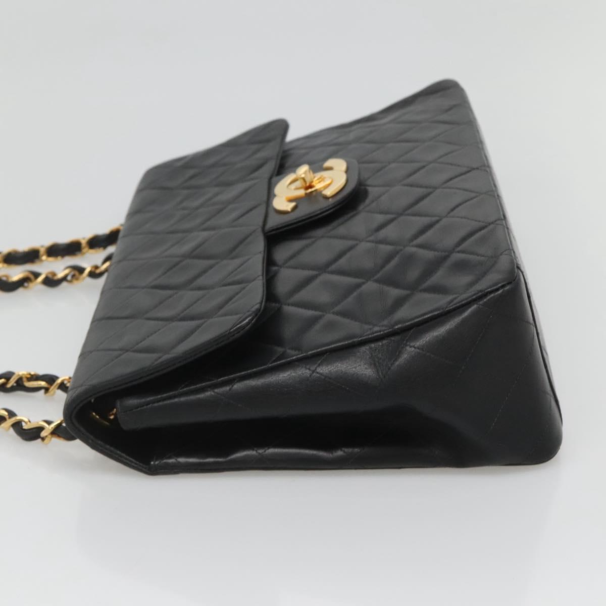 CHANEL Big Matelasse 34 Single Flap Chain Bag Lamb Skin Black CC Auth nb349AM