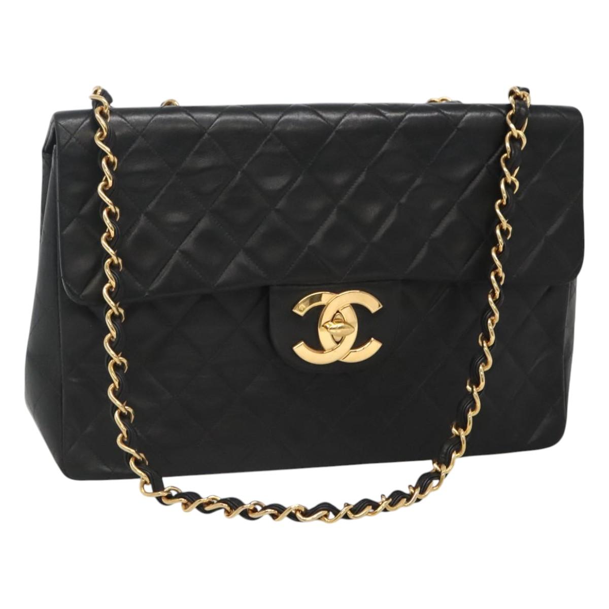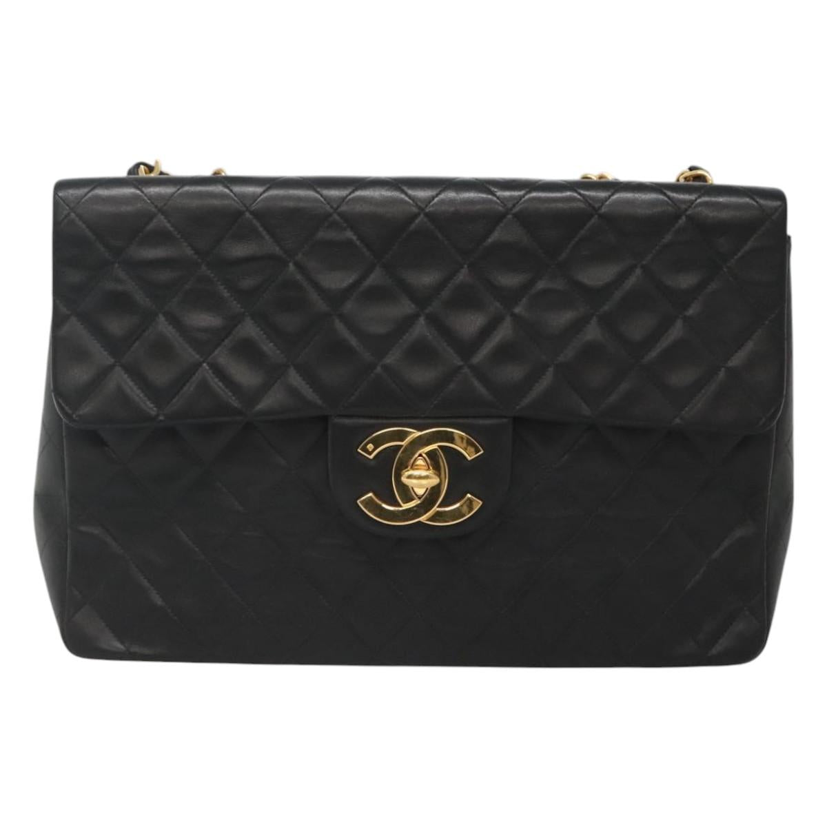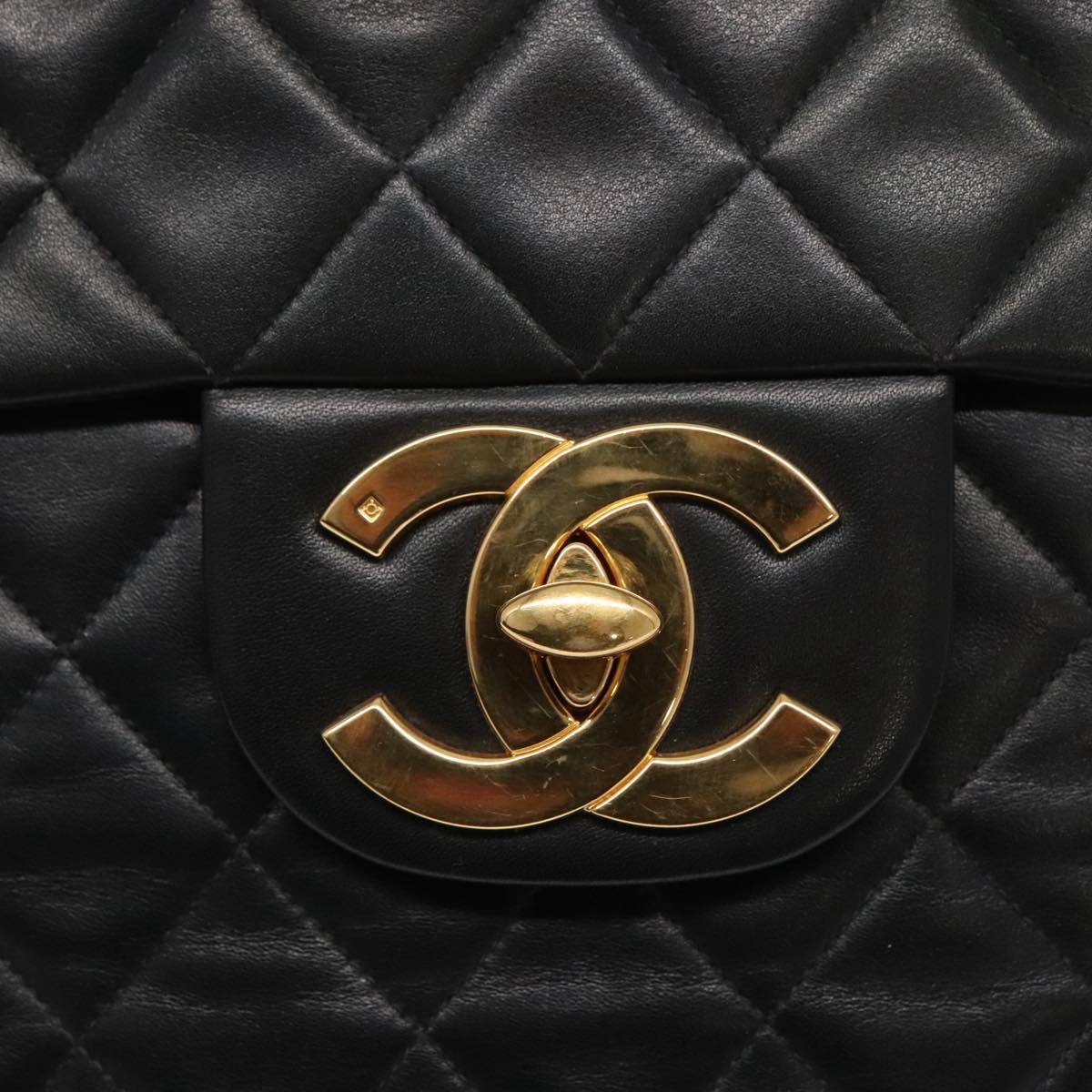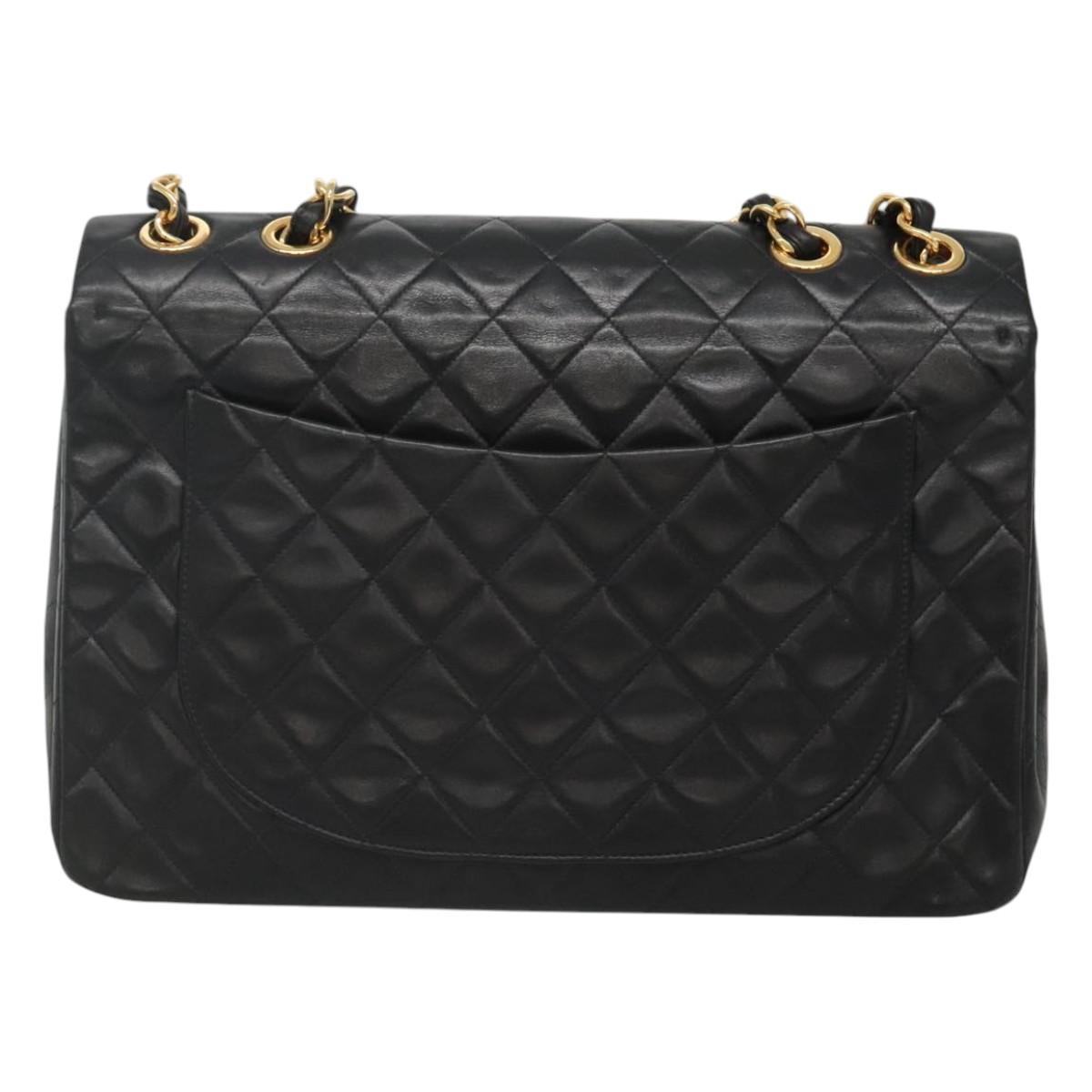 CHANEL Big Matelasse 34 Single Flap Chain Bag Lamb Skin Black CC Auth nb349AM