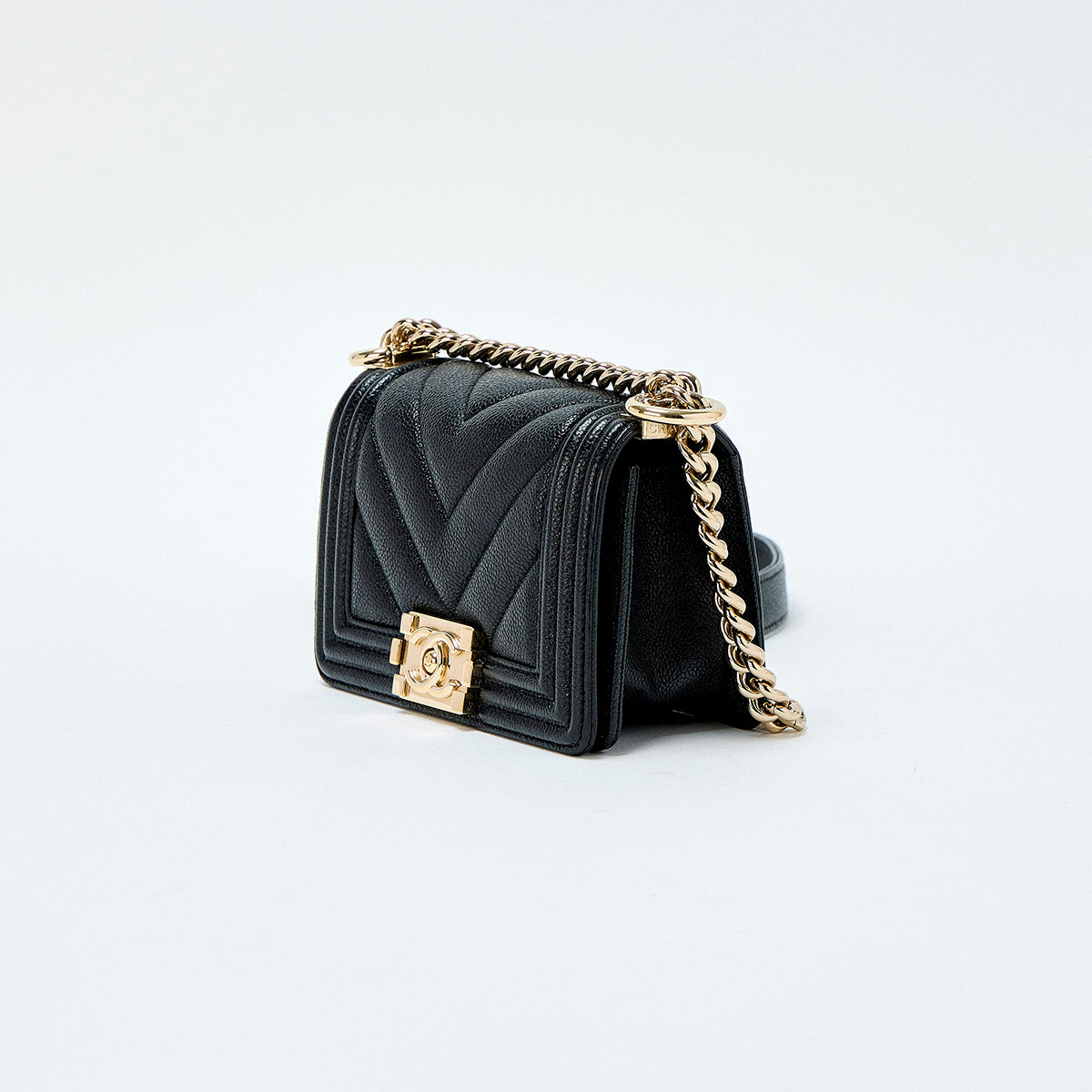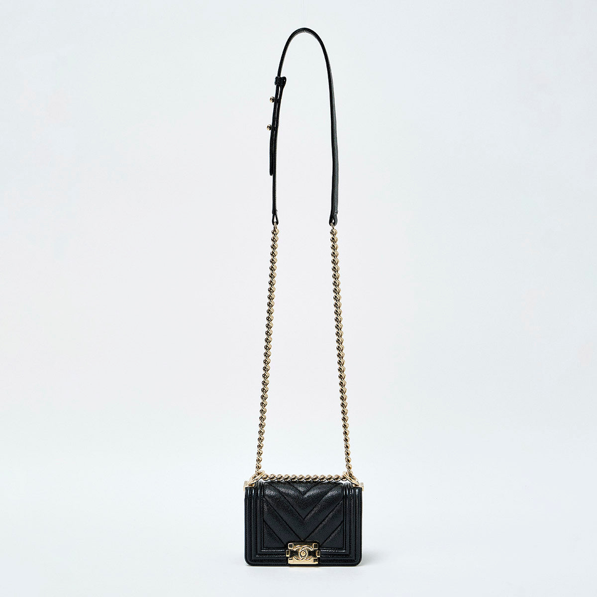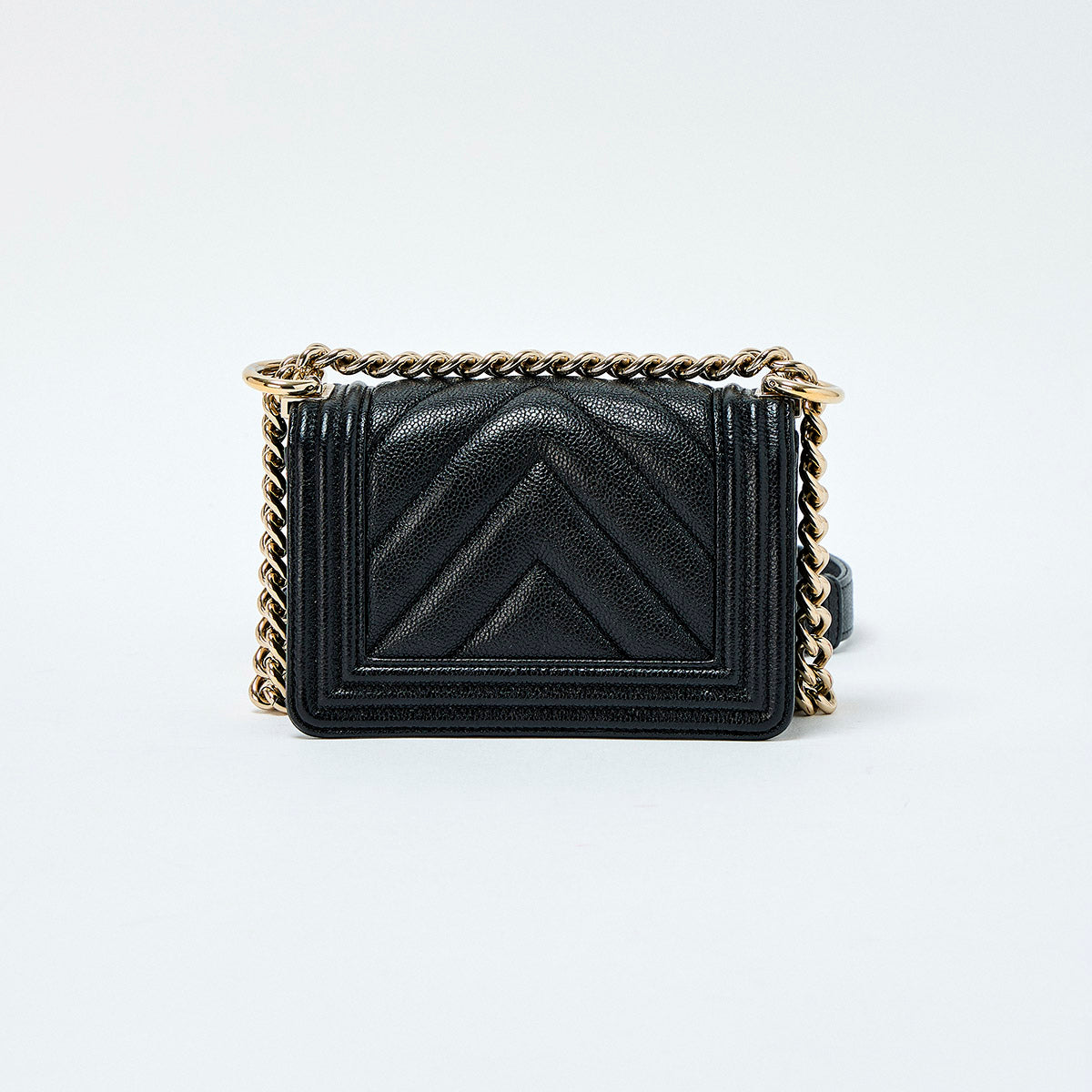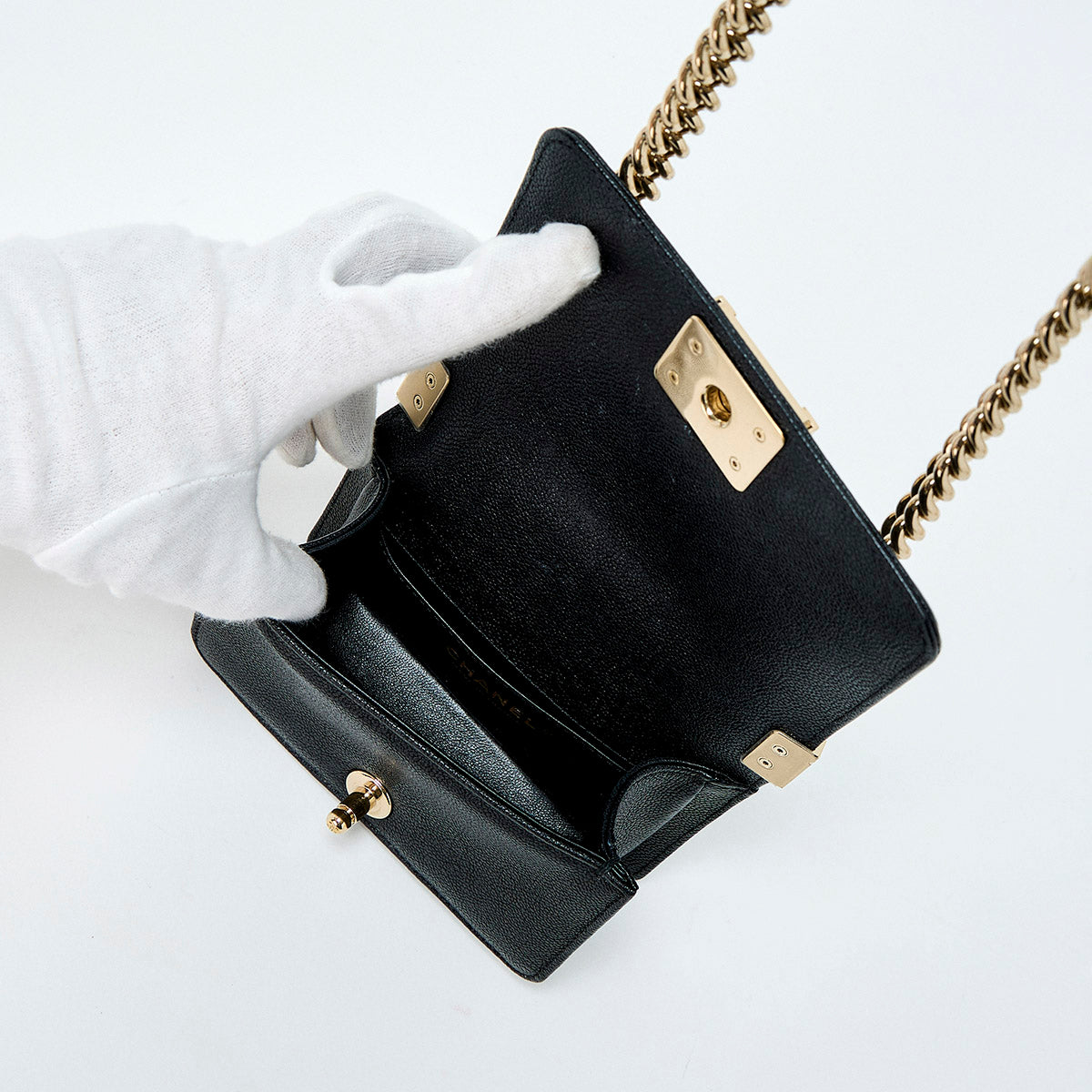 CHANEL Boy Chanel 2WAY Chain Hand Bag Mini 2021 and later Shoulder Bag Black Gold Caviar Skin Auth