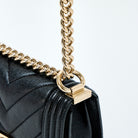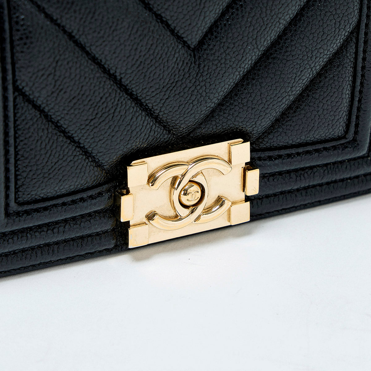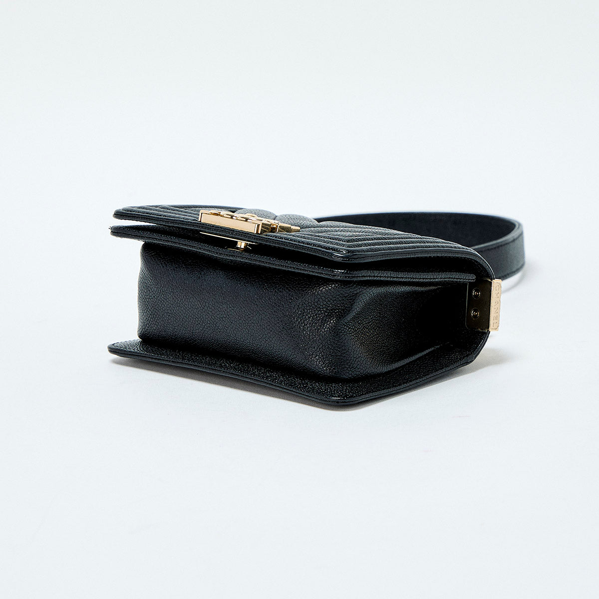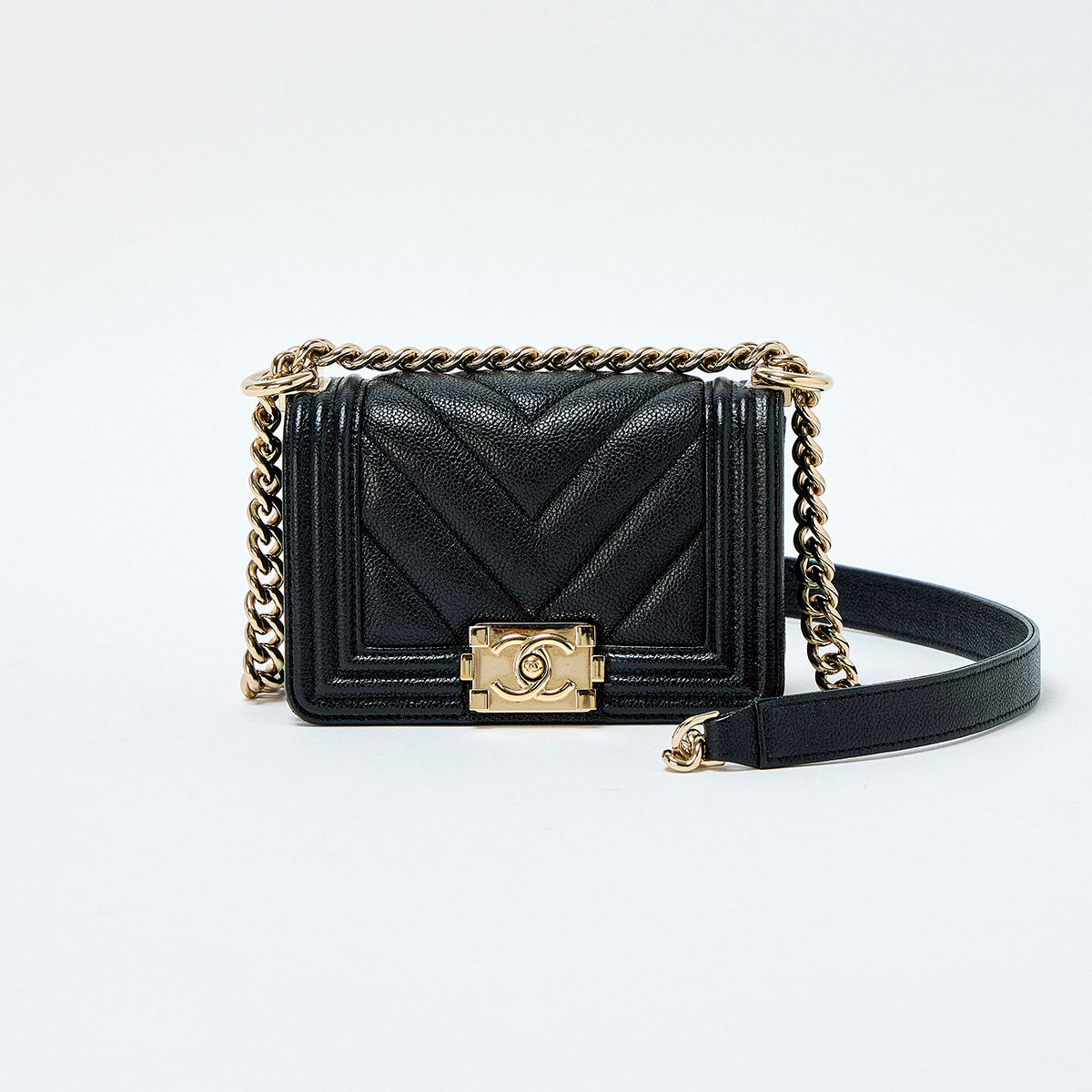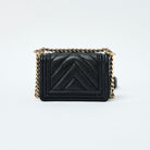 CHANEL Boy Chanel 2WAY Chain Hand Bag Mini 2021 and later Shoulder Bag Black Gold Caviar Skin Auth