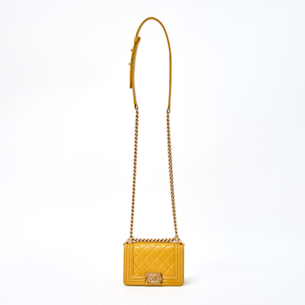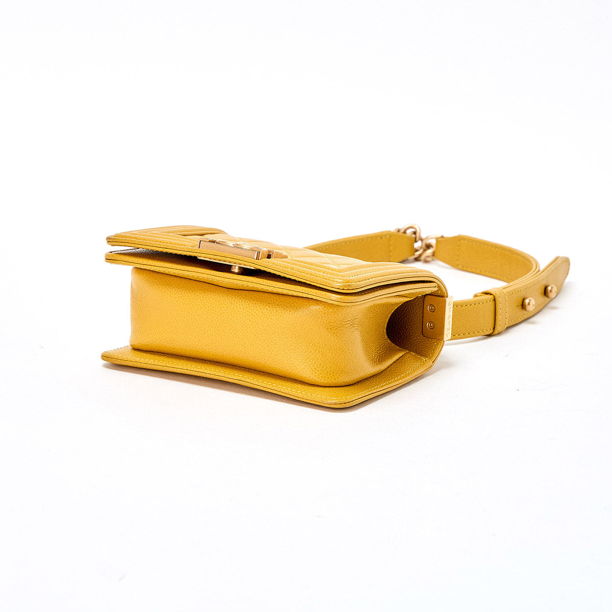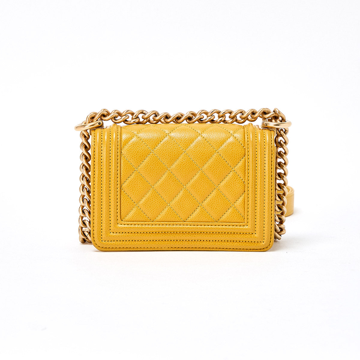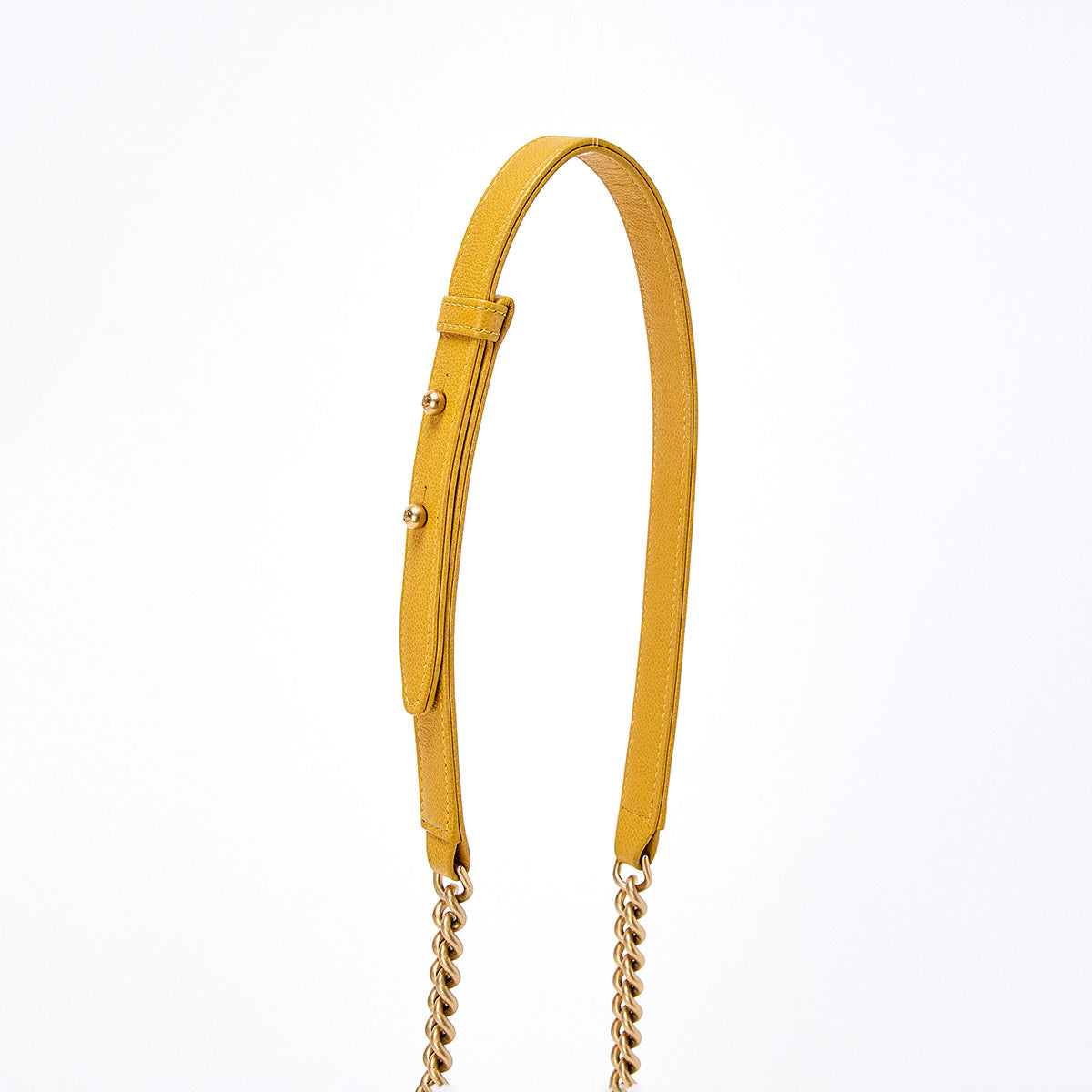 CHANEL Boy Chanel Single Flap Double Chain Shoulder Bag 2021 and later Yellow Matte Gold Caviar Skin Auth