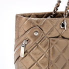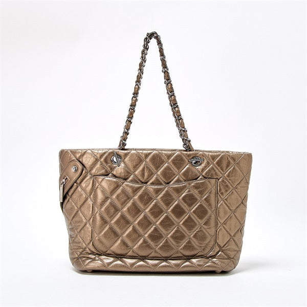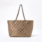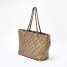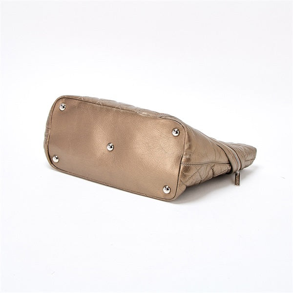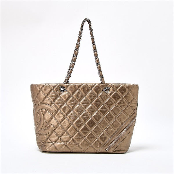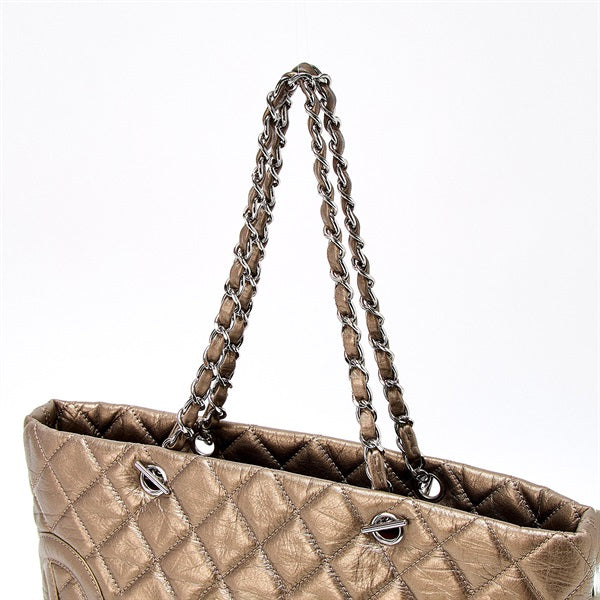 CHANEL Cambon 2007 Cotton Club Tote Bag Gold Silver Lamb Skin Auth