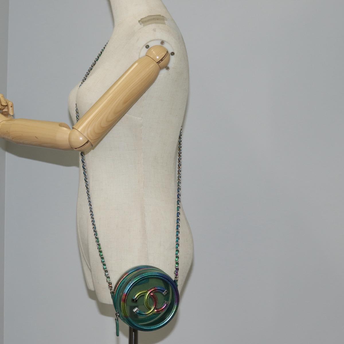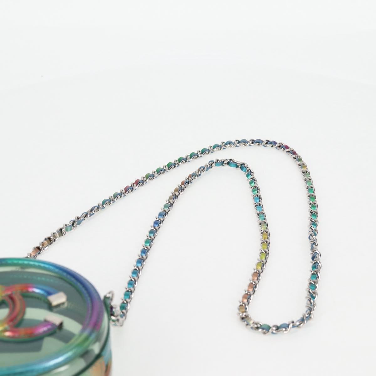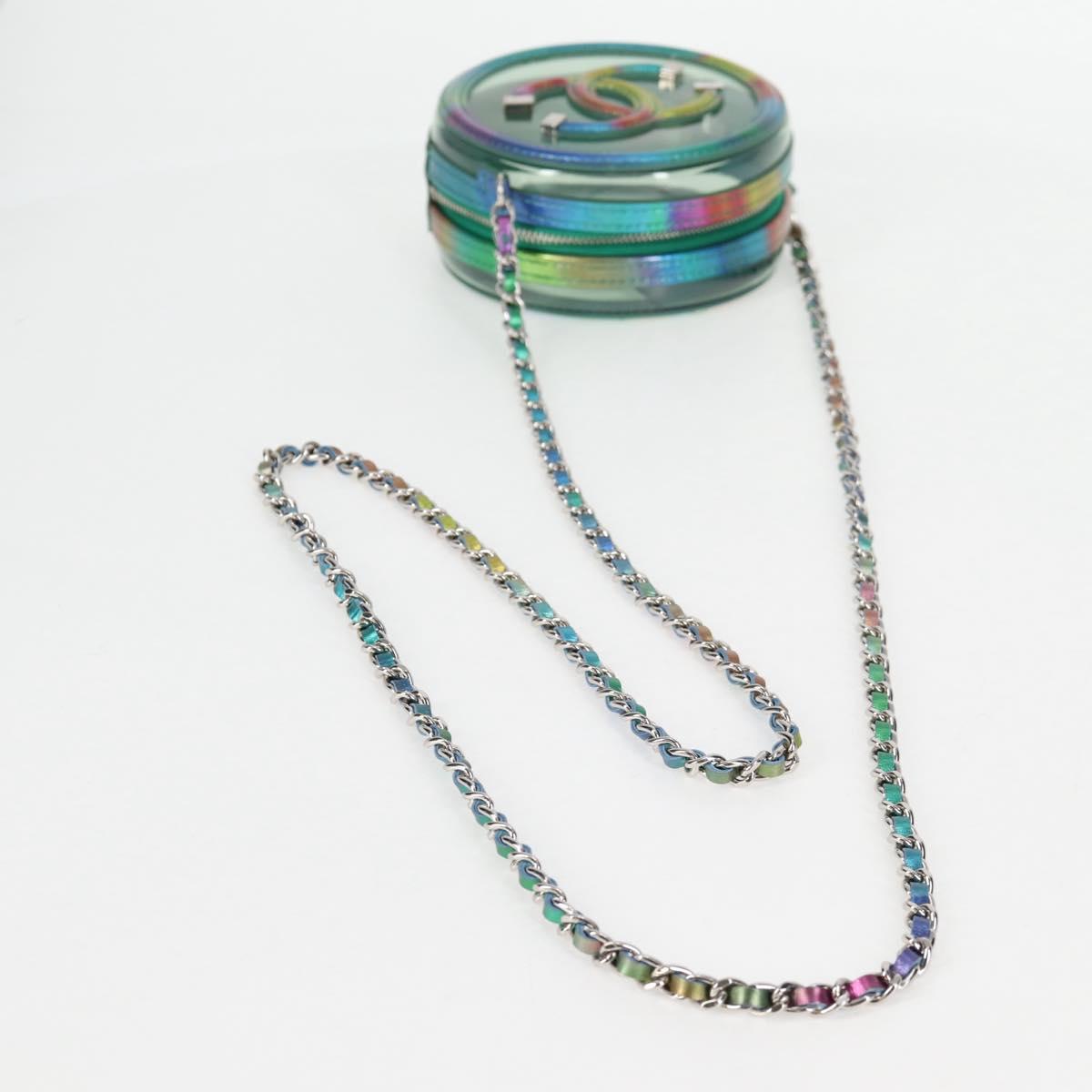 CHANEL CC filigree Chain Shoulder Bag Vinyl Silver Rainbow CC Auth 116287AM