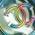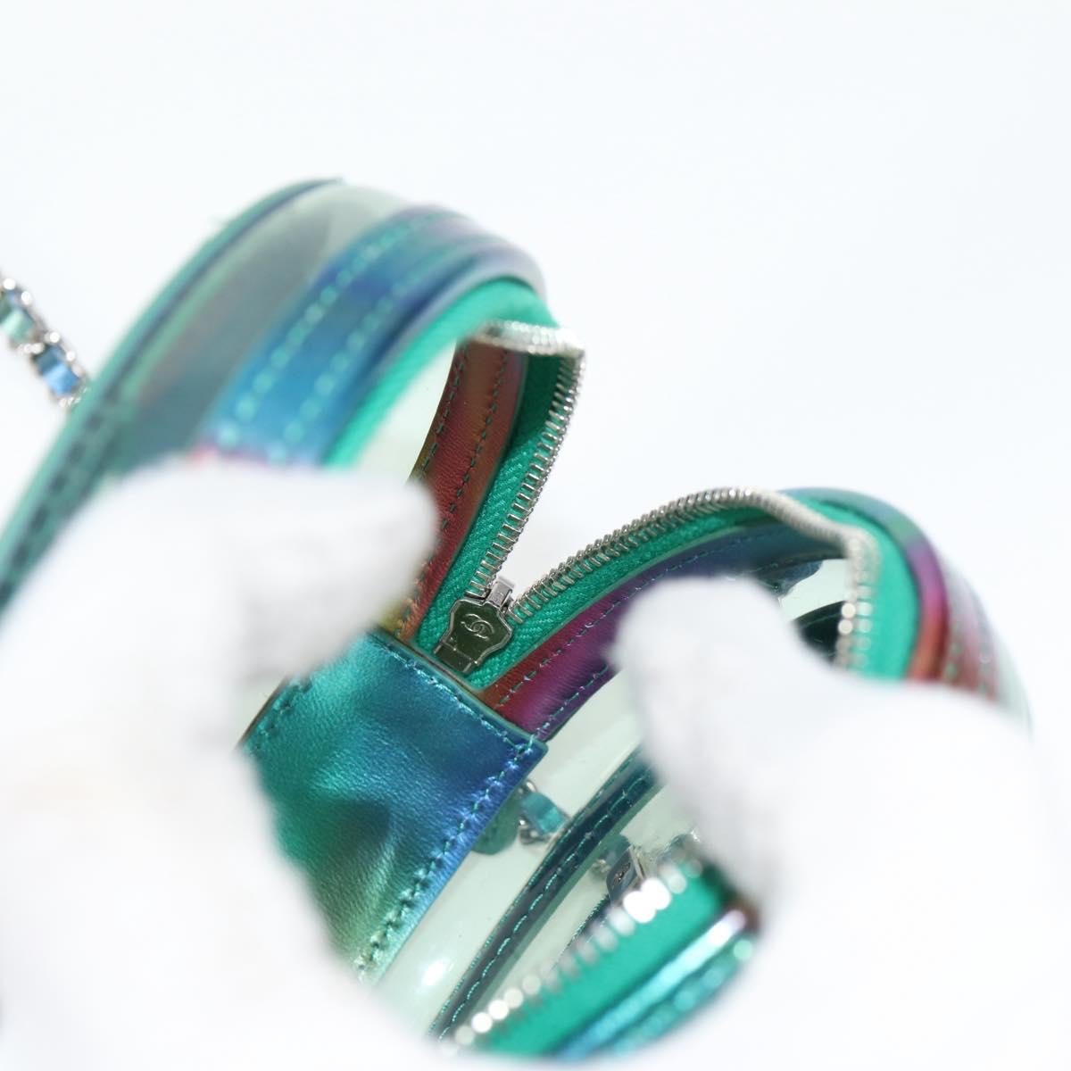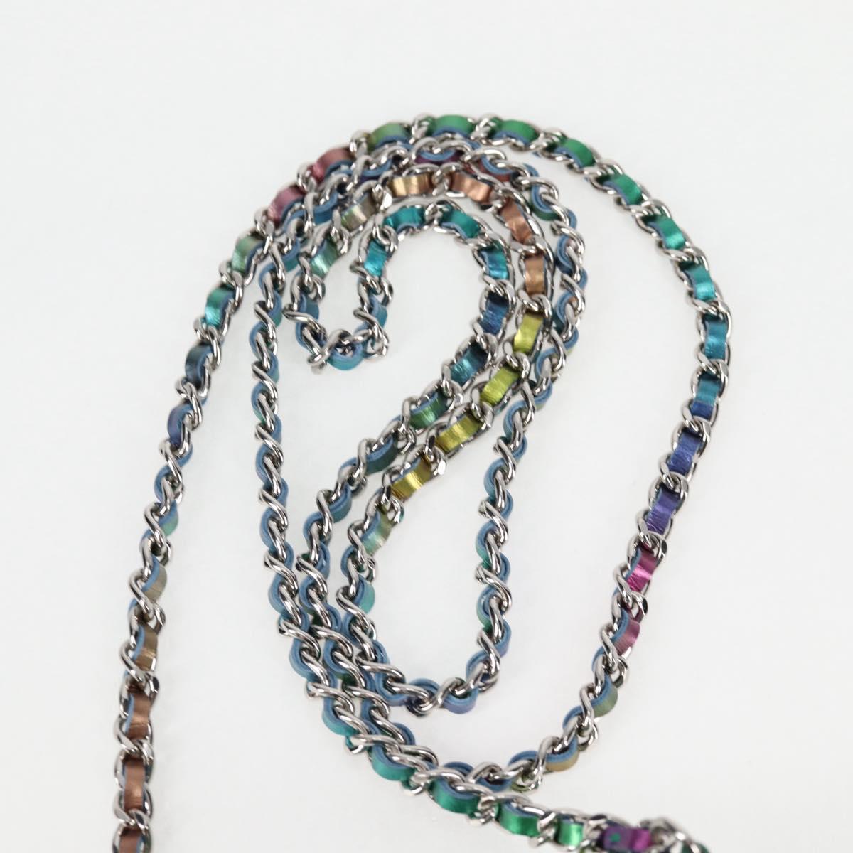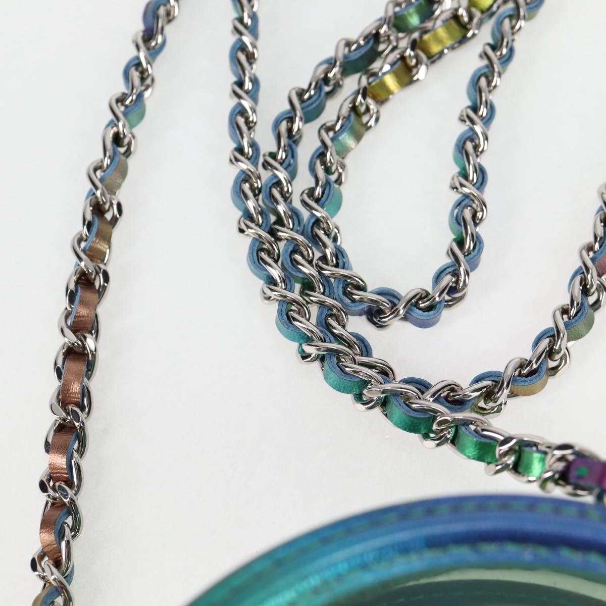 CHANEL CC filigree Chain Shoulder Bag Vinyl Silver Rainbow CC Auth 116287AM