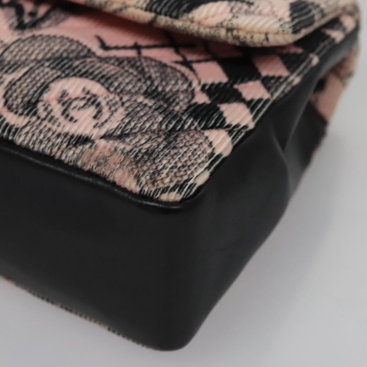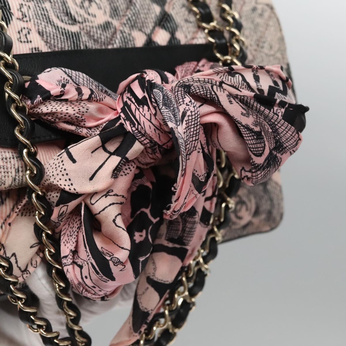 CHANEL Chain V Stitch Shoulder Bag Corduroy Pink Gold CC Auth 115032AM