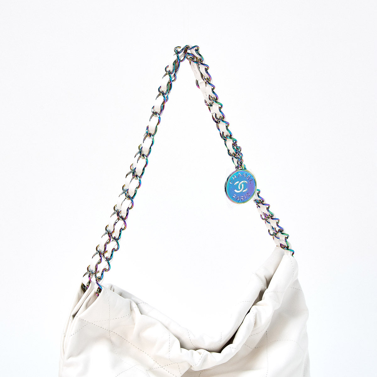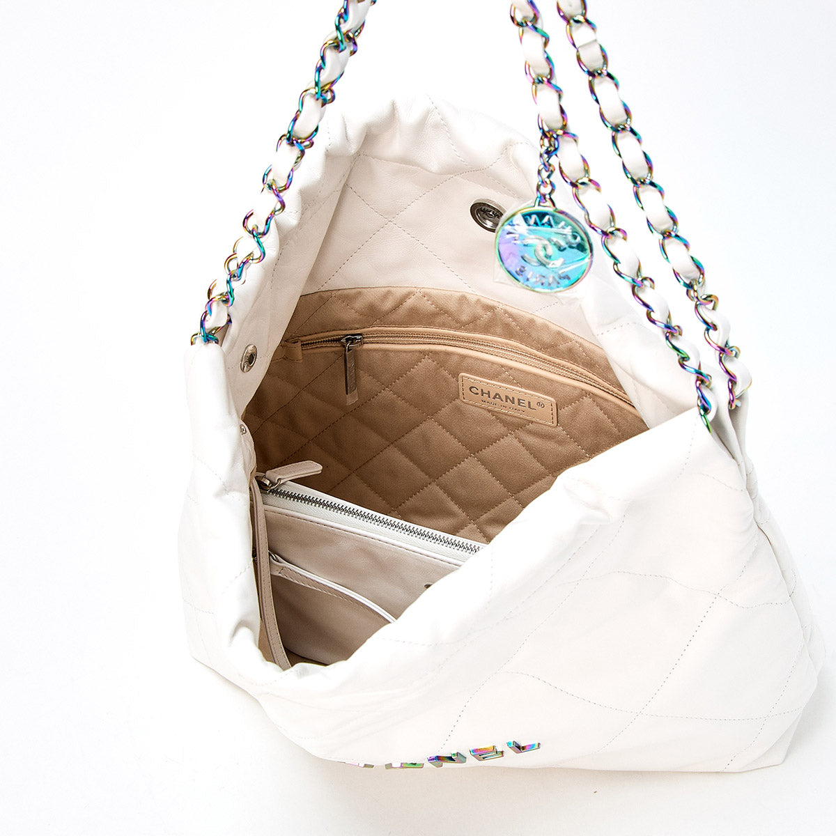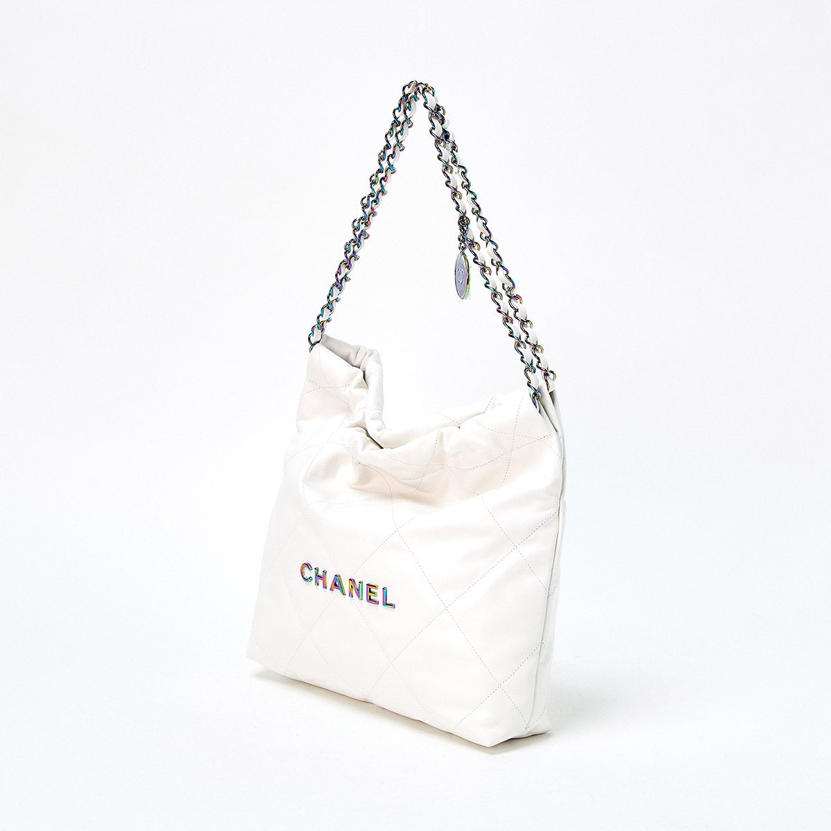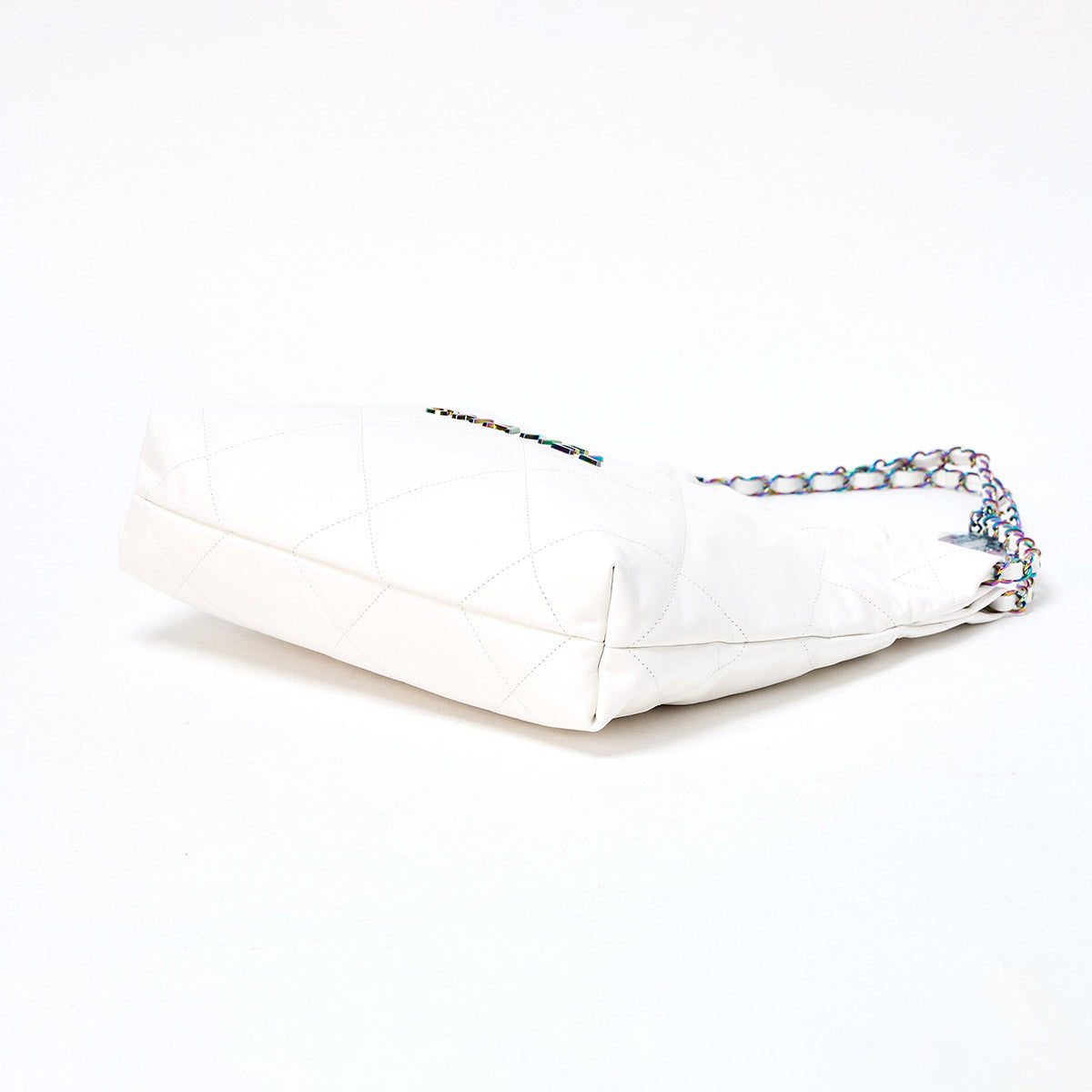 CHANEL Chanel 22 Small 2021 Shoulder Bag White Rainbow Calf Skin Auth