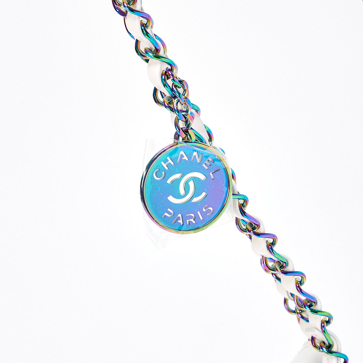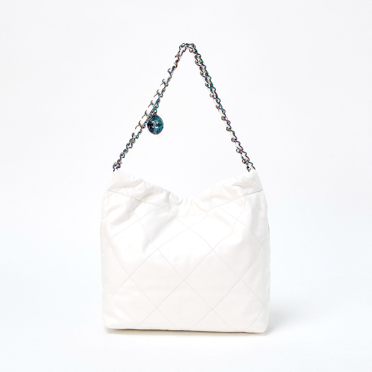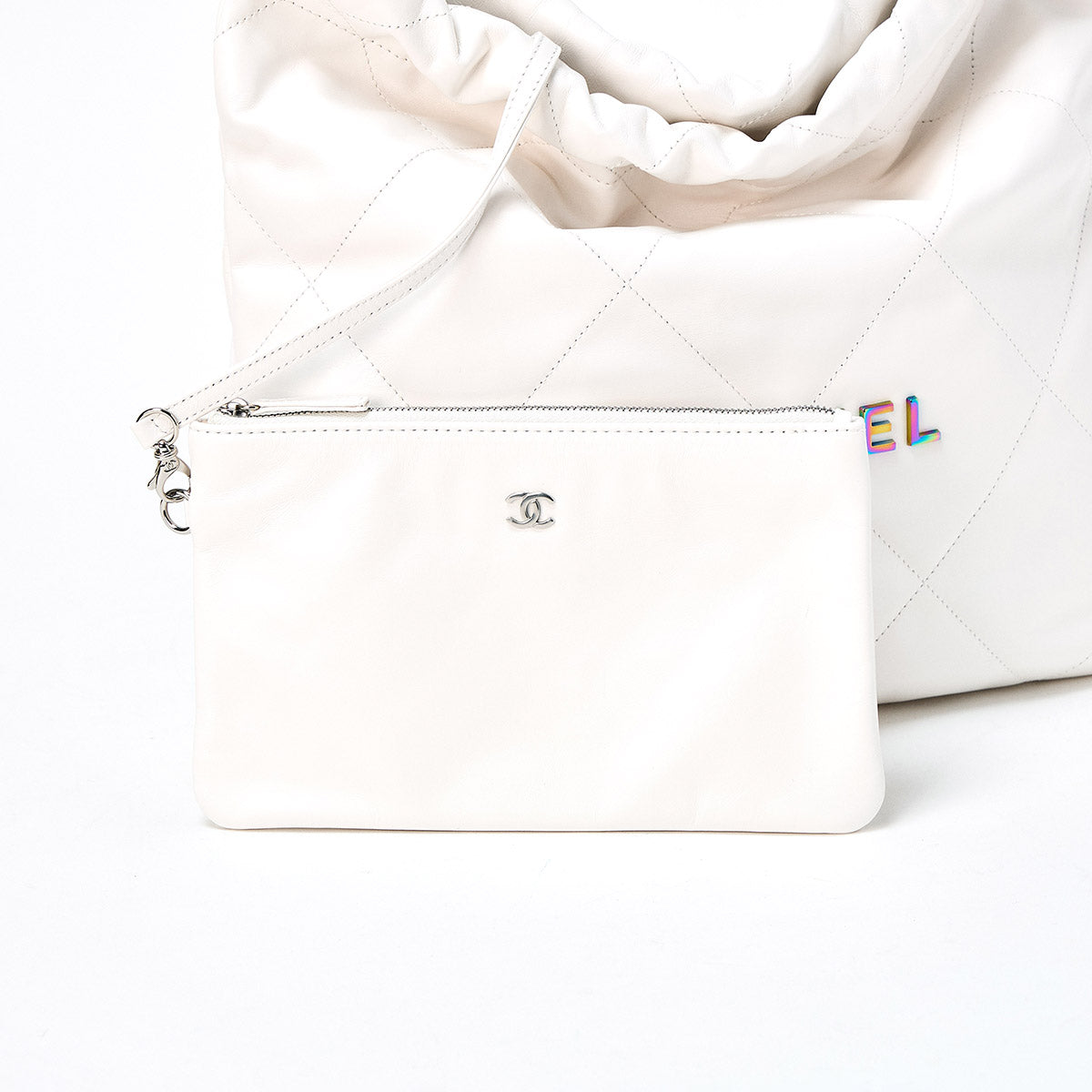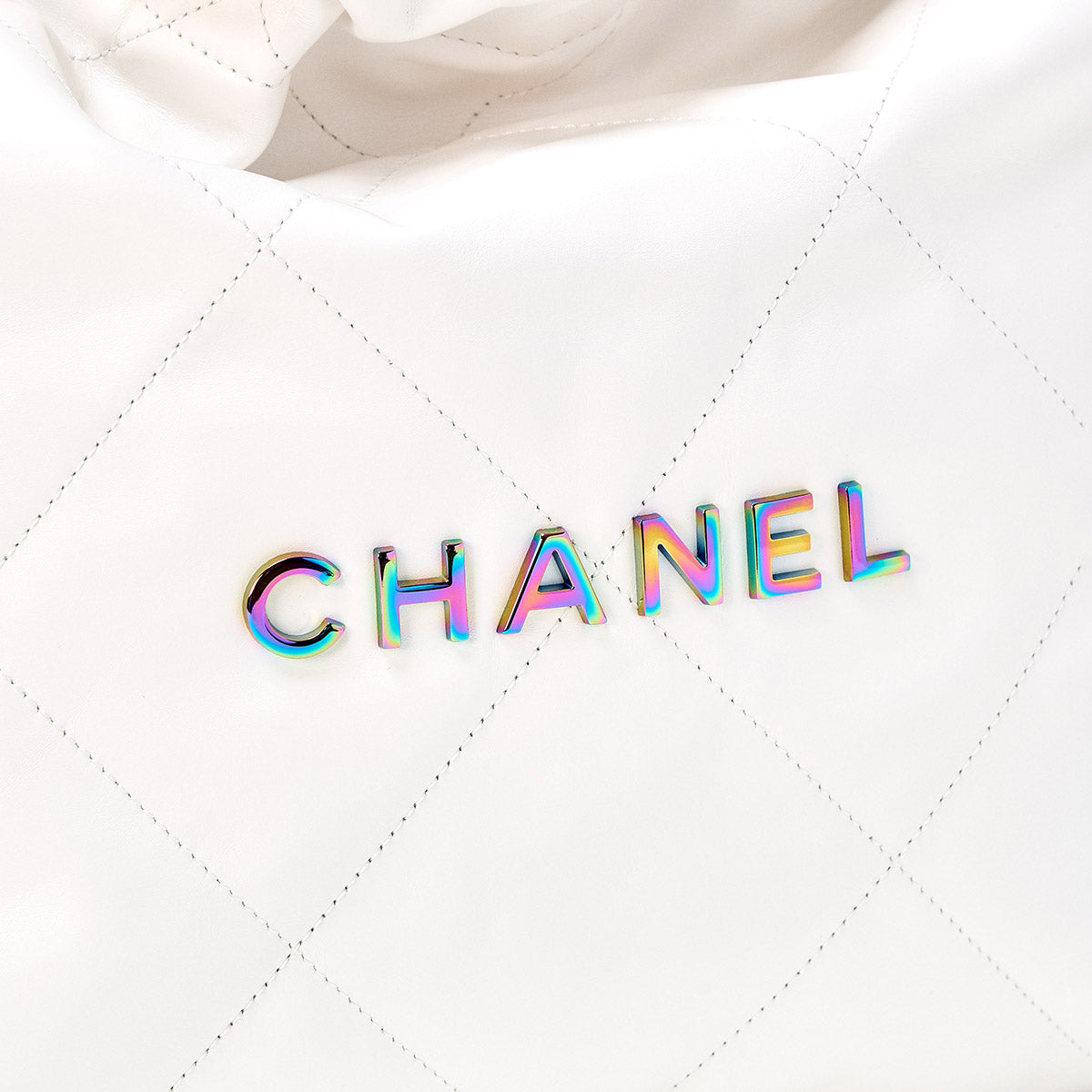 CHANEL Chanel 22 Small 2021 Shoulder Bag White Rainbow Calf Skin Auth