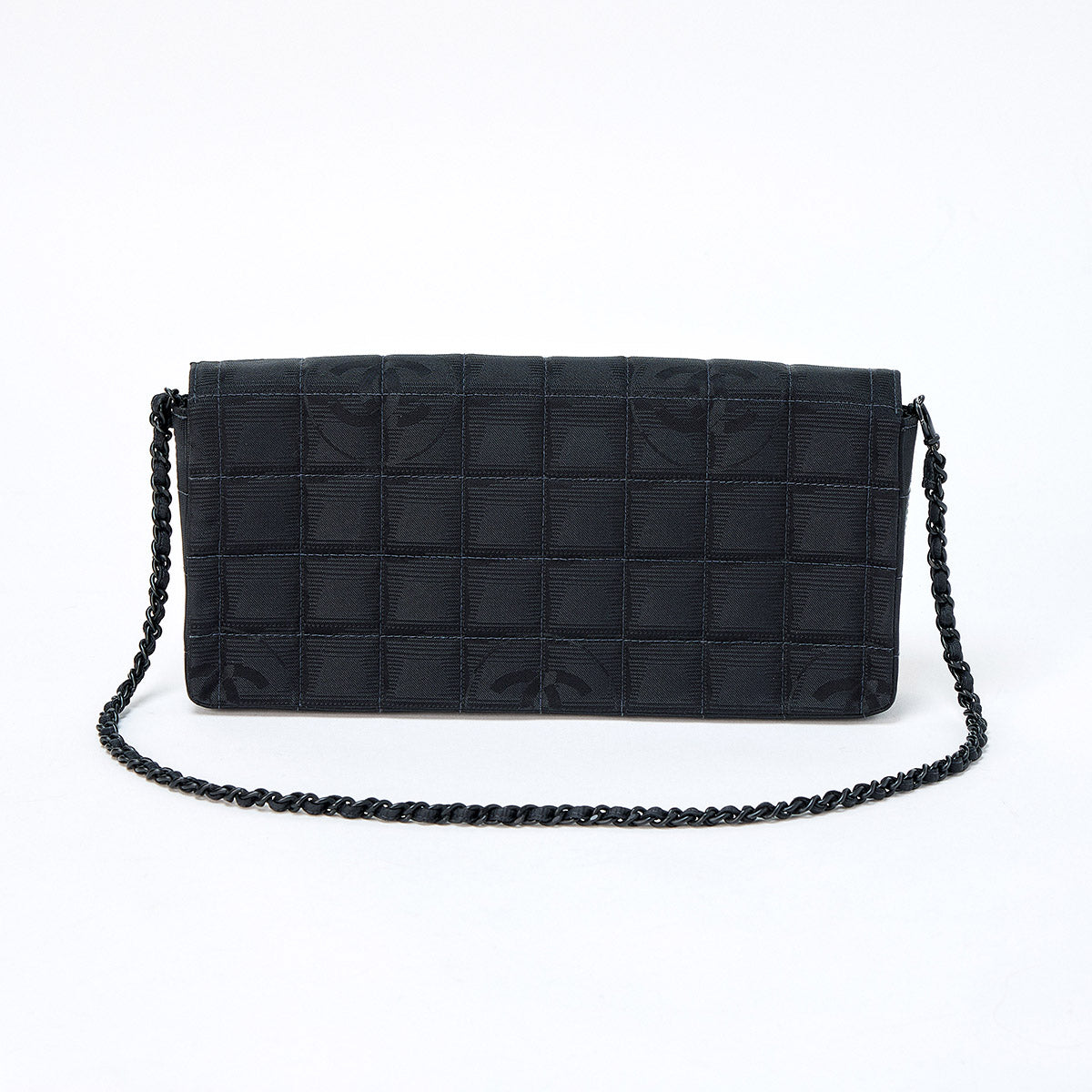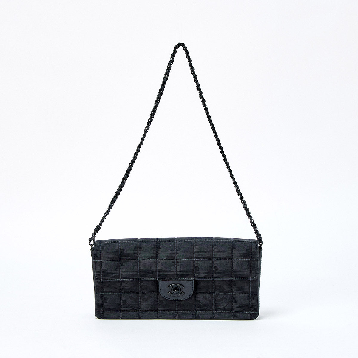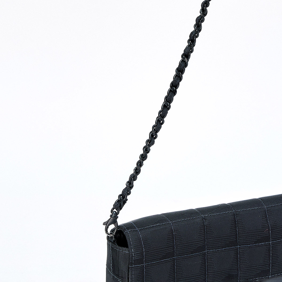 CHANEL Choco Bar New Travel Line 2000 Shoulder Bag Black Black Nylon Auth