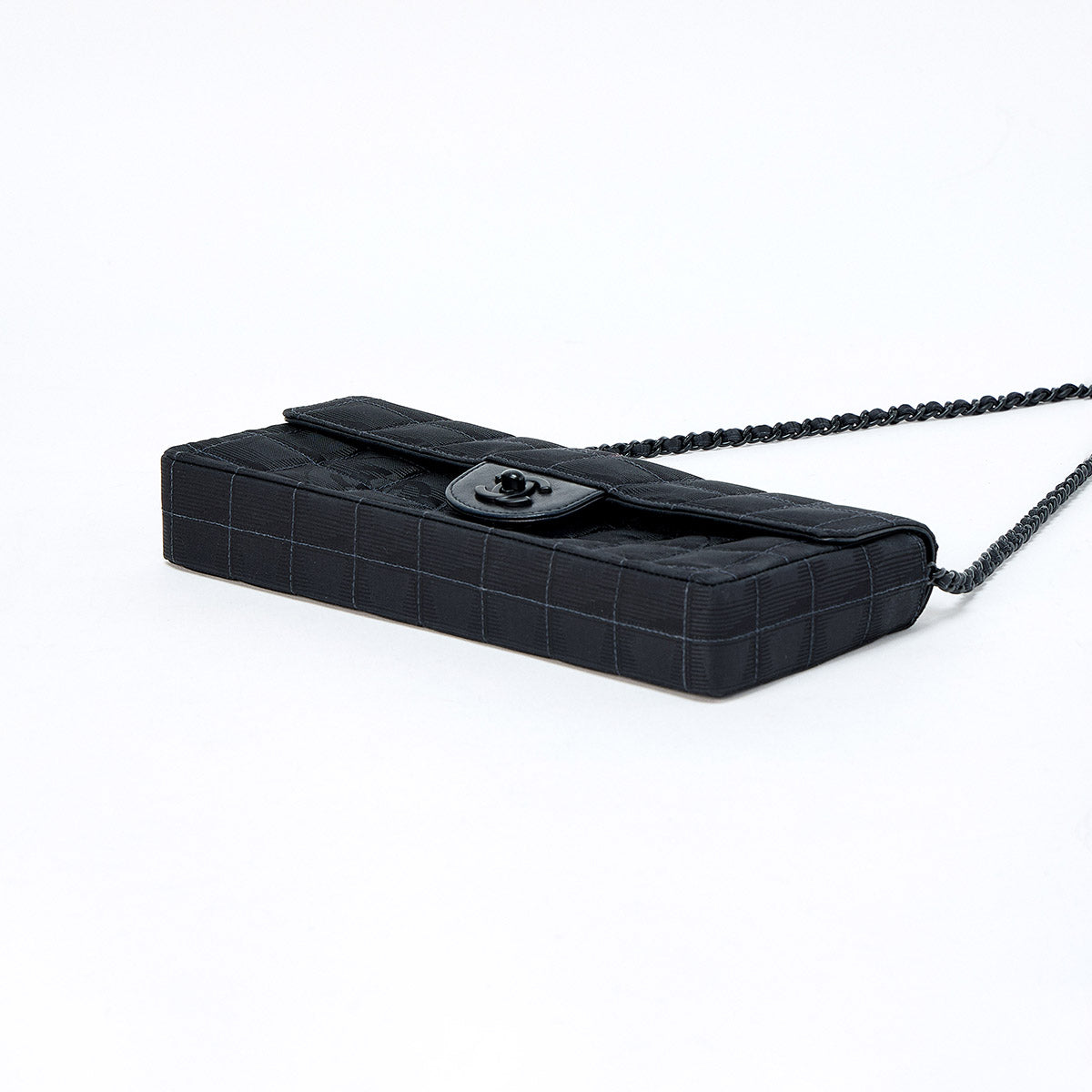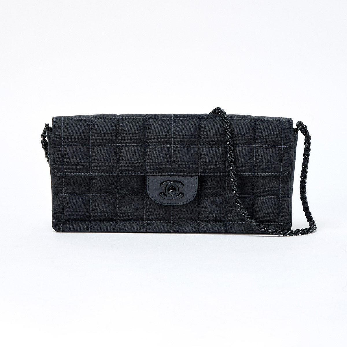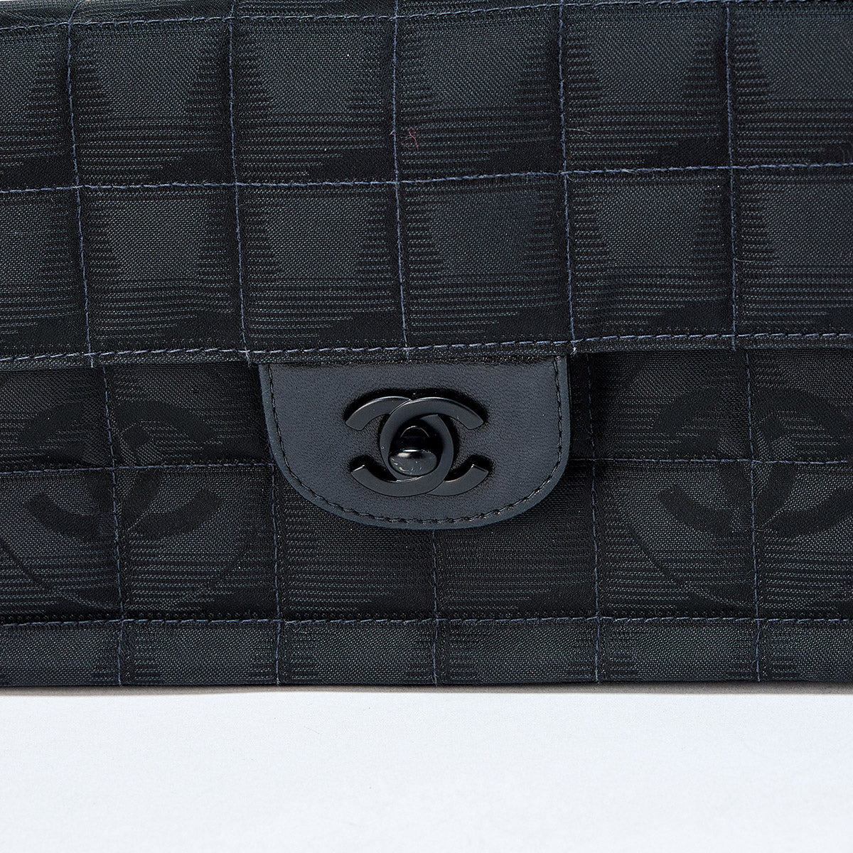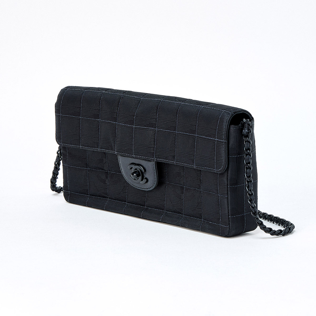 CHANEL Choco Bar New Travel Line 2000 Shoulder Bag Black Black Nylon Auth