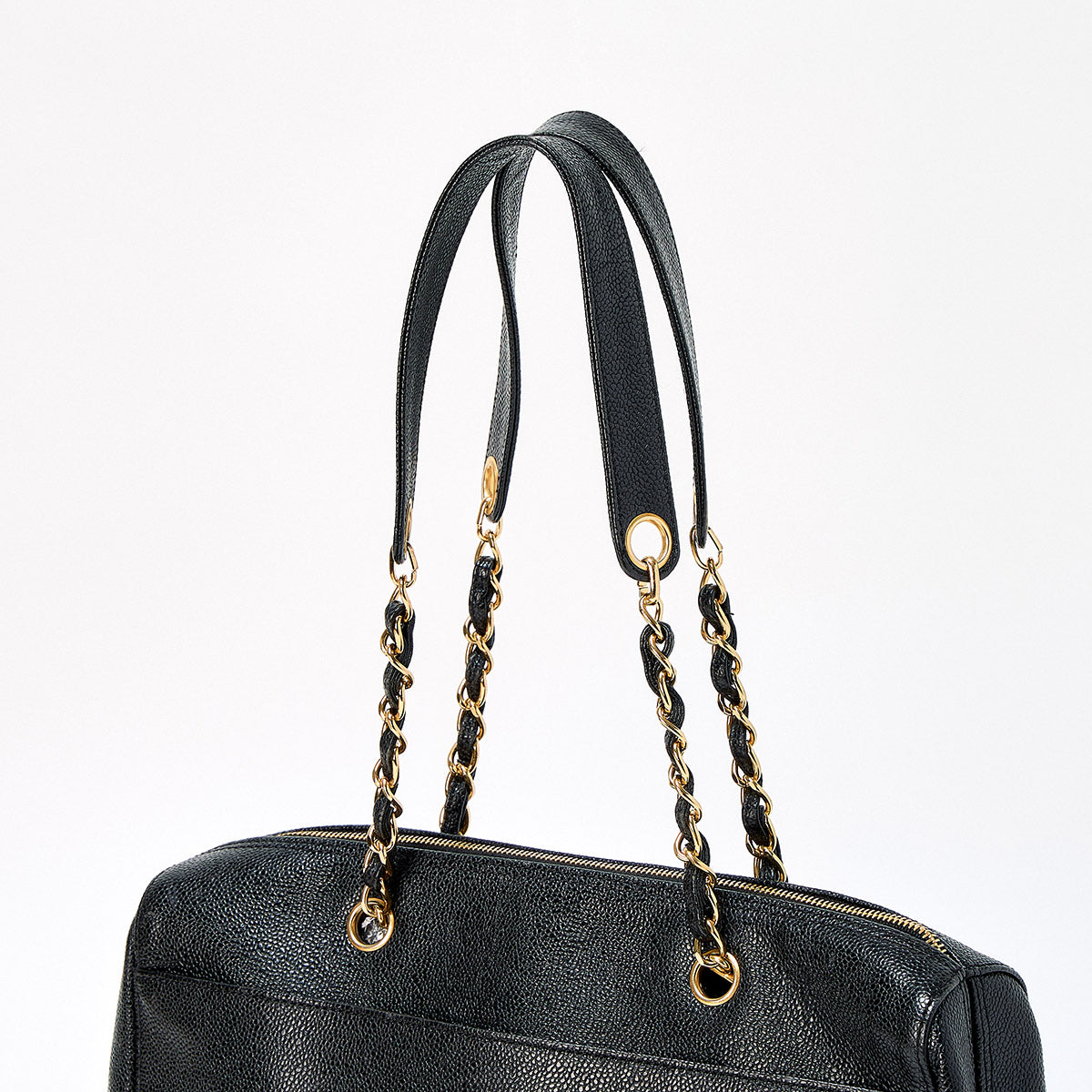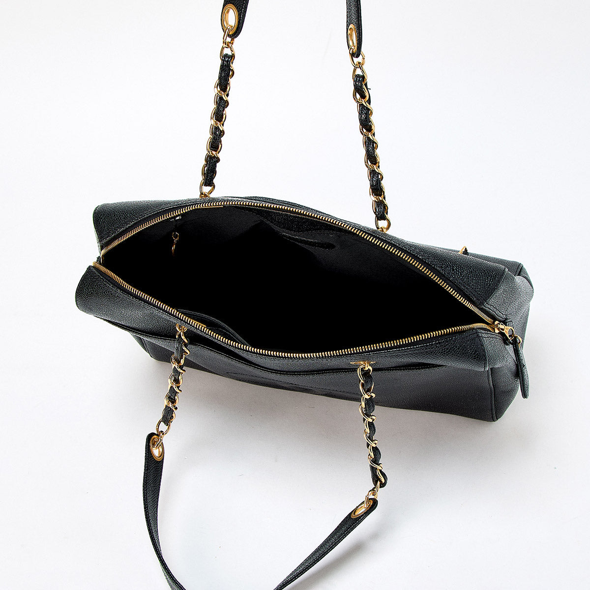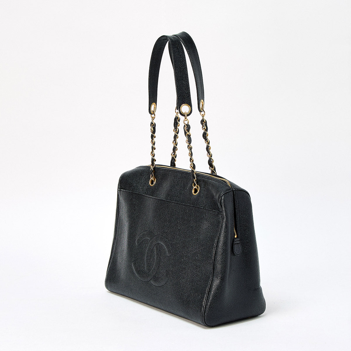 CHANEL COCO Mark 1998 Shoulder Bag Black Gold Caviar Skin Auth