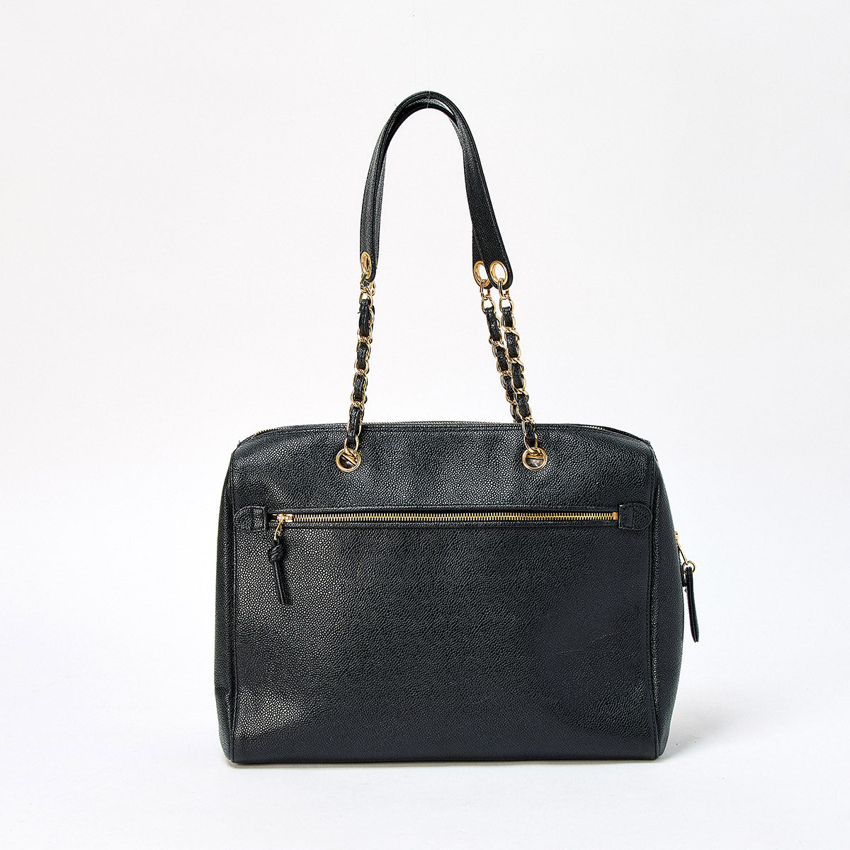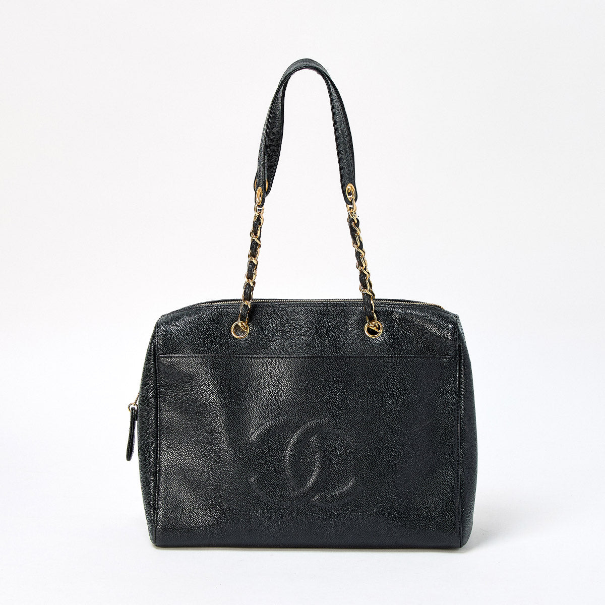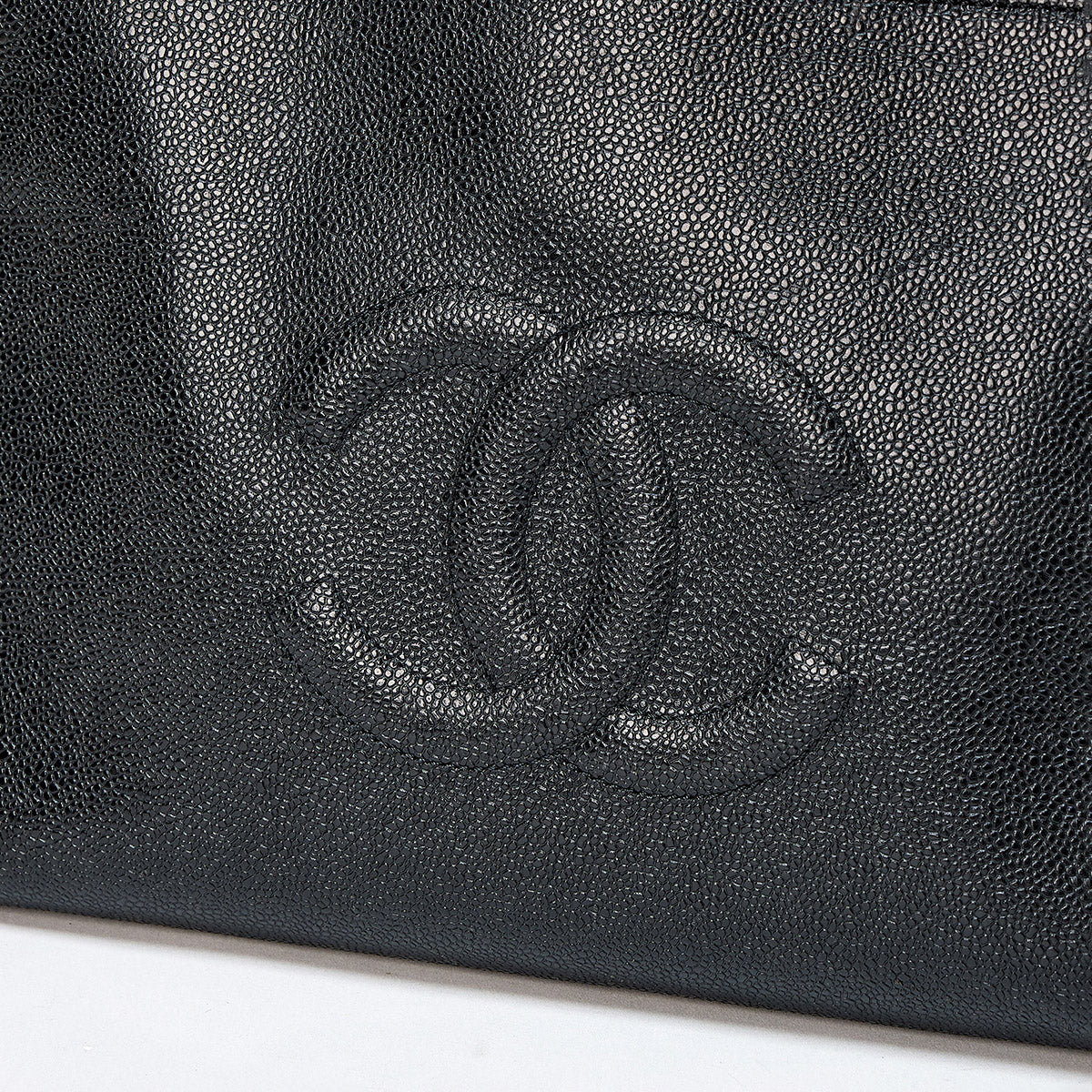 CHANEL COCO Mark 1998 Shoulder Bag Black Gold Caviar Skin Auth