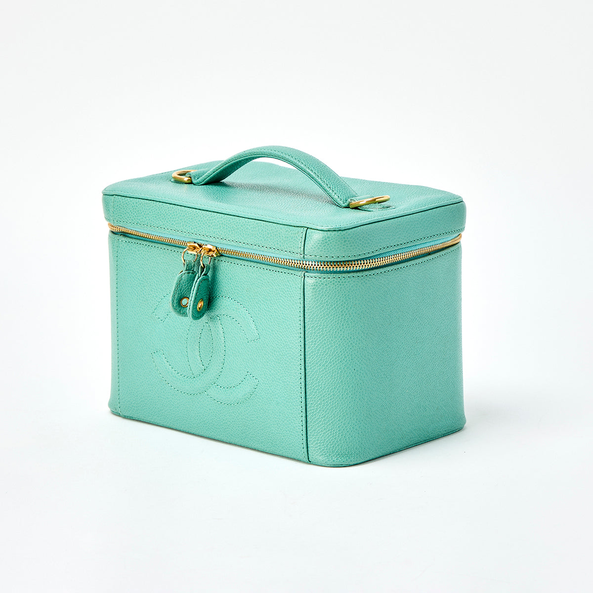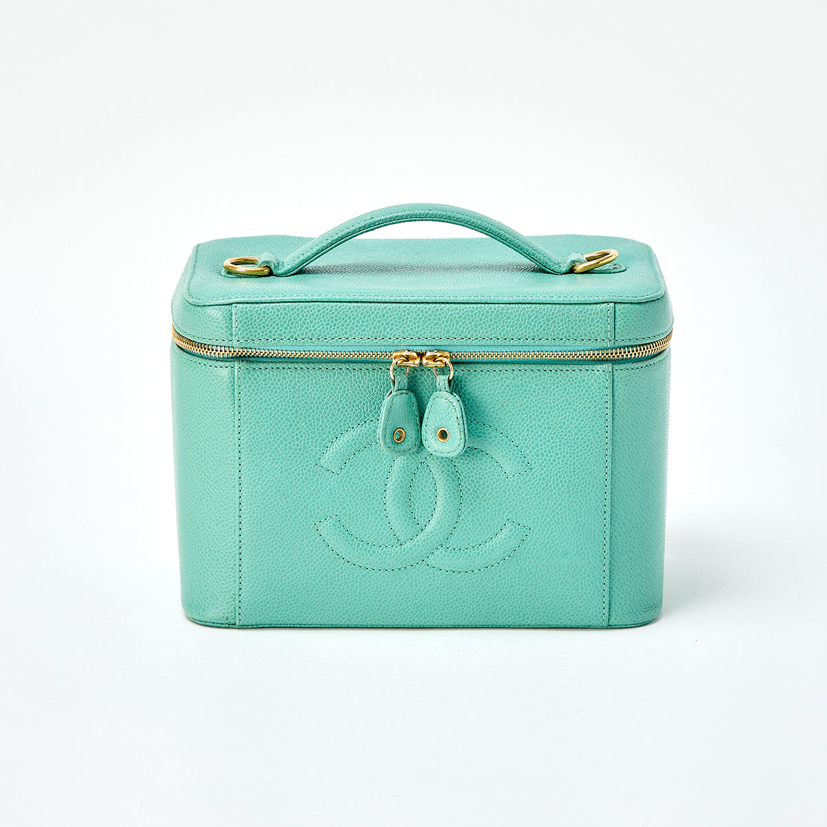 CHANEL COCO Mark 1998 Shoulder Bag Green Gold Caviar Skin Auth