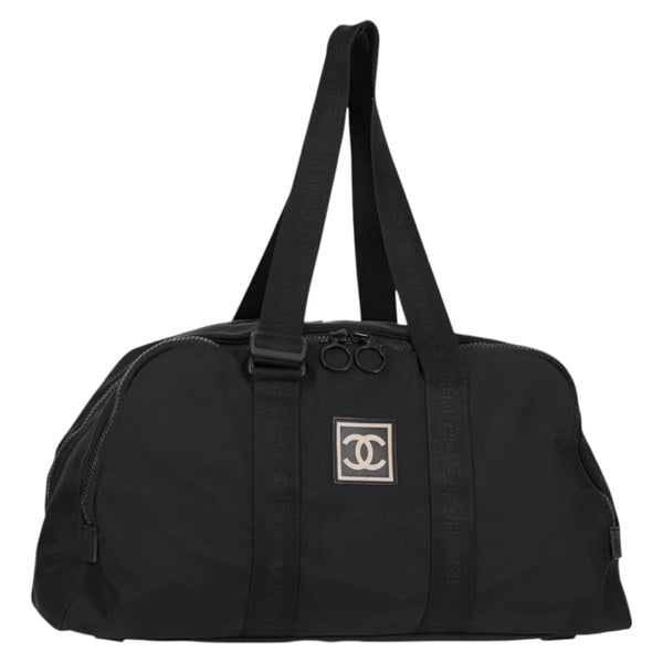 CHANEL COCO Mark Sports Line Boston Bag Black Black Nylon Auth