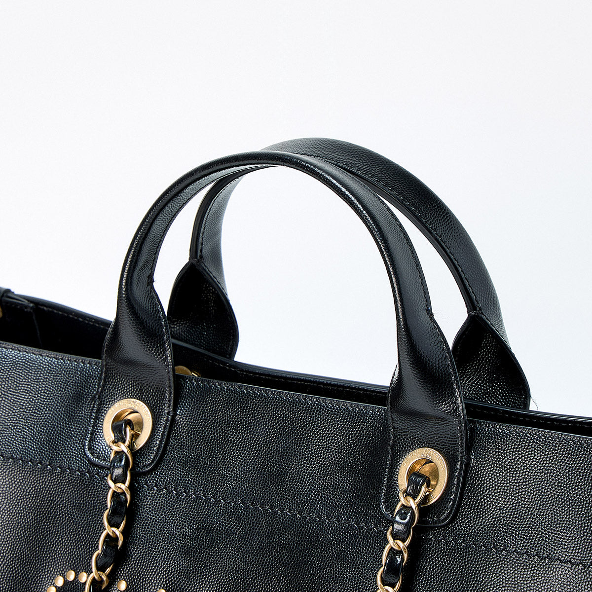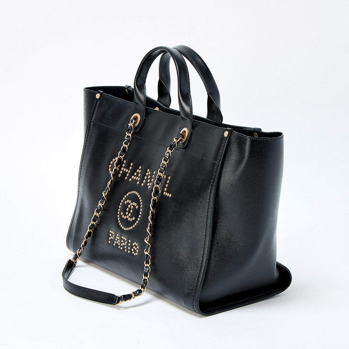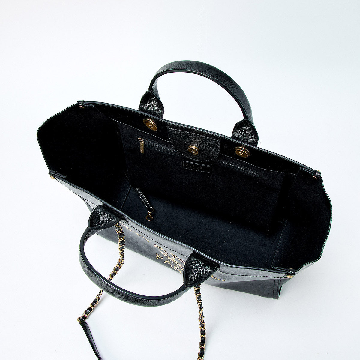 CHANEL Deauville GM 2019 Tote Bag Black Gold Caviar Skin Auth