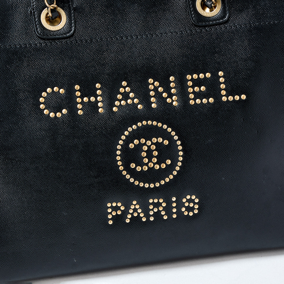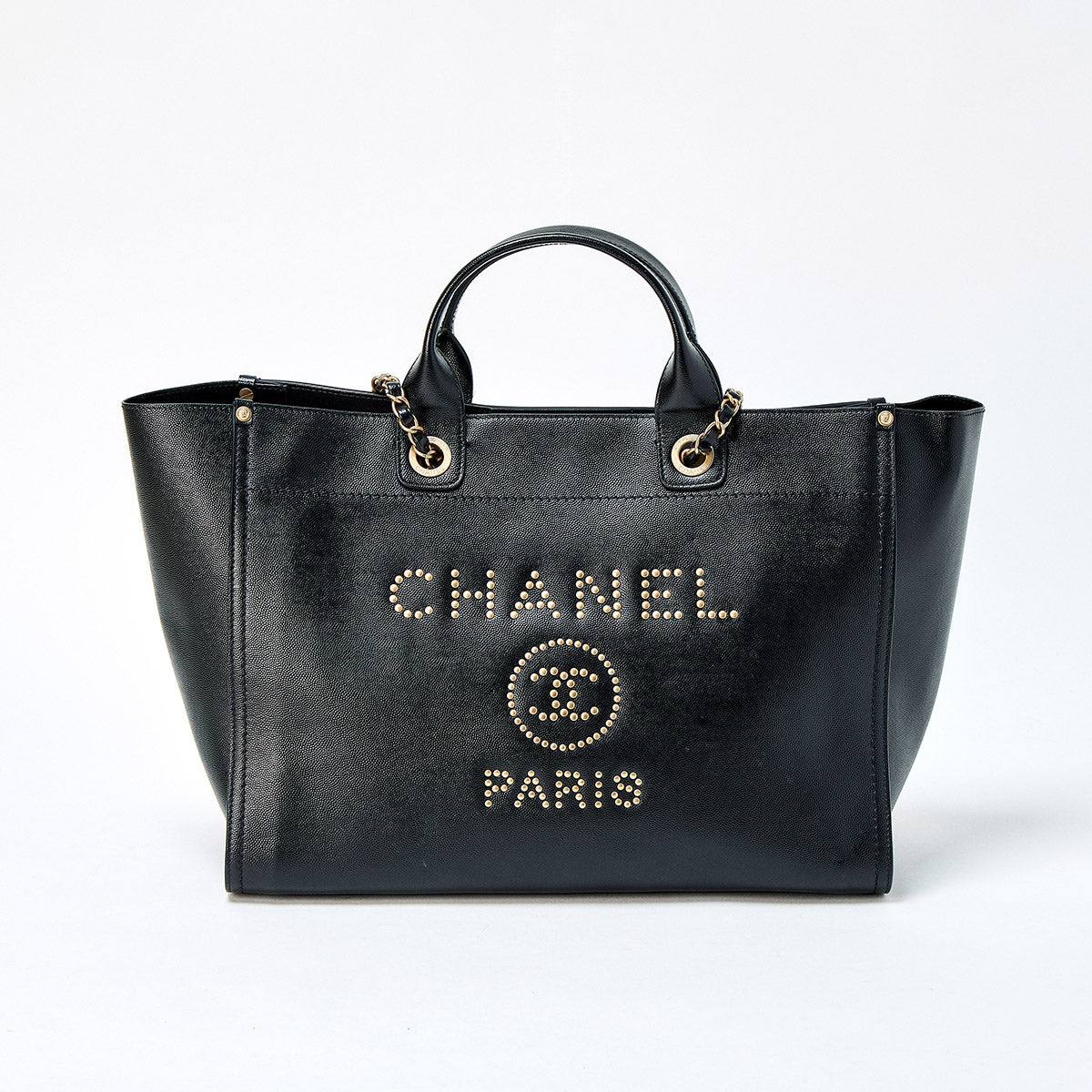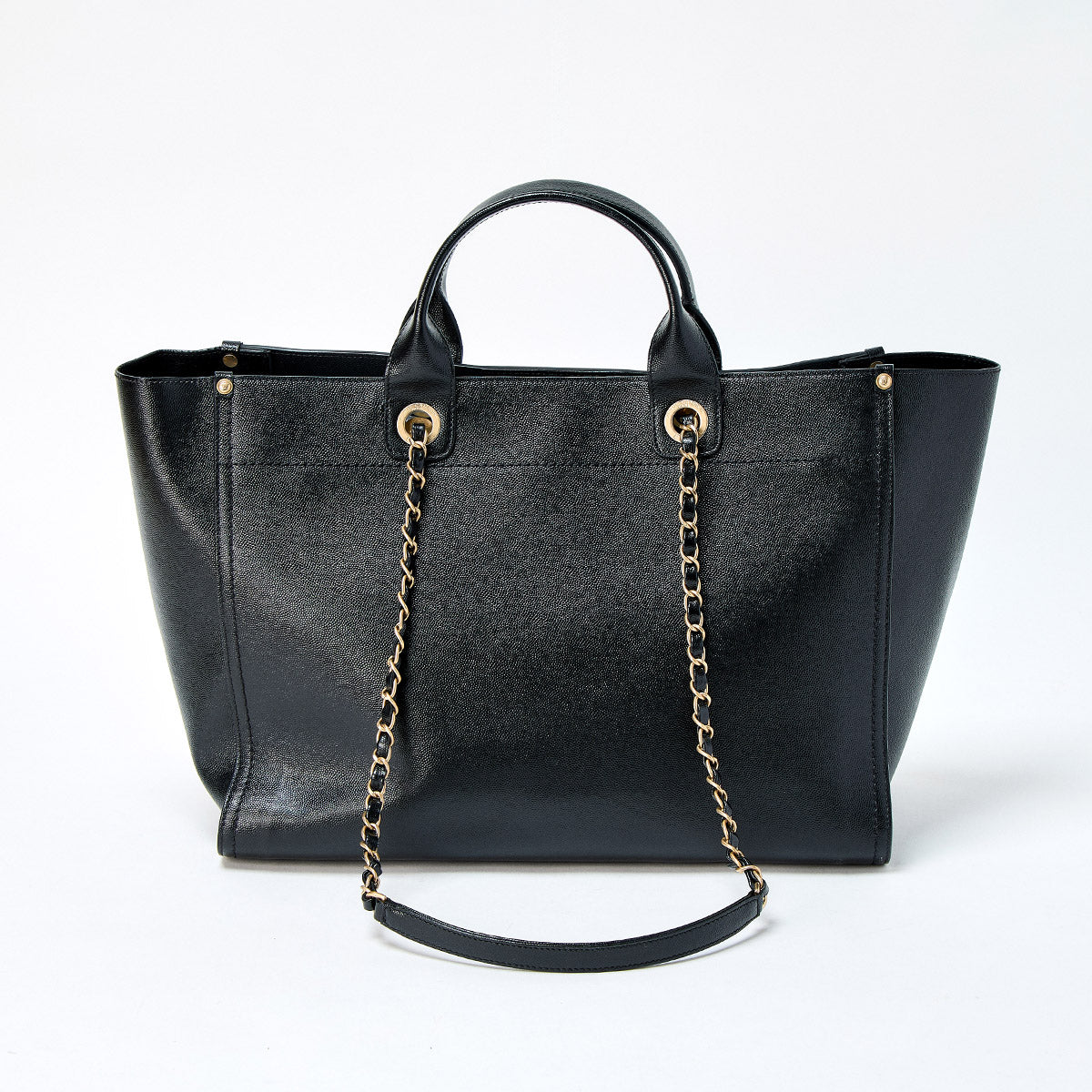 CHANEL Deauville GM 2019 Tote Bag Black Gold Caviar Skin Auth