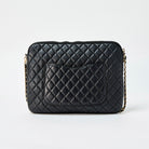 CHANEL Girl Chanel 2016 Shoulder Bag Black Gold Lamb Skin Auth