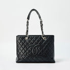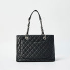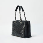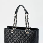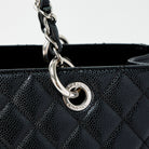 CHANEL GST 2014 Shoulder Bag Black Silver Caviar Skin Auth