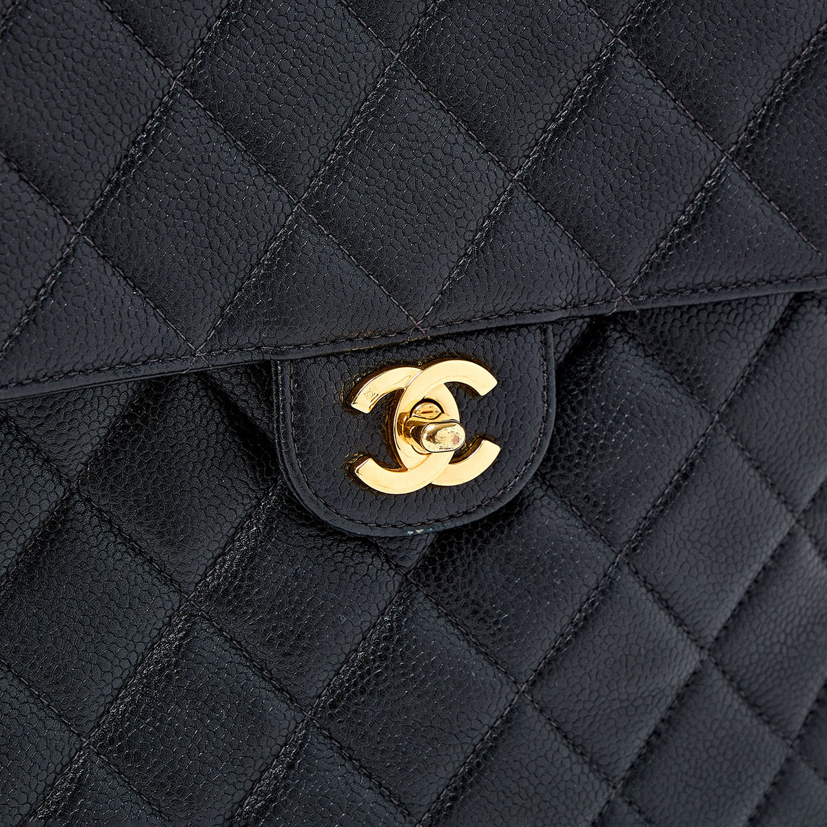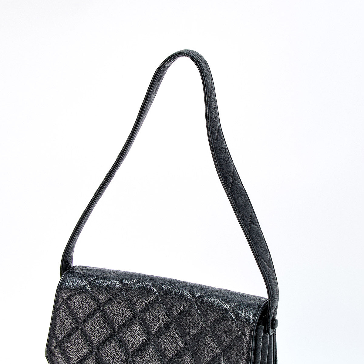 CHANEL Matelasse 1997 Double Face Shoulder Bag Black Gold Caviar Skin Auth