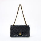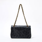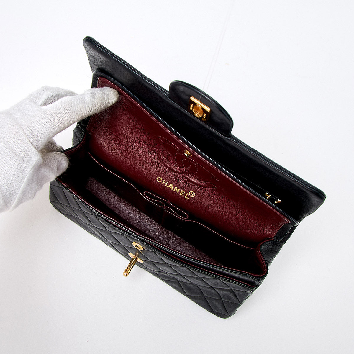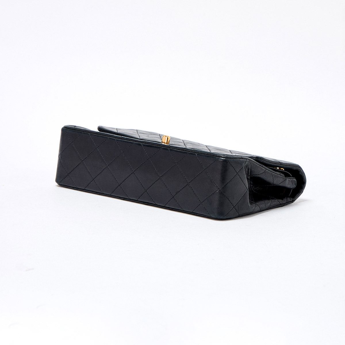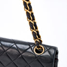 CHANEL Matelasse 23 Double Flap Double Chain Shoulder Bag circa 1992 Black Gold Lamb Skin Auth