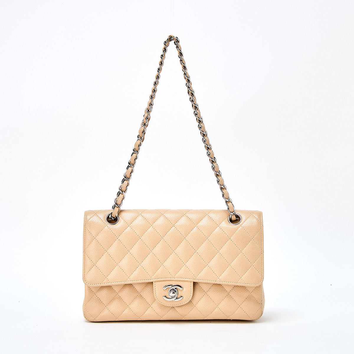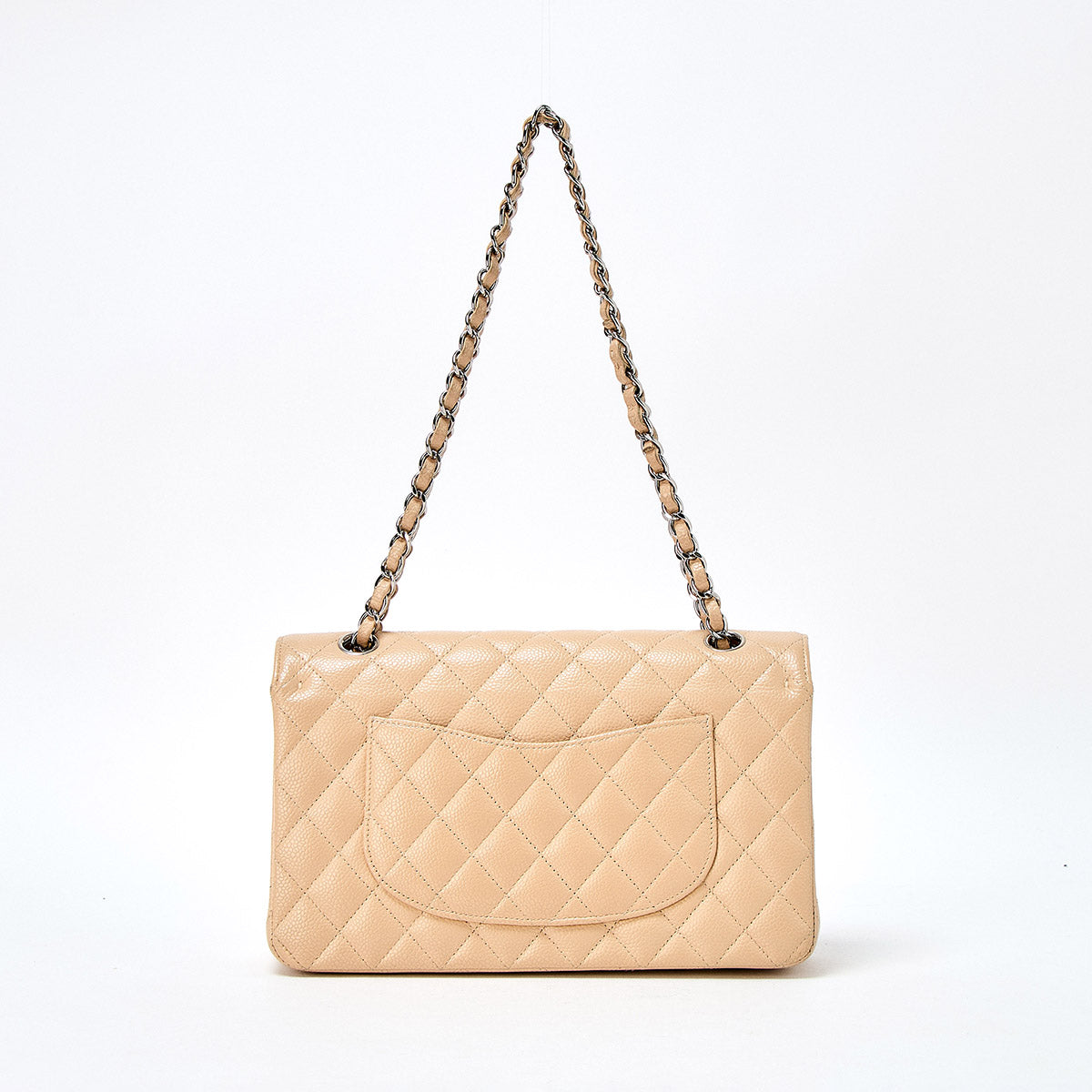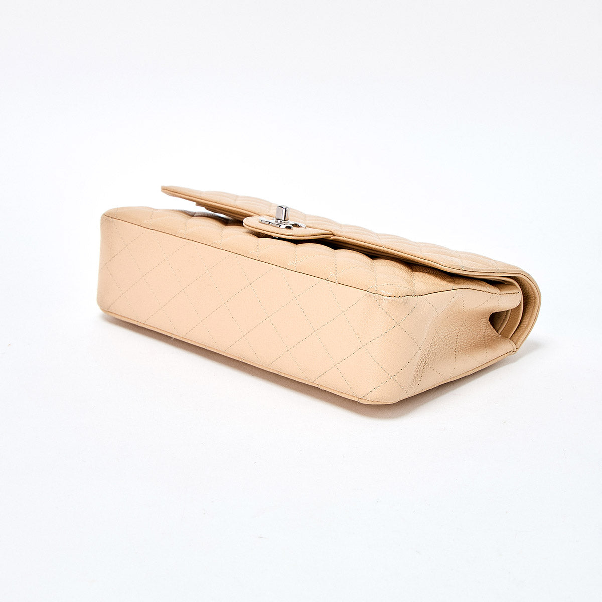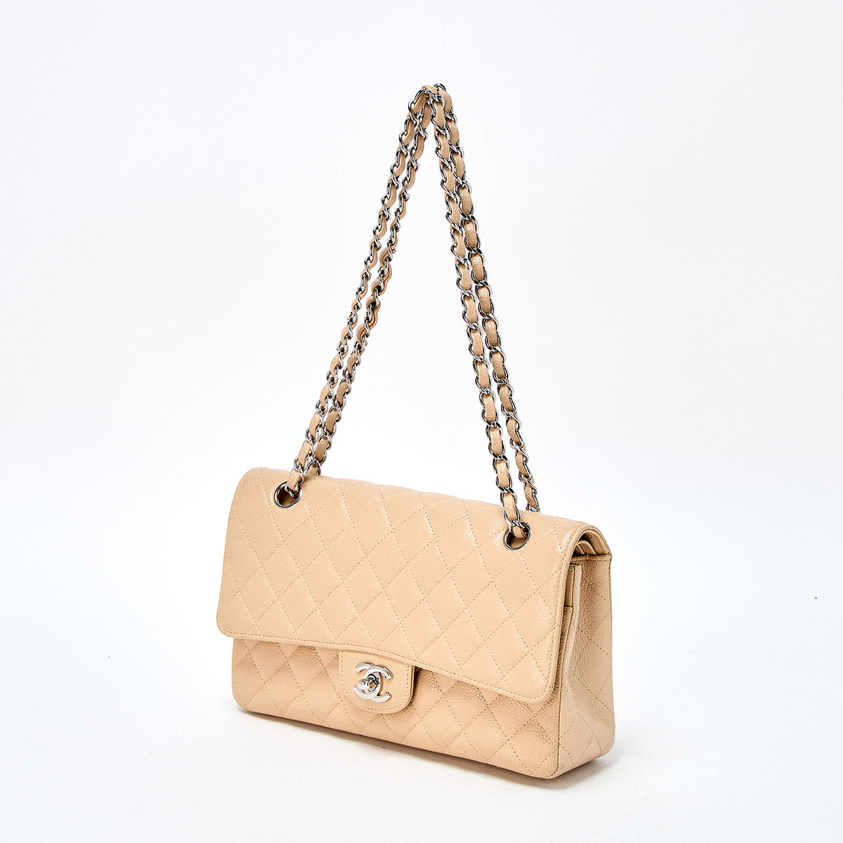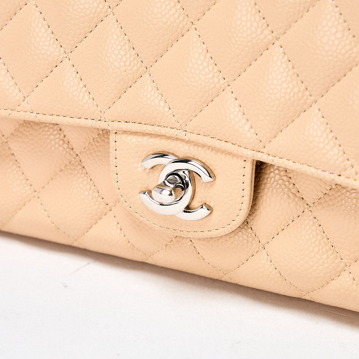 CHANEL Matelasse 25 COCO Mark Double Flap Double Chain Shoulder Bag Beige Silver Caviar Skin 2014 Auth