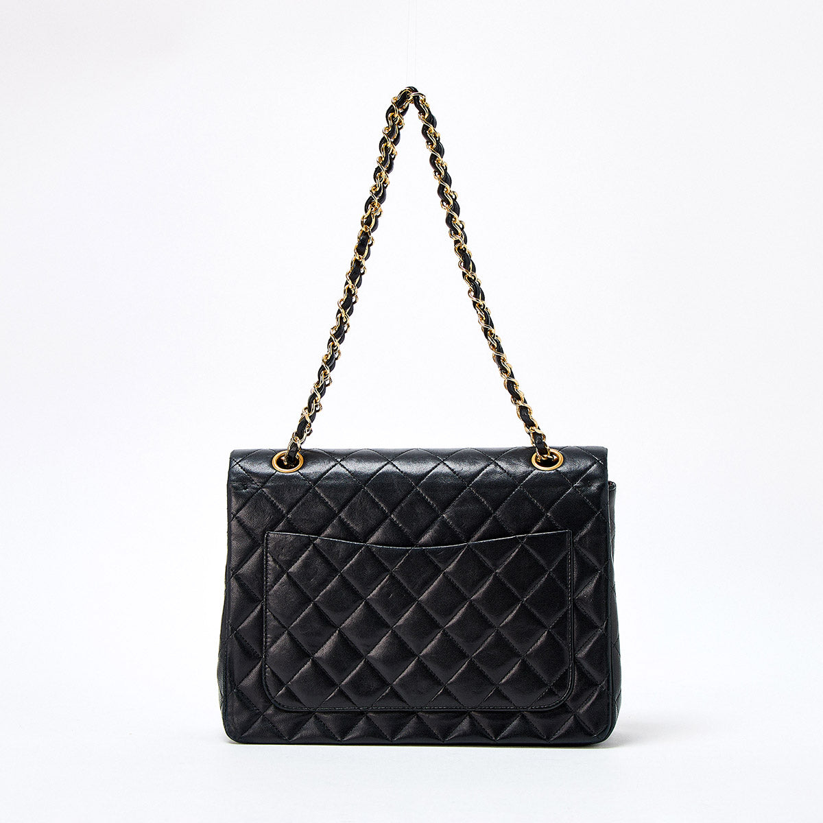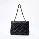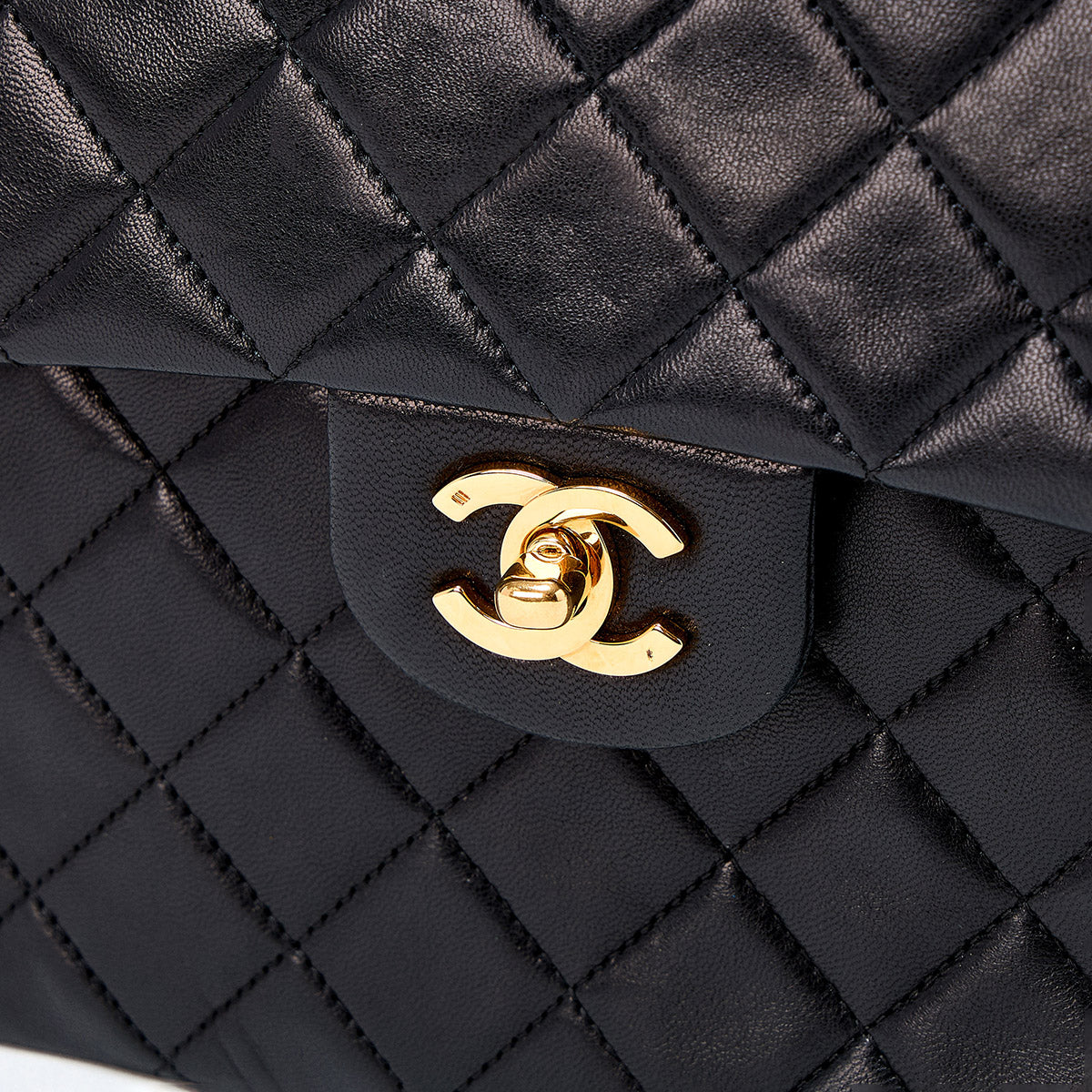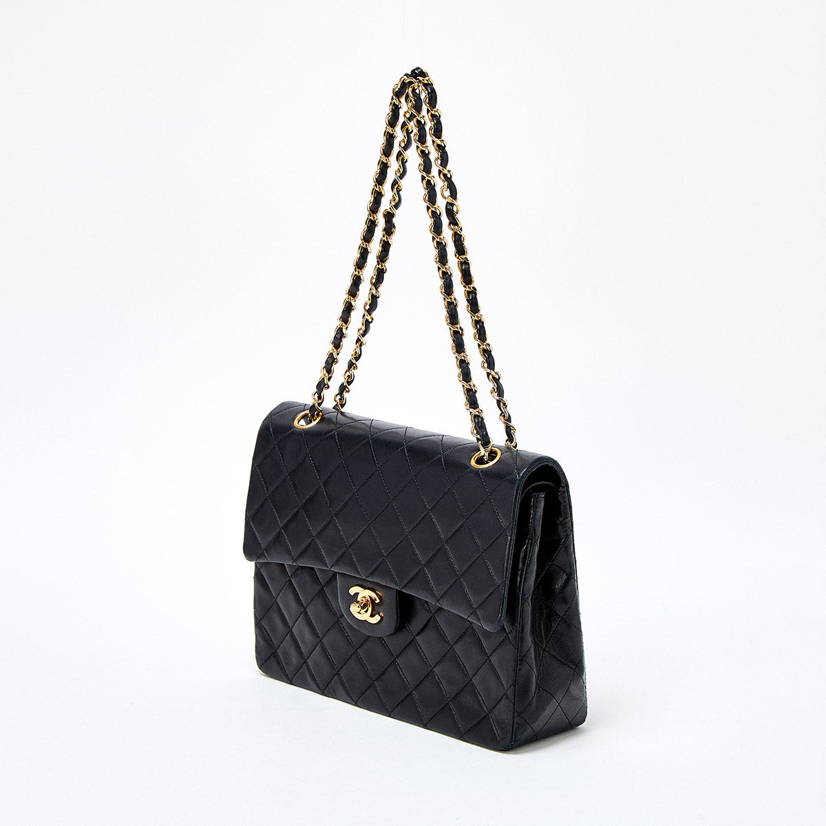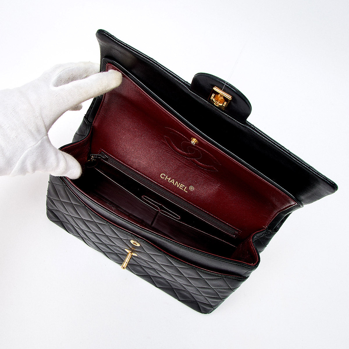 CHANEL Matelasse 25 Double Flap Double Chain Shoulder Bag circa 1990 Black Gold Lamb Skin Auth