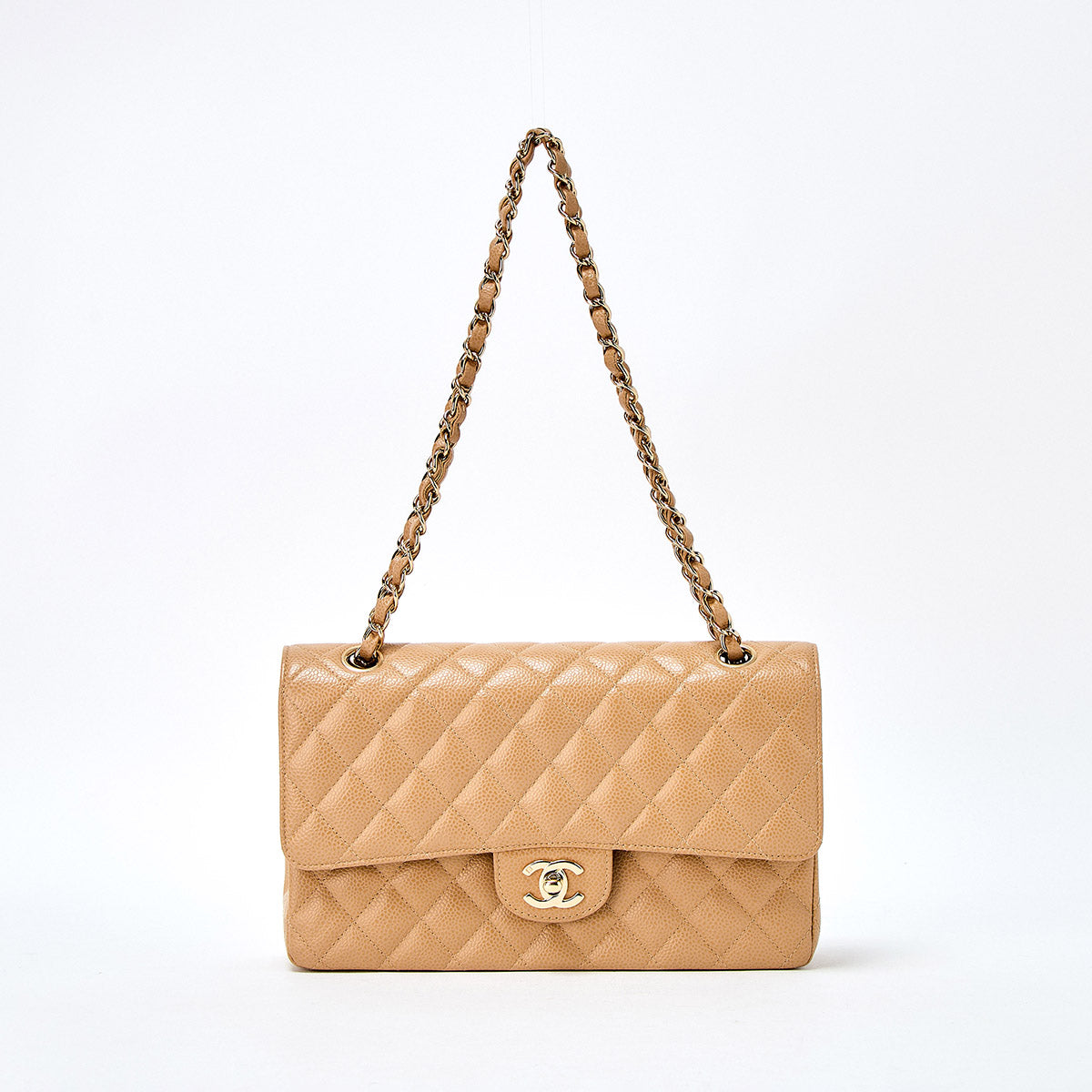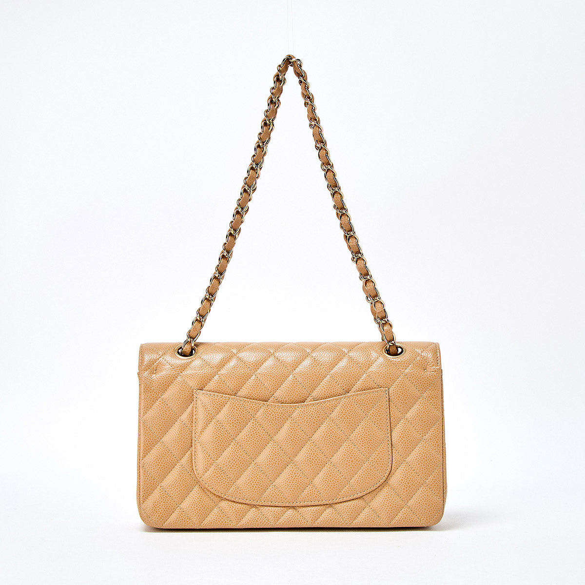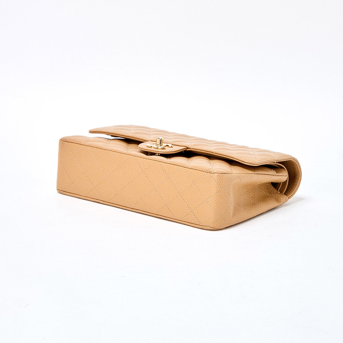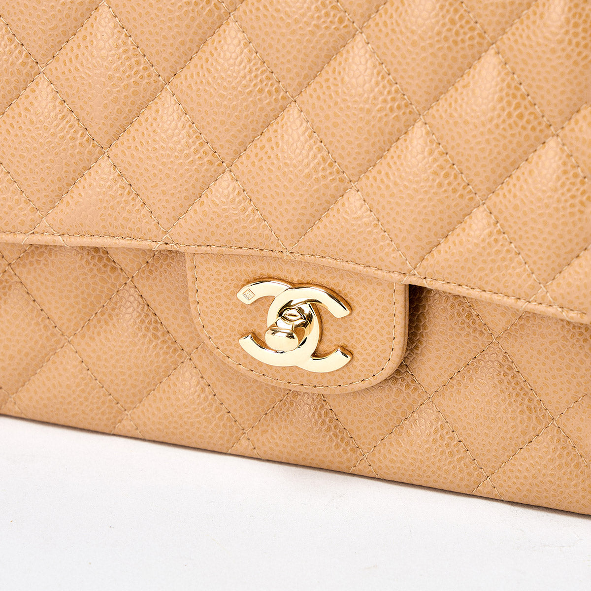 CHANEL Matelasse 25 Double Flap Double Chain Shoulder Bag circa 2003 Beige Gold Caviar Skin Auth