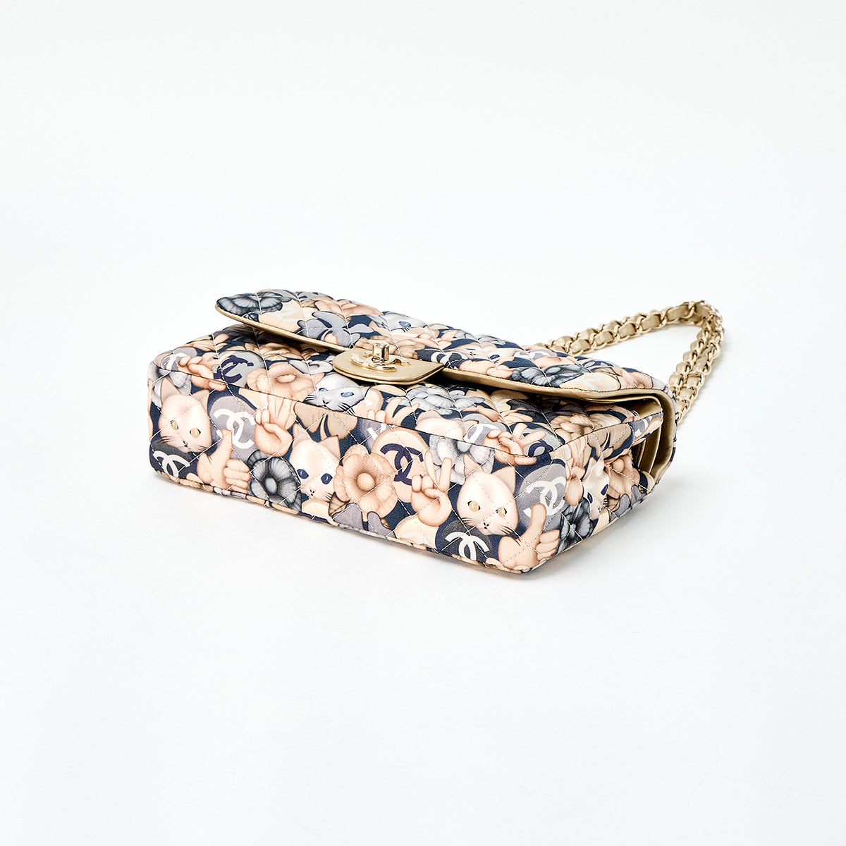 CHANEL Matelasse Cat Motif 25 2016 Shoulder Bag Navy Gold Grey Gold Nylon Auth