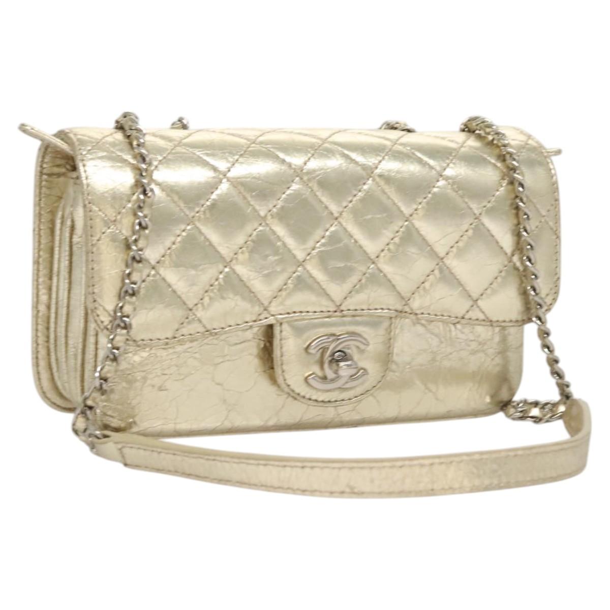 CHANEL Matelasse Chain Shoulder Bag Leather Gold Tone CC Auth 118280V