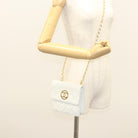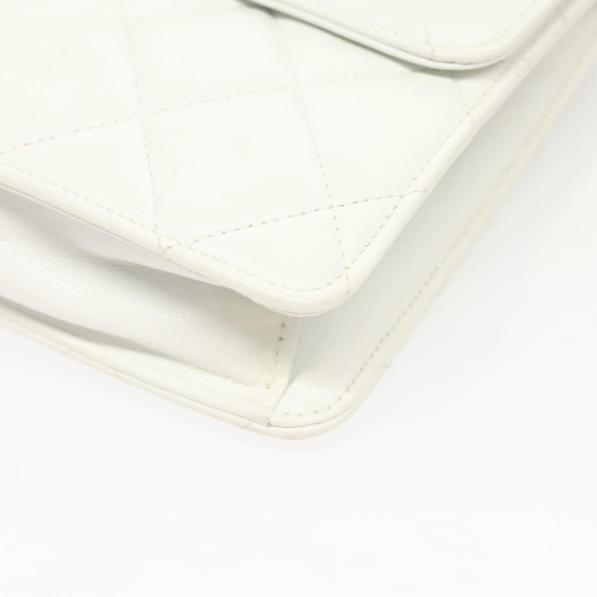 CHANEL Matelasse COCO Mark Chain Bag Lamb Skin White Gold CC Auth 122303V