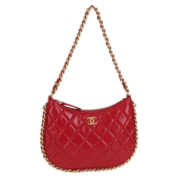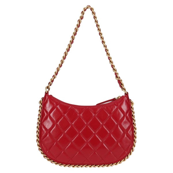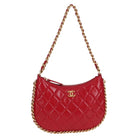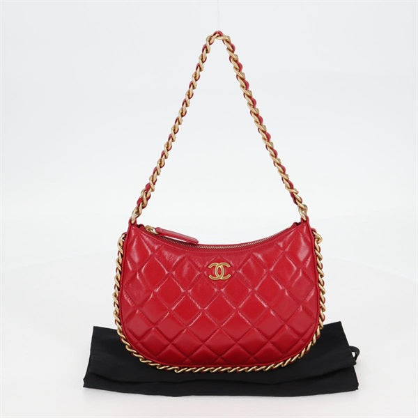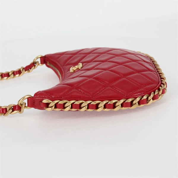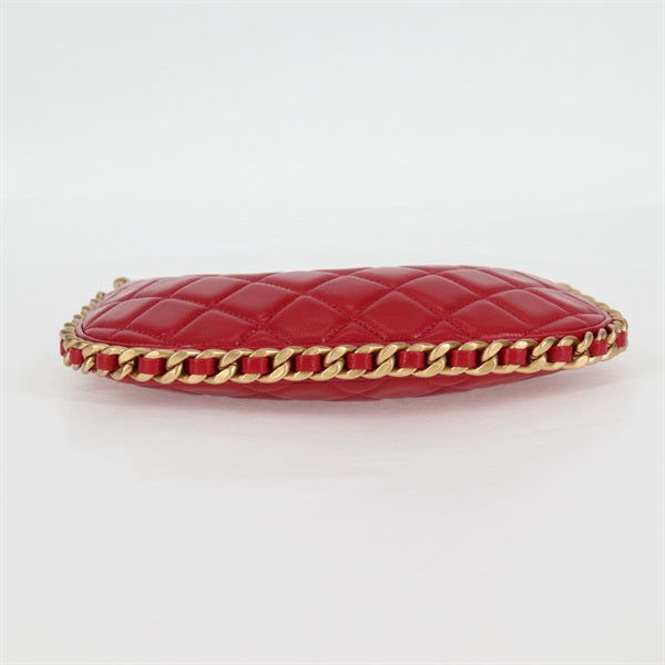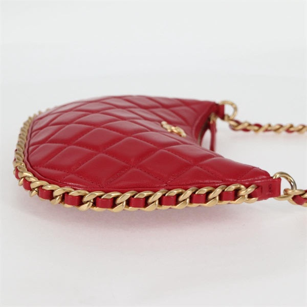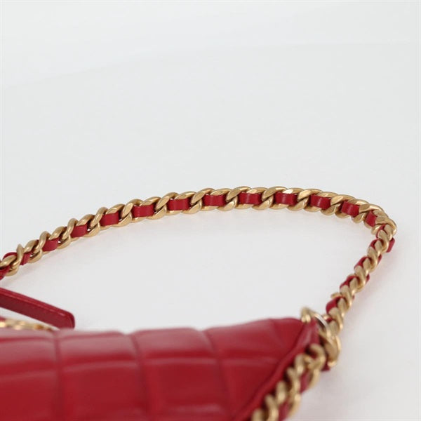 CHANEL Matelasse COCO Mark Shoulder Bag Red Gold Lamb Skin Auth