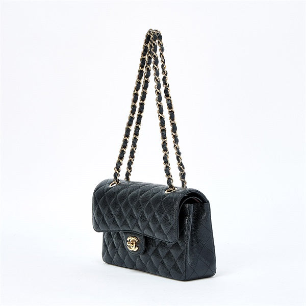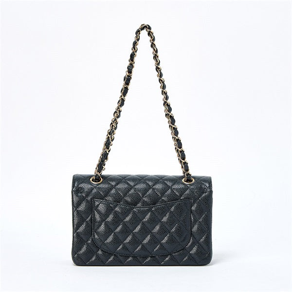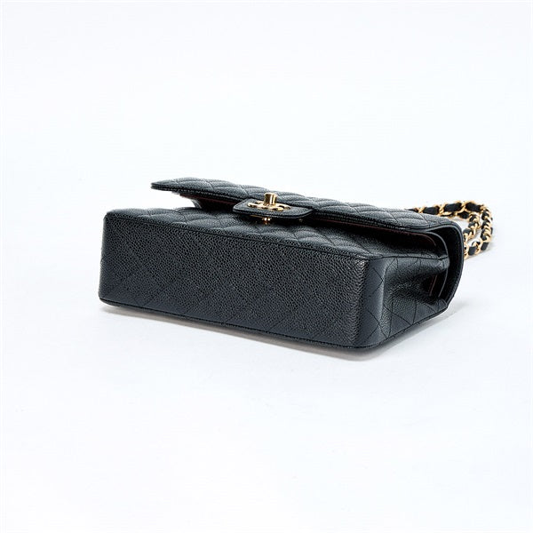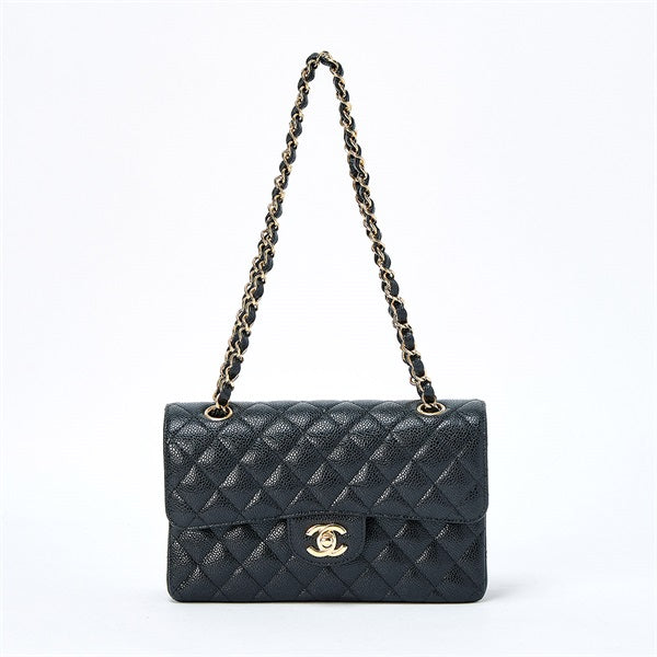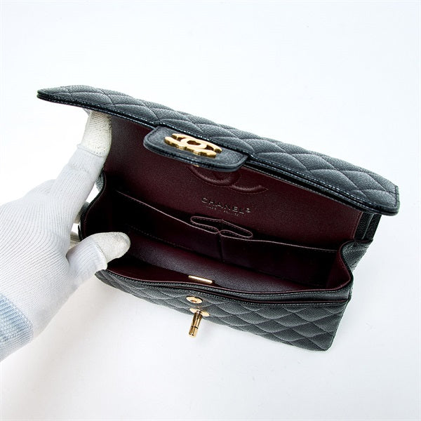 CHANEL Matelasse Double Flap Double Chain 23 2021 Shoulder Bag Black Gold Caviar Skin Auth