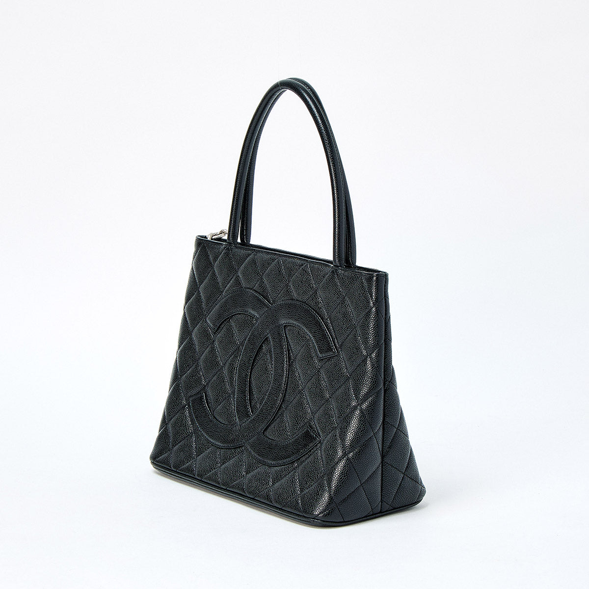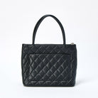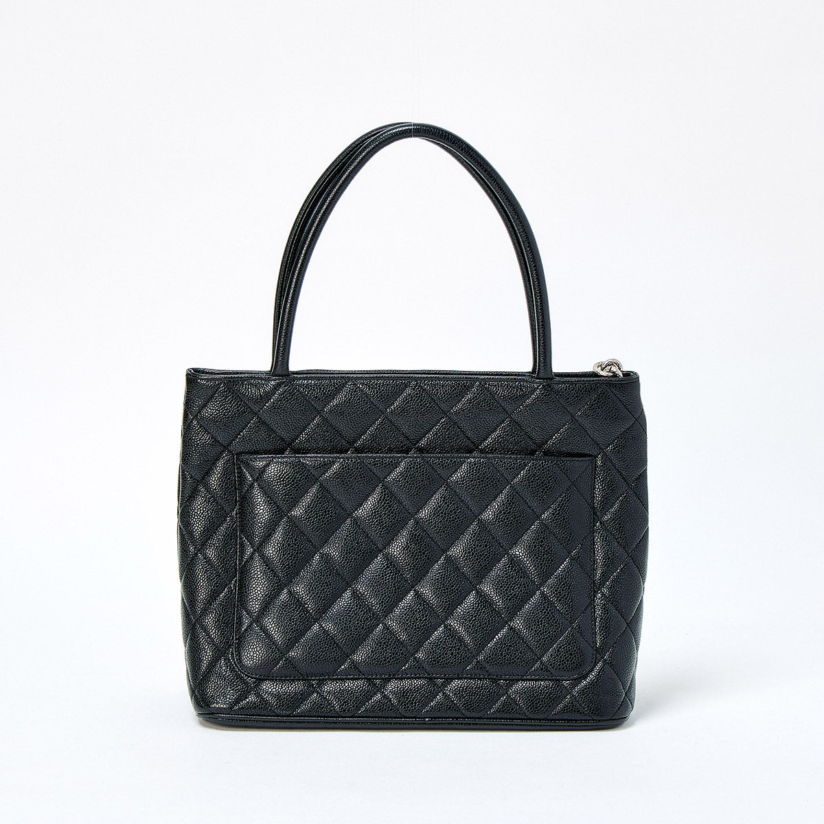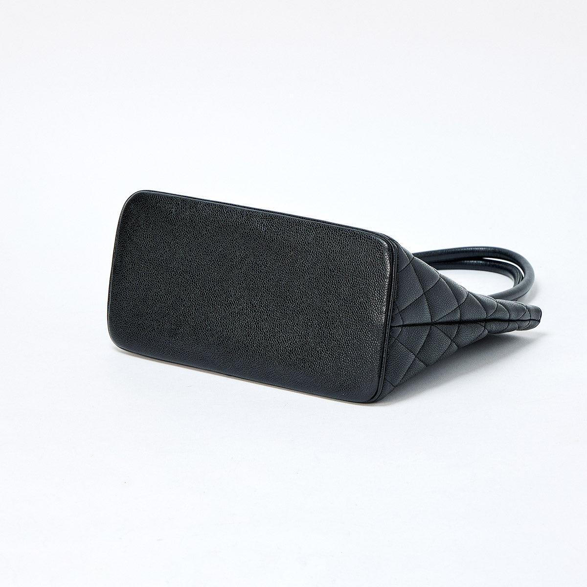 CHANEL Matelasse Reproduction 2000 Tote Bag Black Silver Caviar Skin Auth