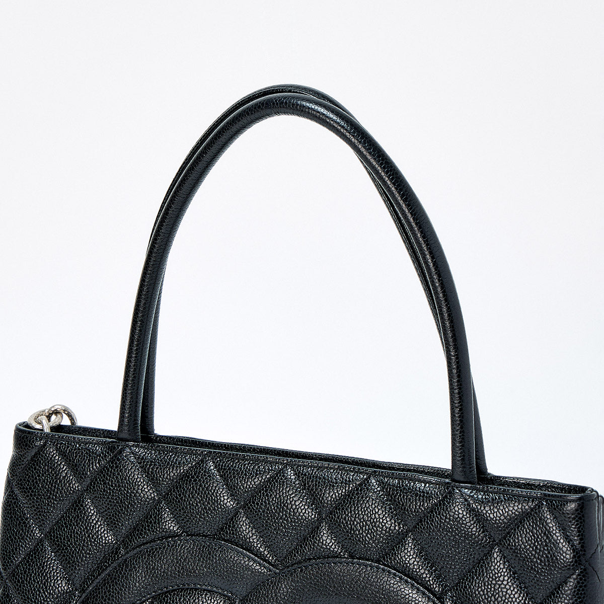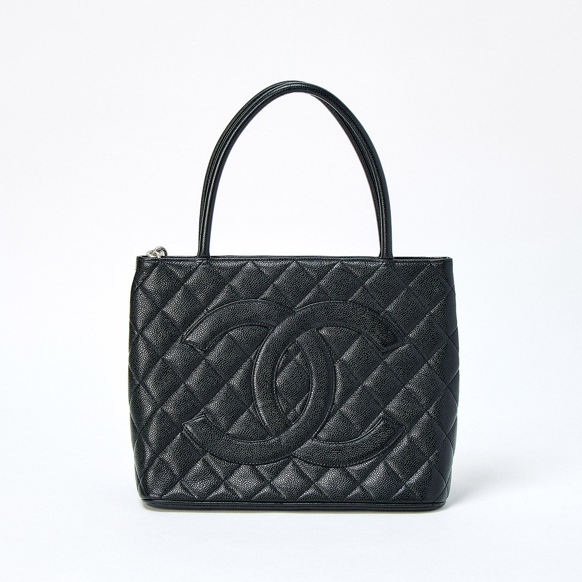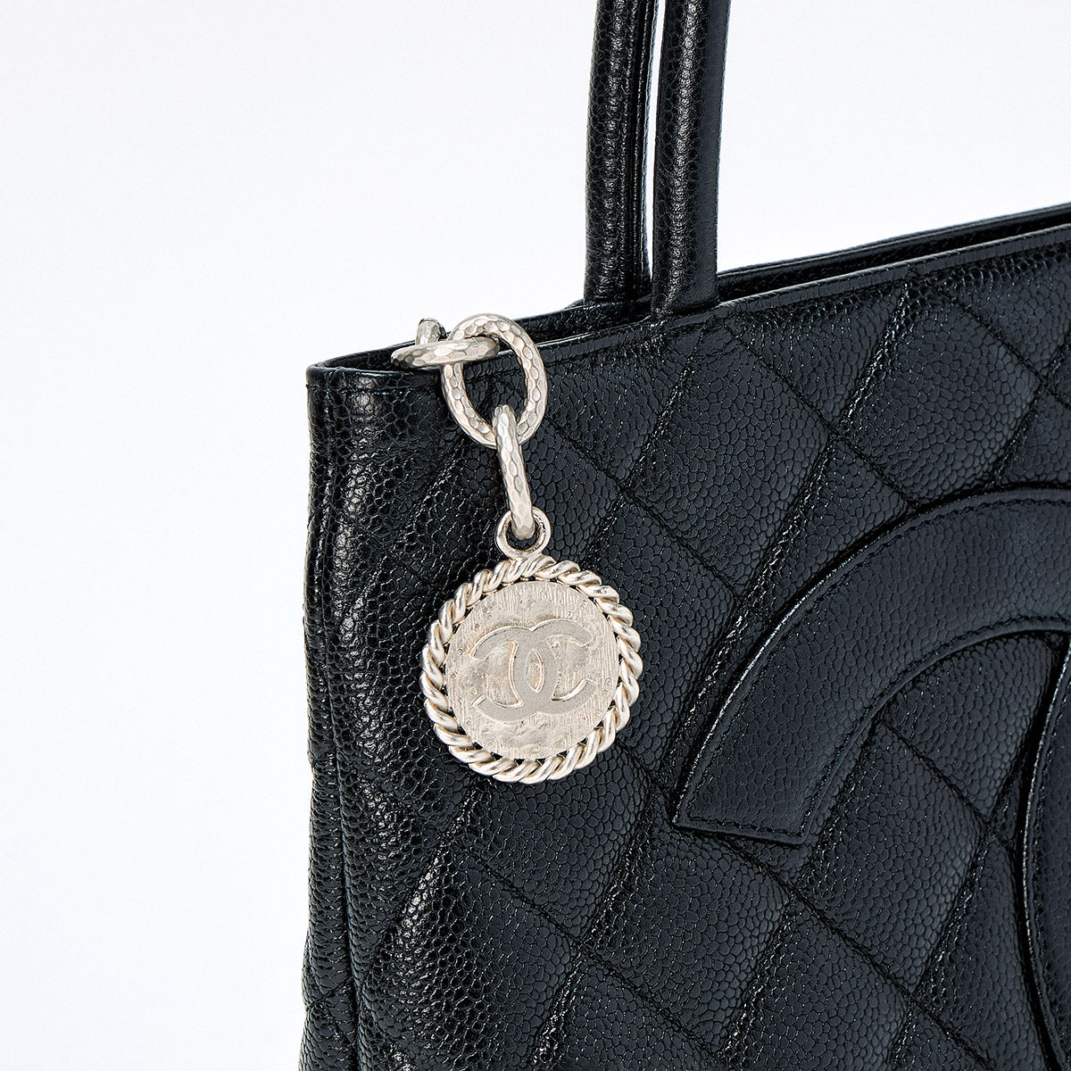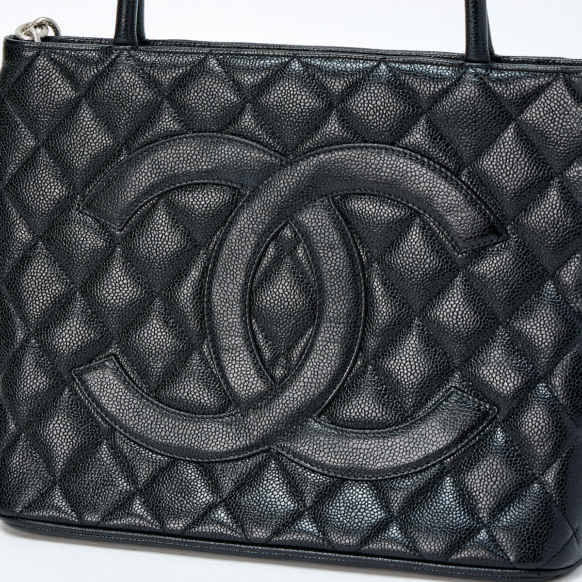 CHANEL Matelasse Reproduction 2000 Tote Bag Black Silver Caviar Skin Auth