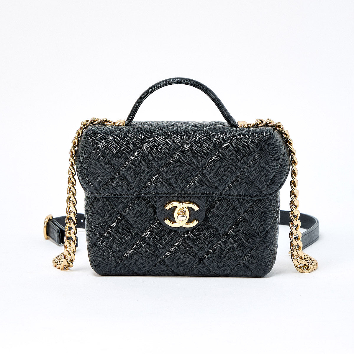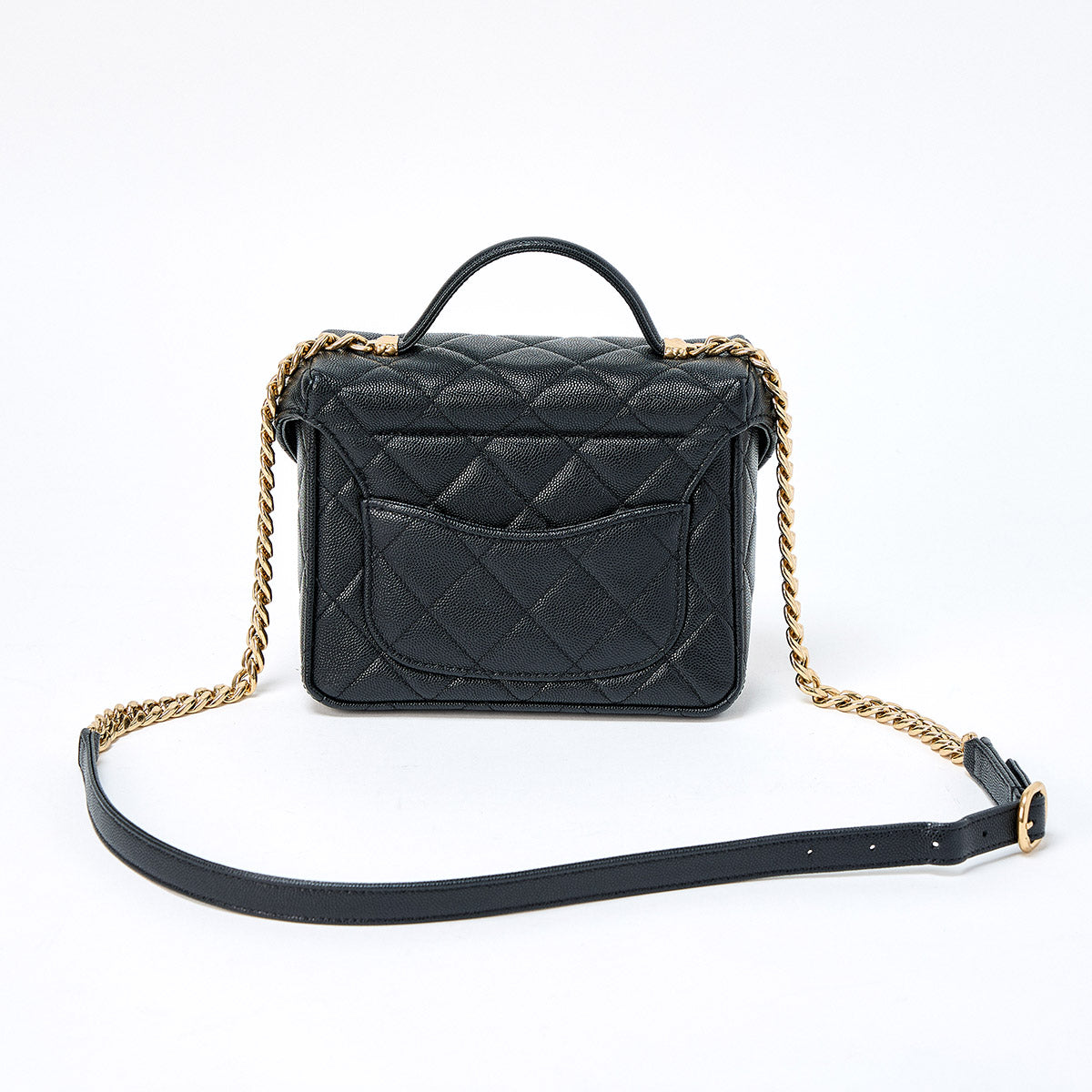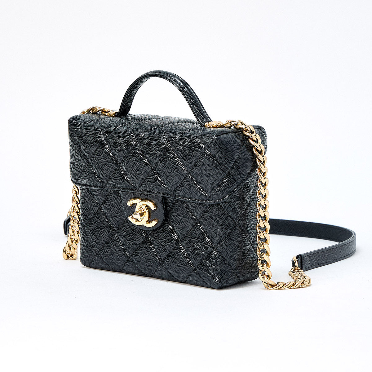 CHANEL Matelasse Top Handle 2021 Shoulder Bag Black Gold Caviar Skin Auth