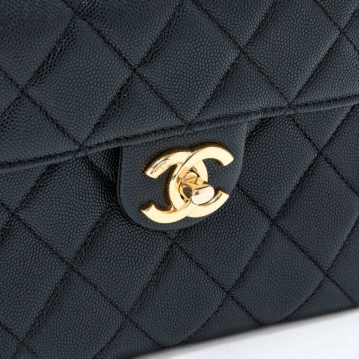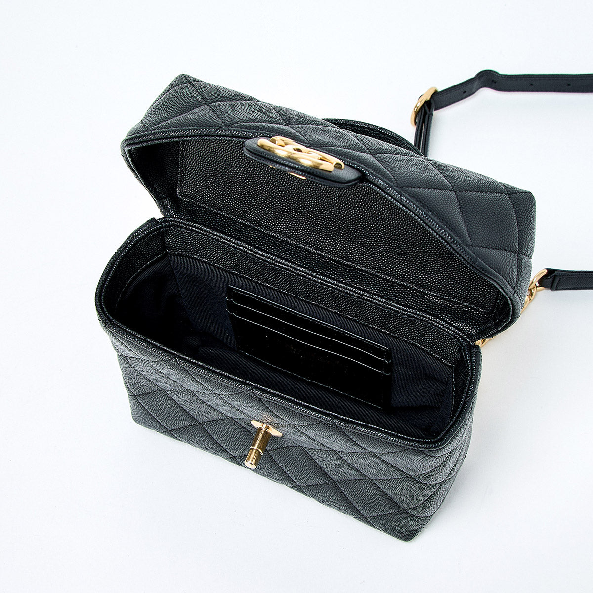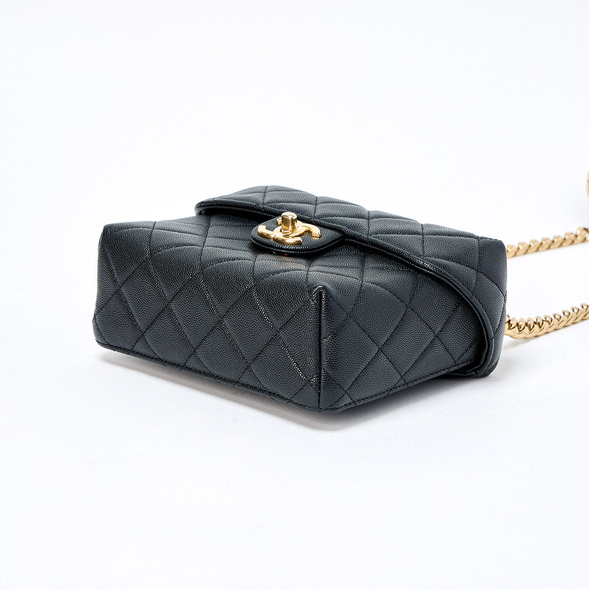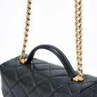 CHANEL Matelasse Top Handle 2021 Shoulder Bag Black Gold Caviar Skin Auth