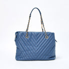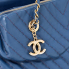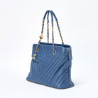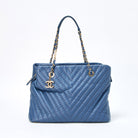 CHANEL V Stitch 2012 Tote Bag Blue Champagne Gold Leather Auth