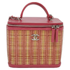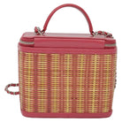 CHANEL Wicker Vanity Chain Shoulder Bag Rattan 2way Pink Silver CC Auth 114200AM