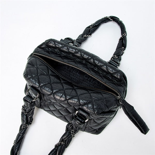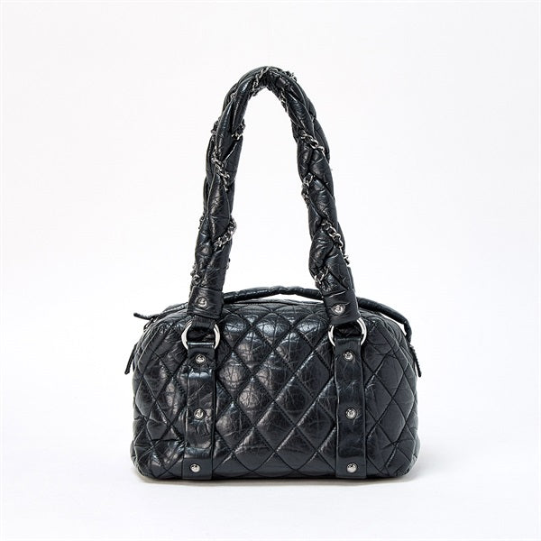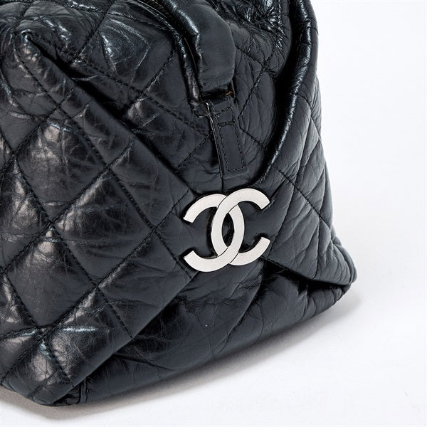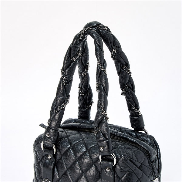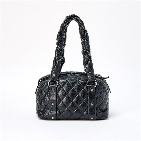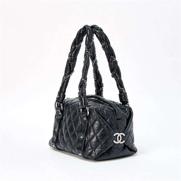 CHANEL Wild Stitch 2005 Shoulder Bag Black Silver Soft Caviar Auth