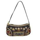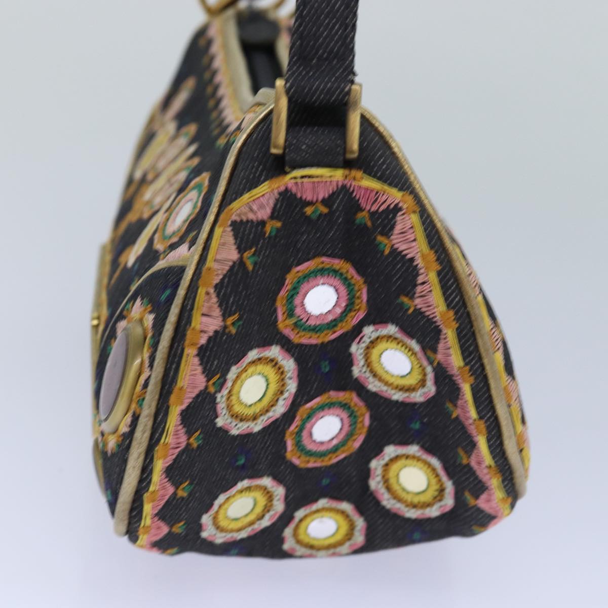 Christian Dior Hand Bag Canvas Blue Gold Auth 85438AM