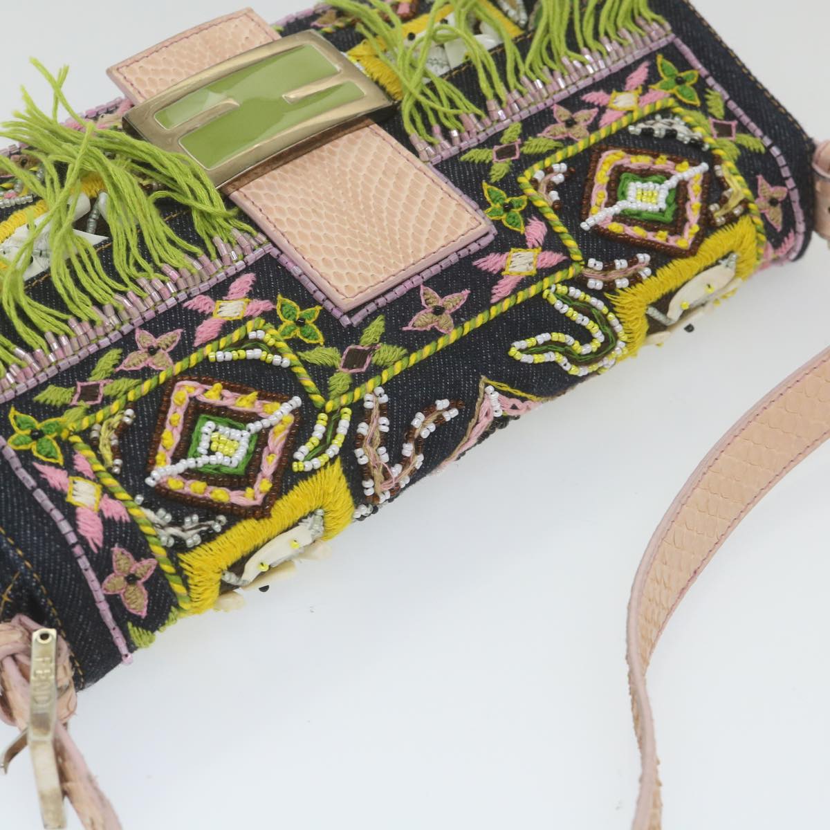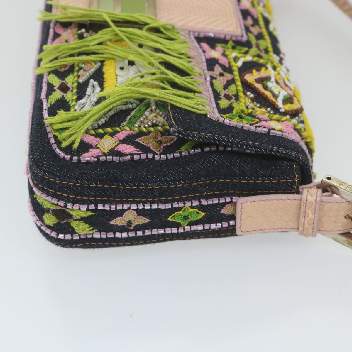 FENDI Mamma Baguette Shoulder Bag Denim Navy Auth 59814AM