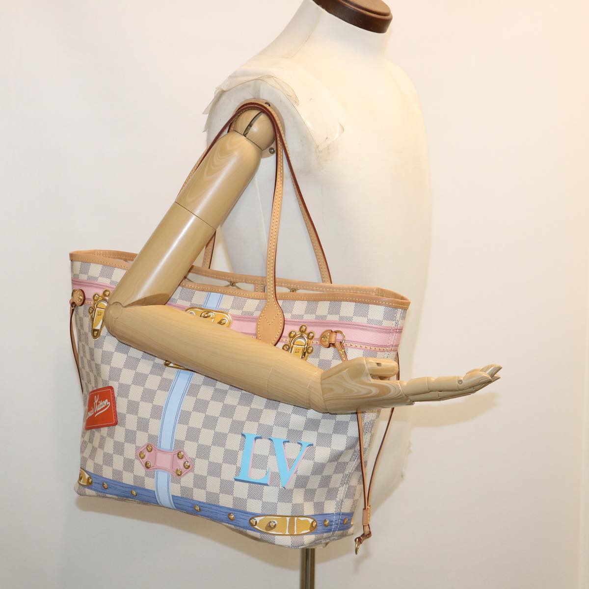 LOUIS VUITTON Damier Azur Summer Trunk Neverfull MM Hand Bag N41065 Auth 67494SV
