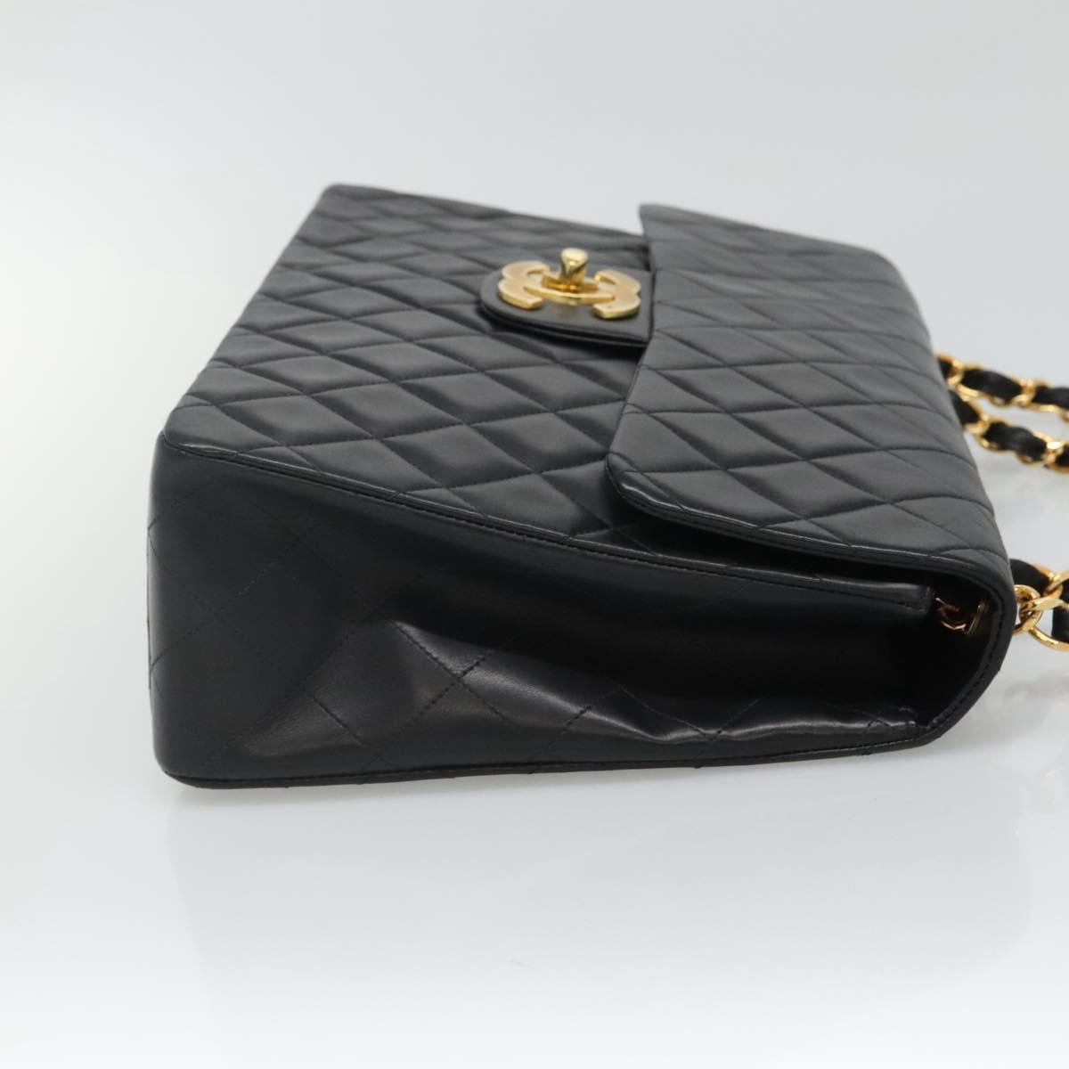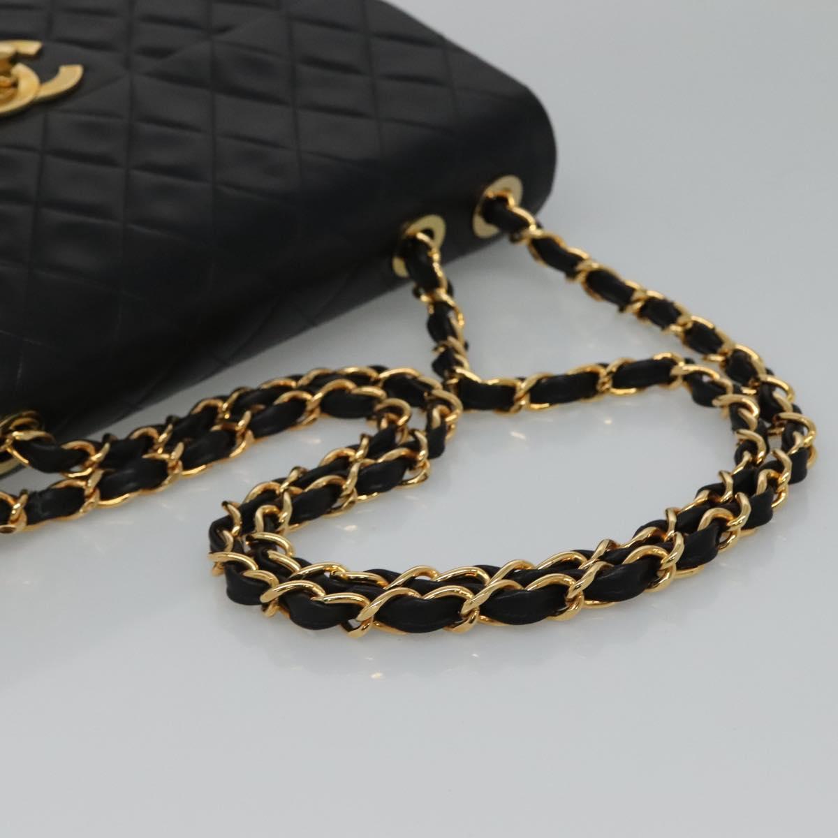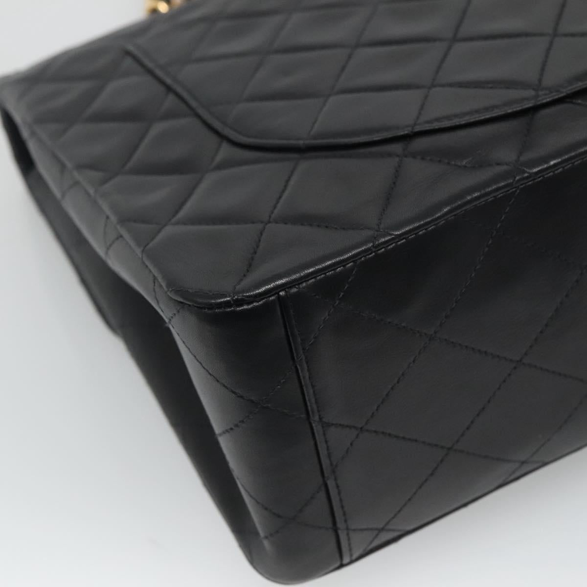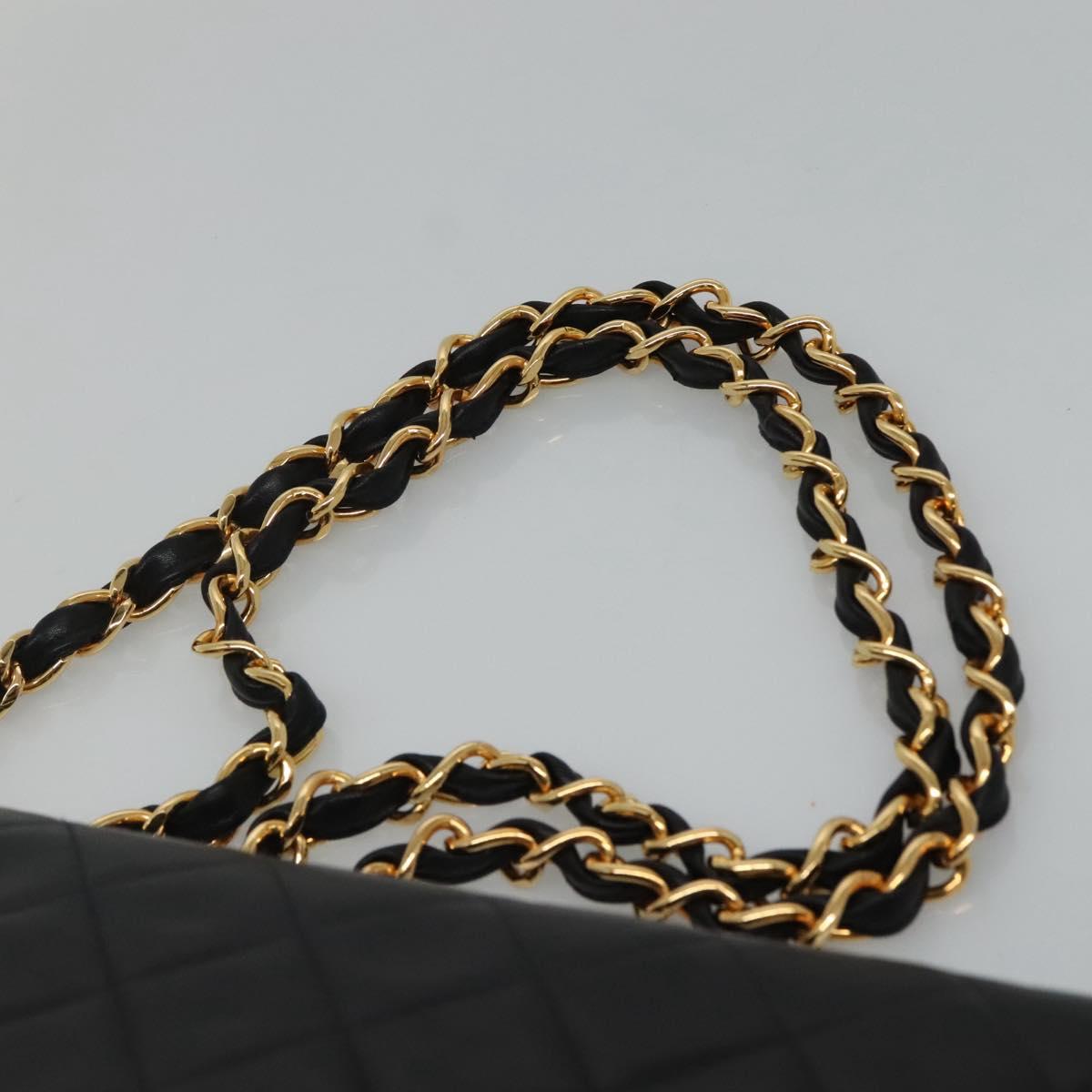 CHANEL Big Matelasse Chain Shoulder Bag Lamb Skin Black Gold CC Auth PP353AV