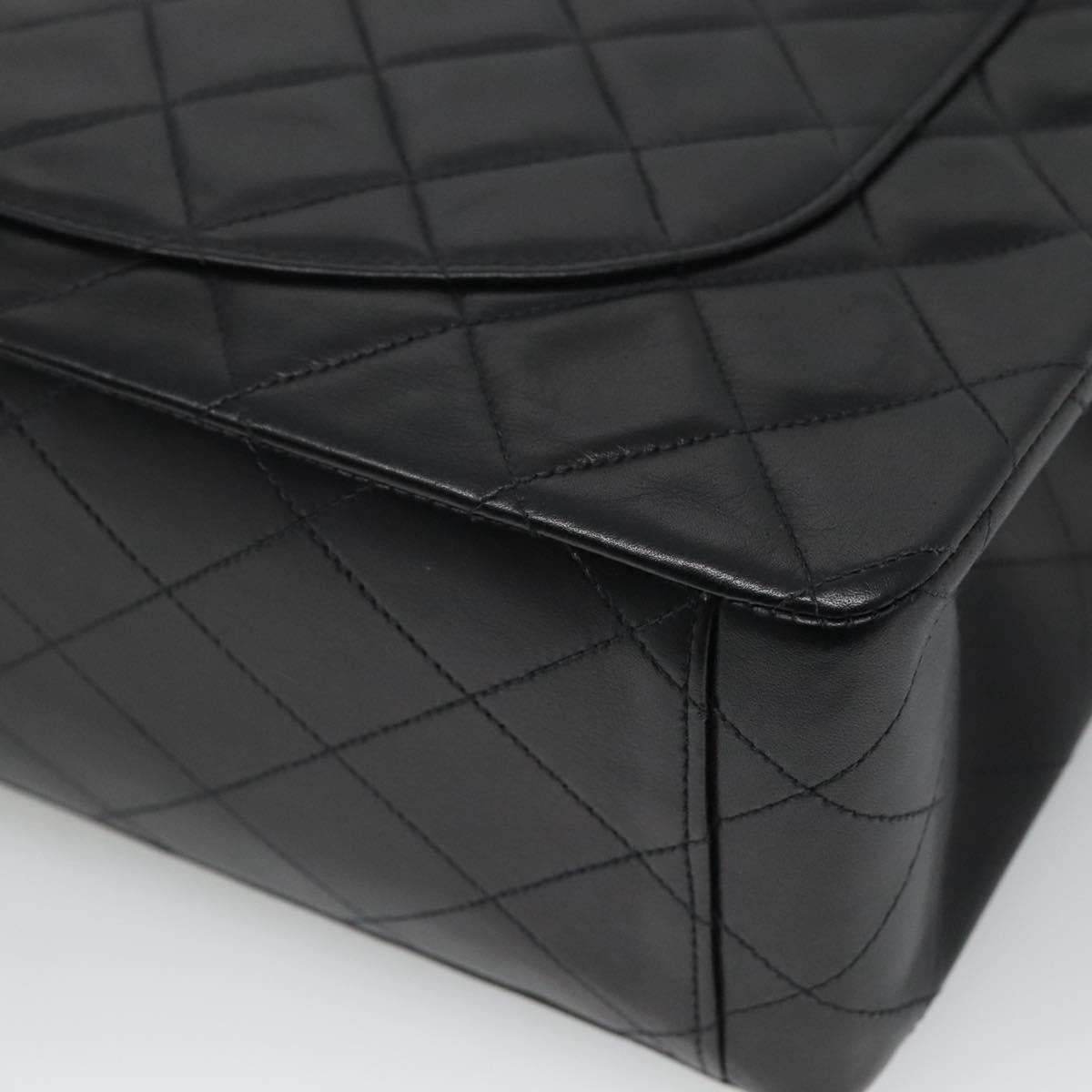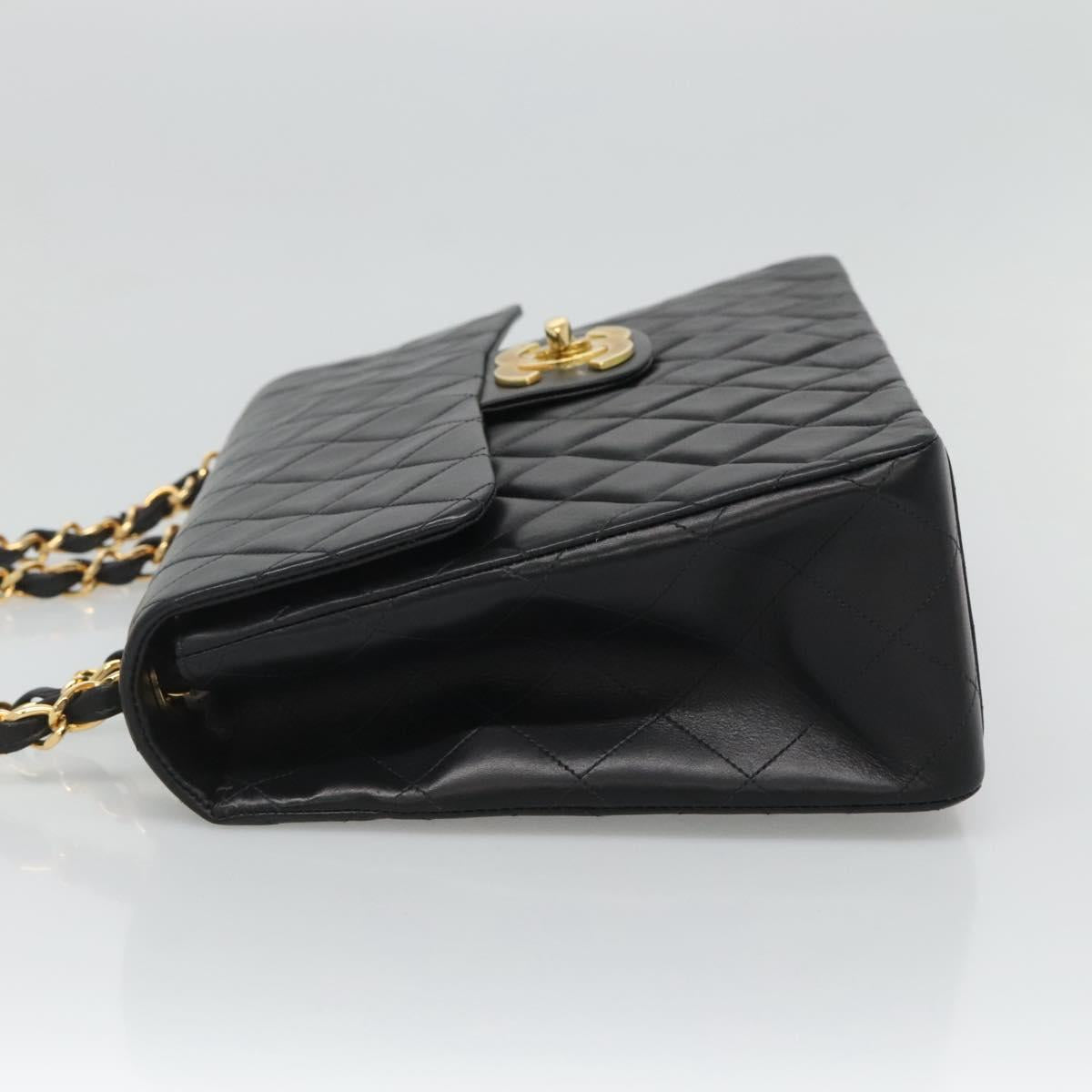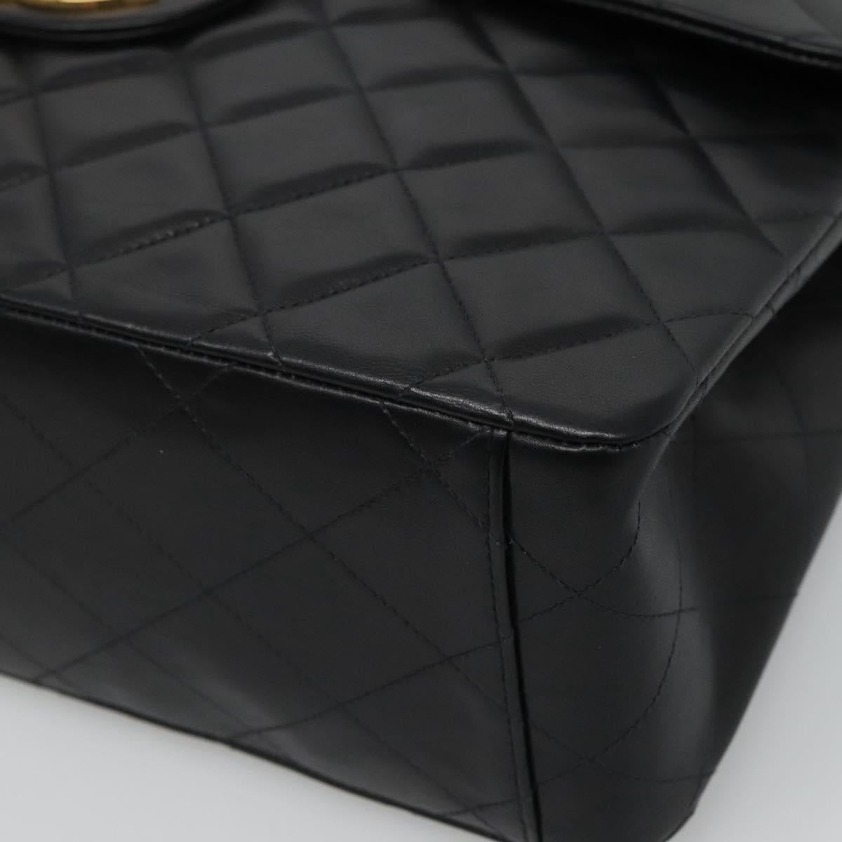 CHANEL Big Matelasse Chain Shoulder Bag Lamb Skin Black Gold CC Auth PP353AV