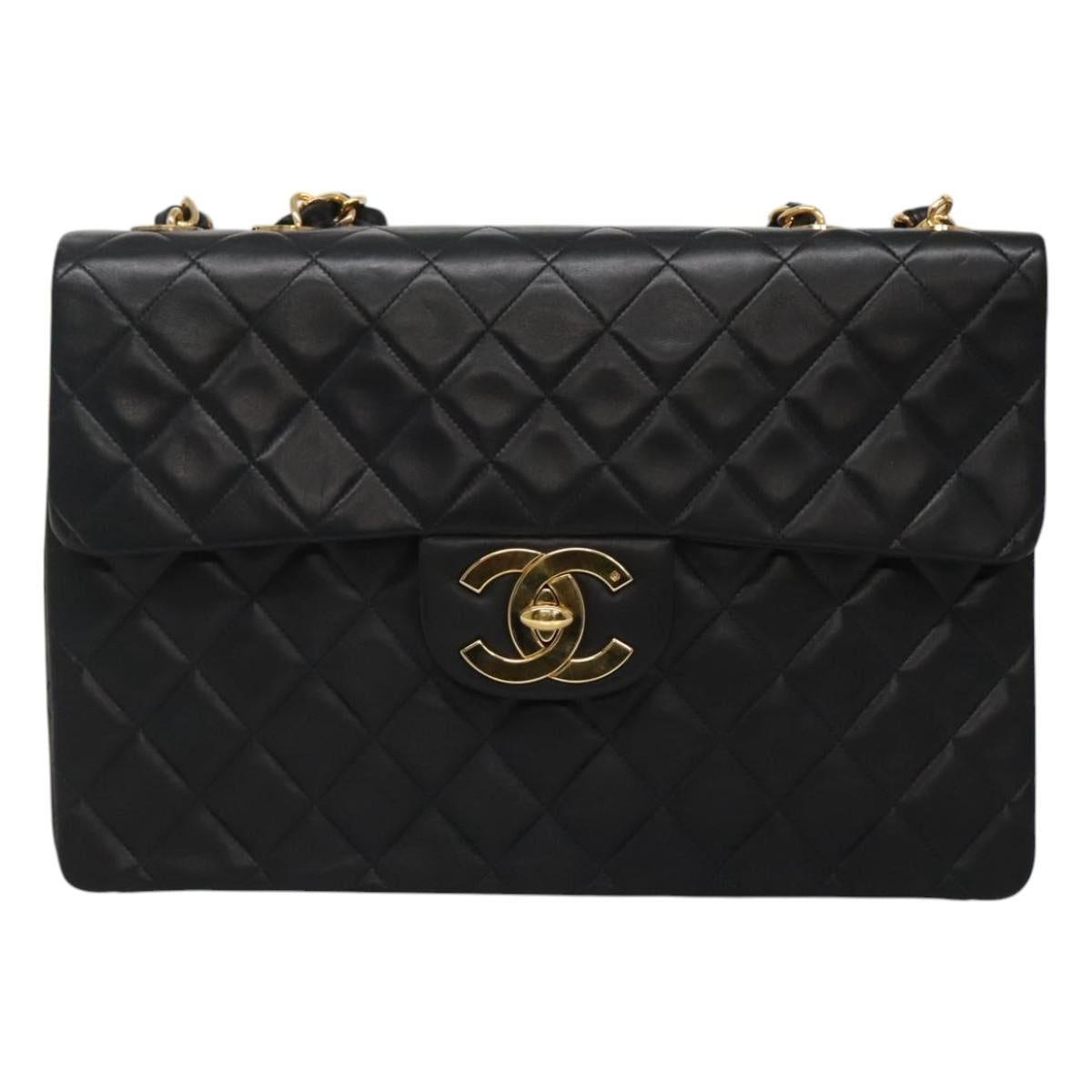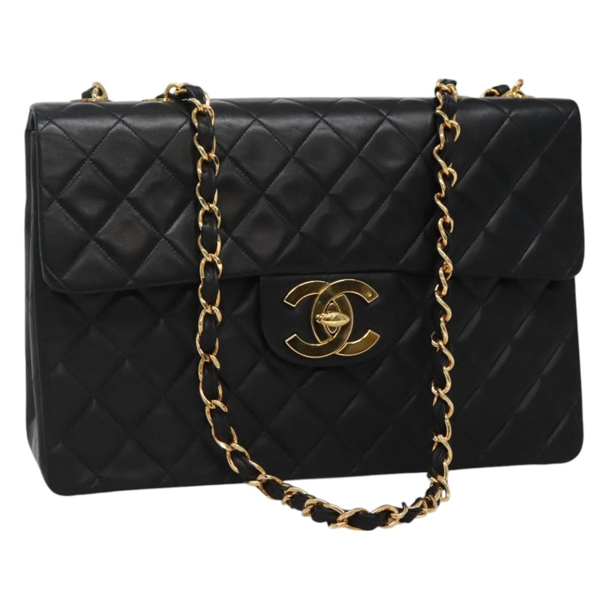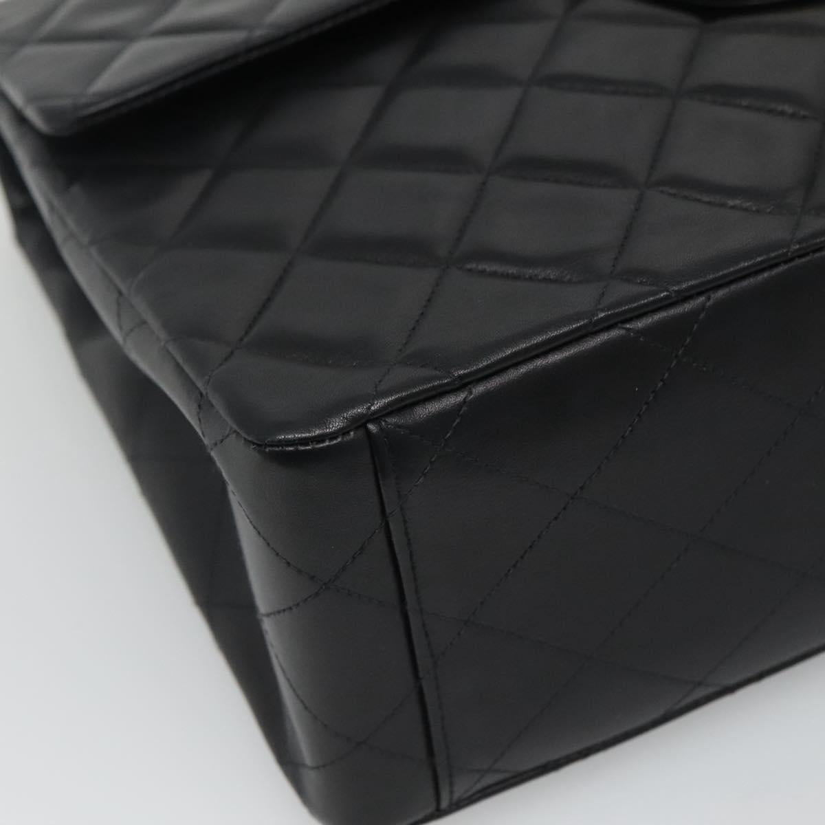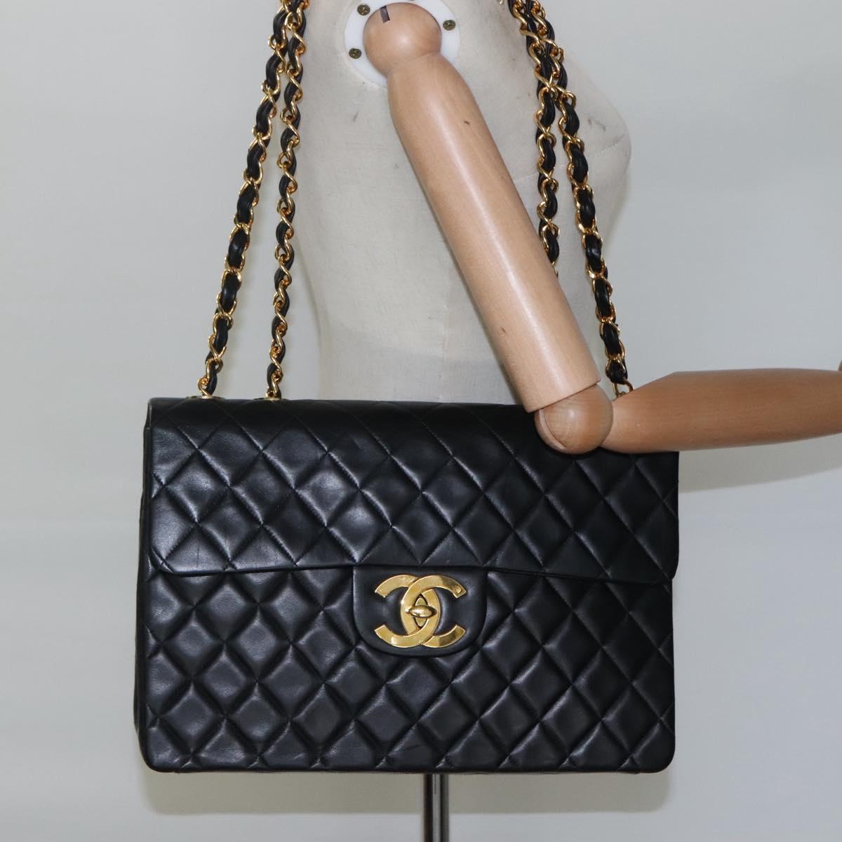 CHANEL Big Matelasse Chain Shoulder Bag Lamb Skin Black Gold CC Auth PP353AV